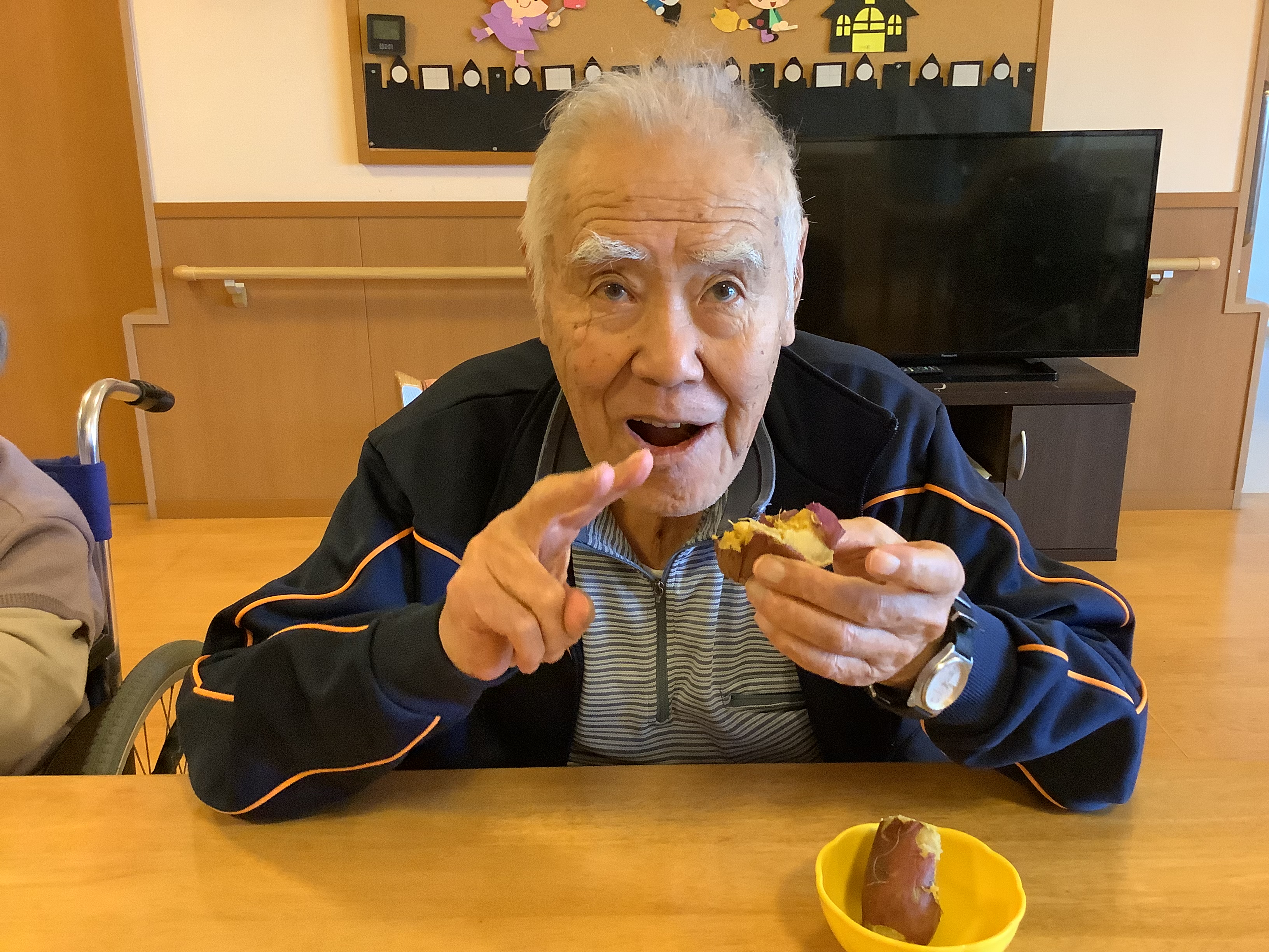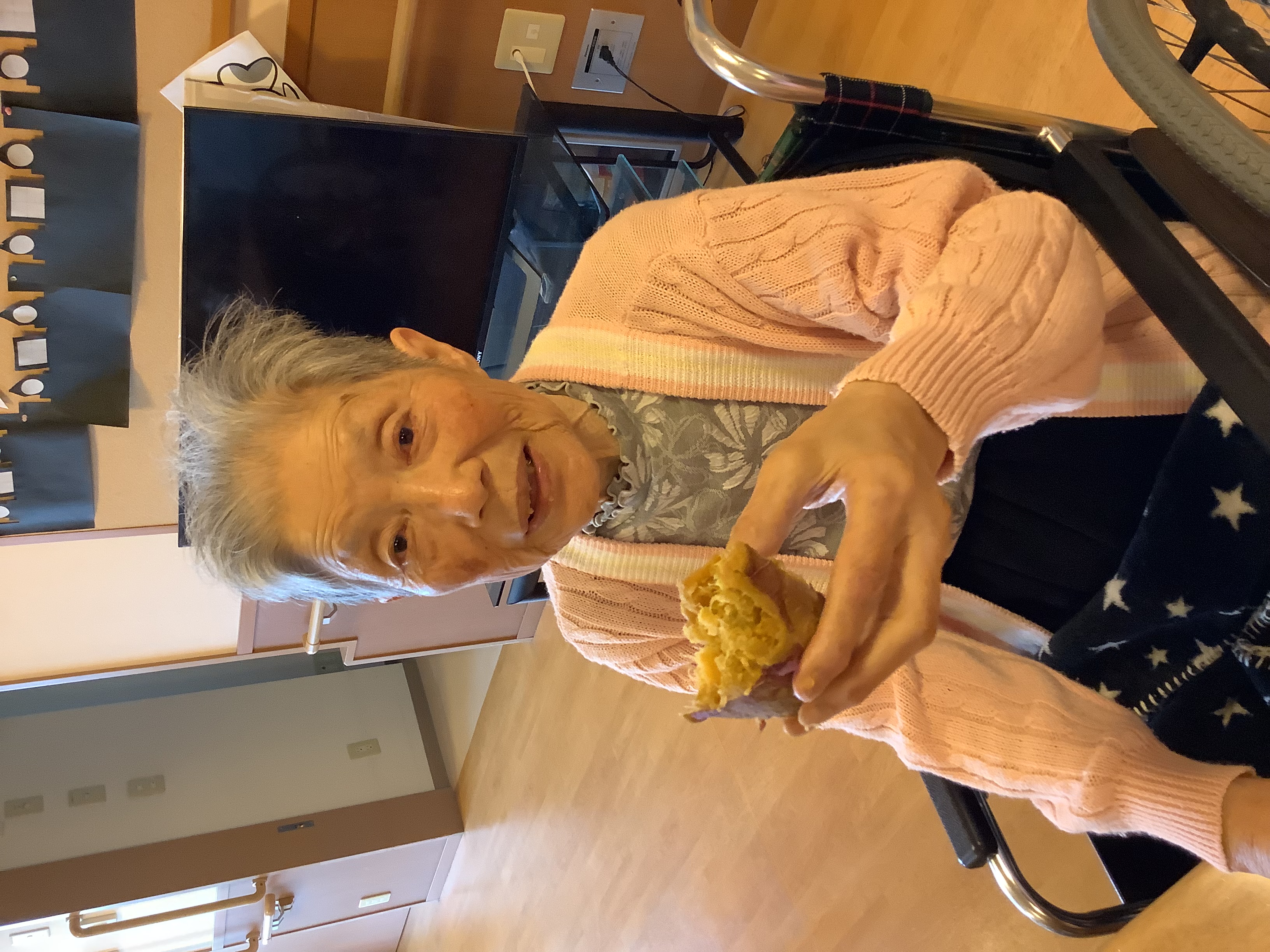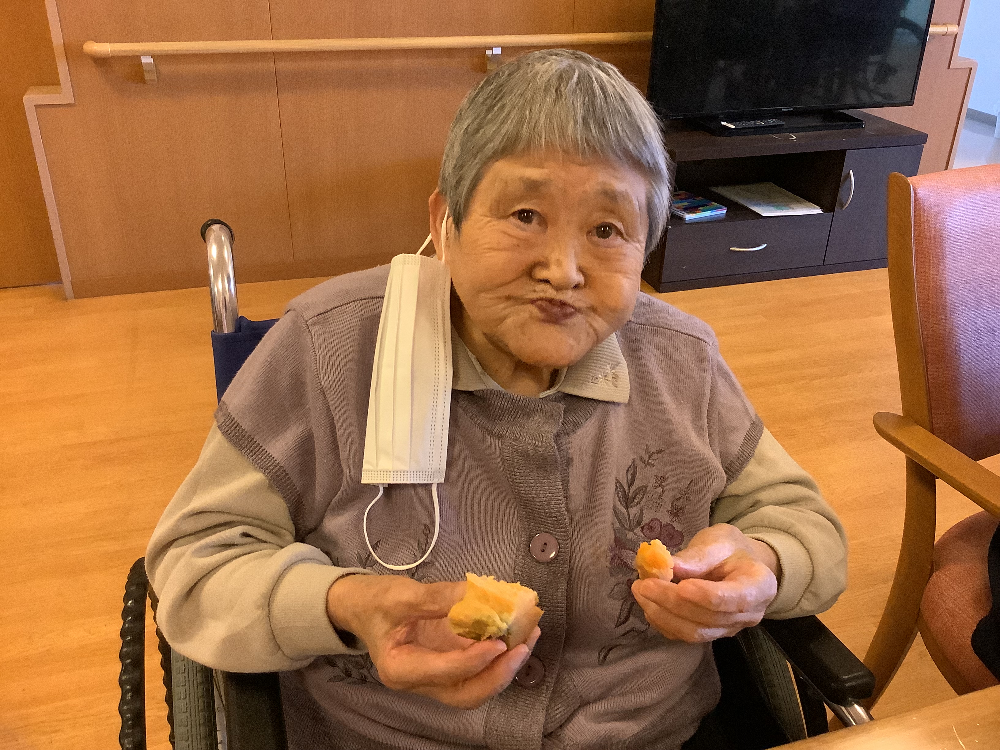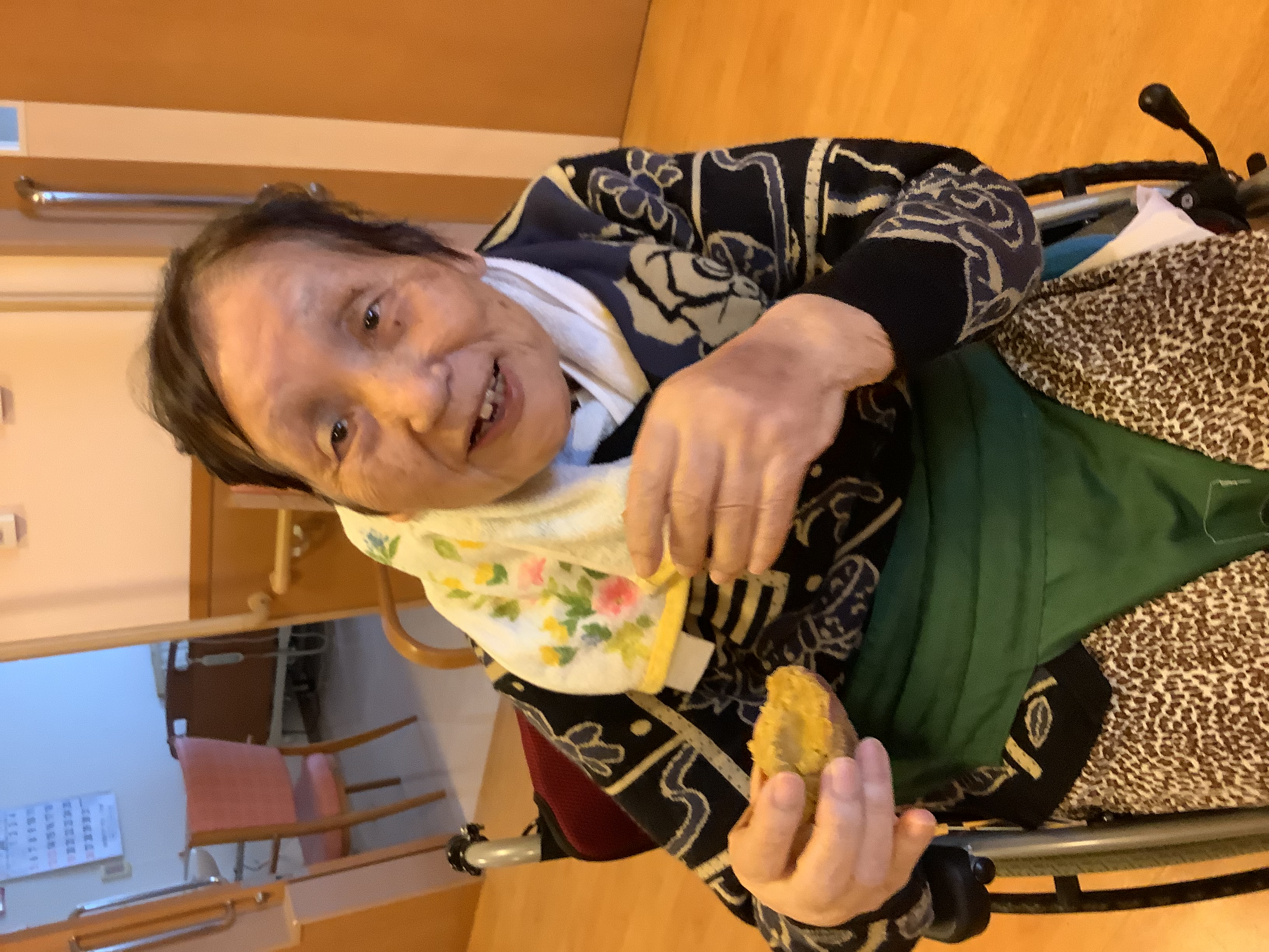 今日はおやつレクをしました。旬のサツマイモをふかし芋にしていただきました。皆さん、「甘い!うまい!」ととても満足そうに