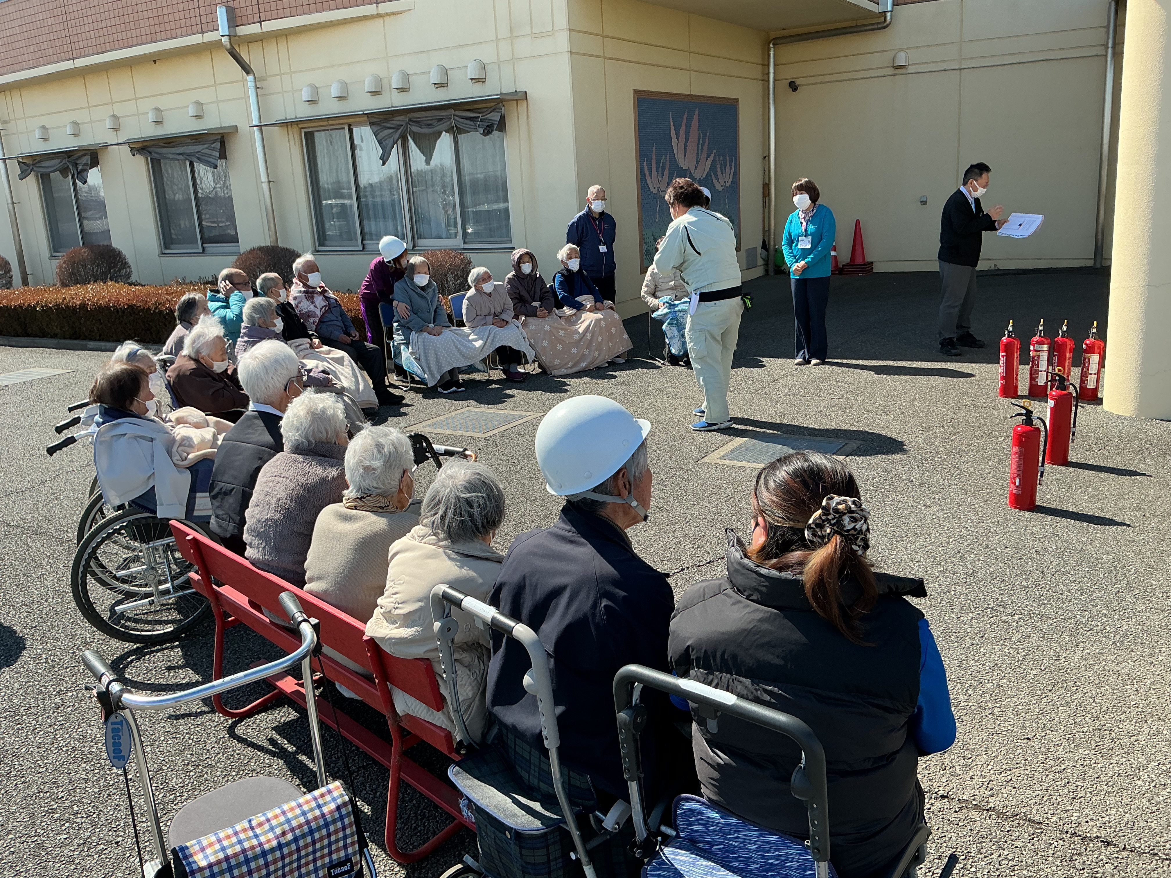 2026.3.11 デイサービスセンター花ぞのも避難訓練を行いました!災害に備えて訓練をすることで、もしもの時でも慌てずに行動ができるように。利用者様にも協力いただき実施することができました。