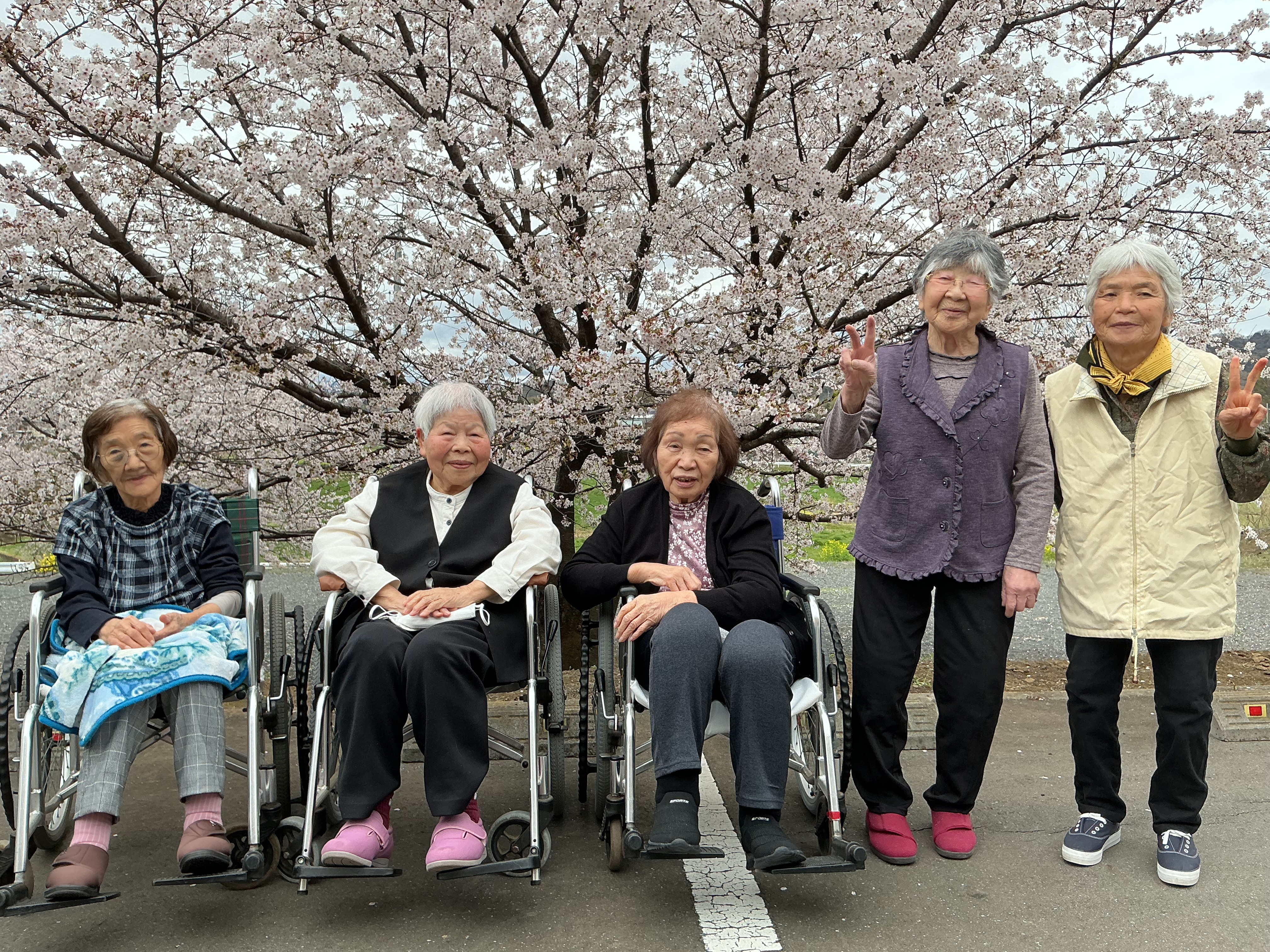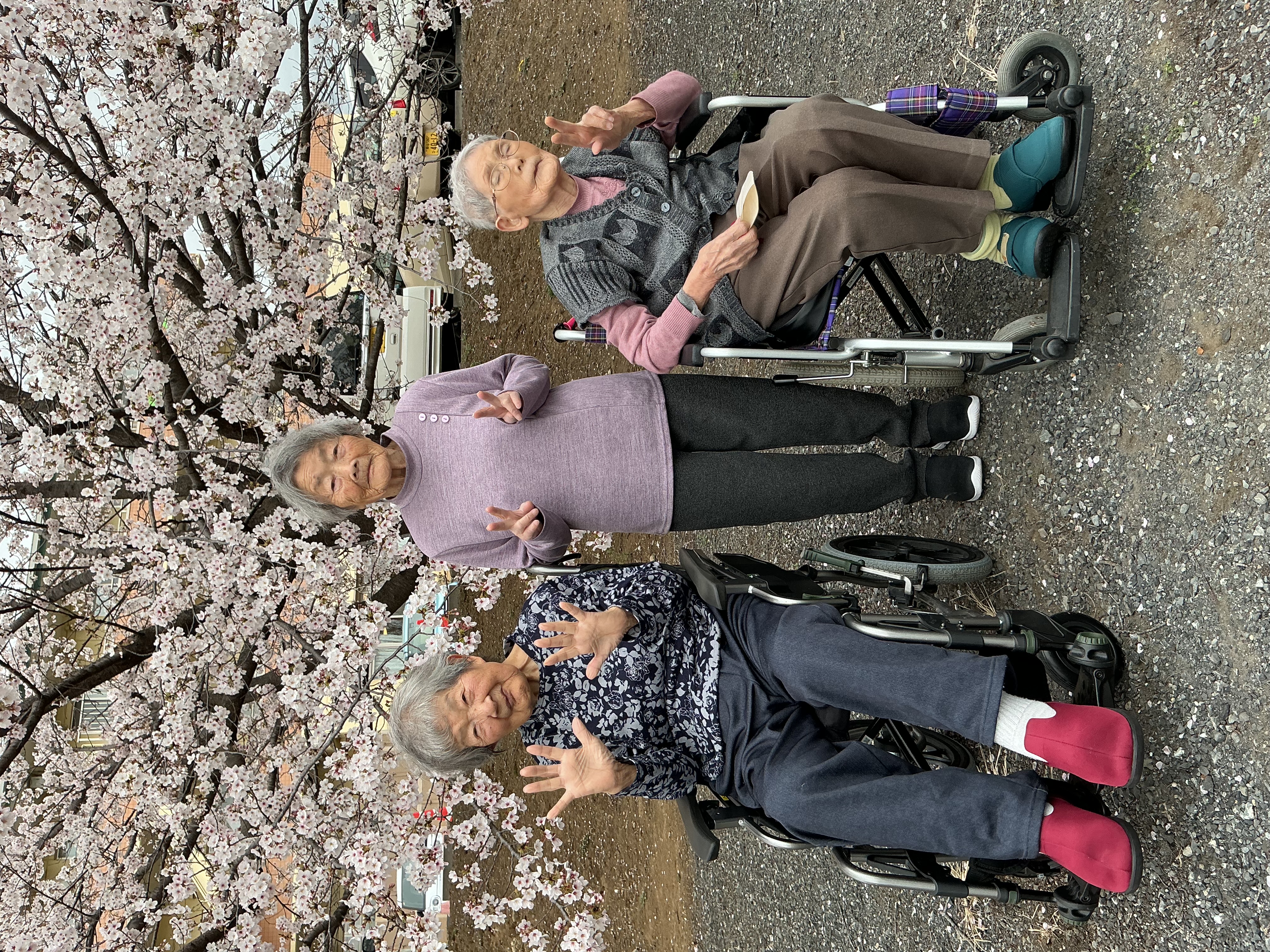 桜が満開になってきました(^^♪天気が不安定ですが、合間を見て施設駐車場にお花見に行きました(*^▽^*) 皆様良い笑顔ですね♪