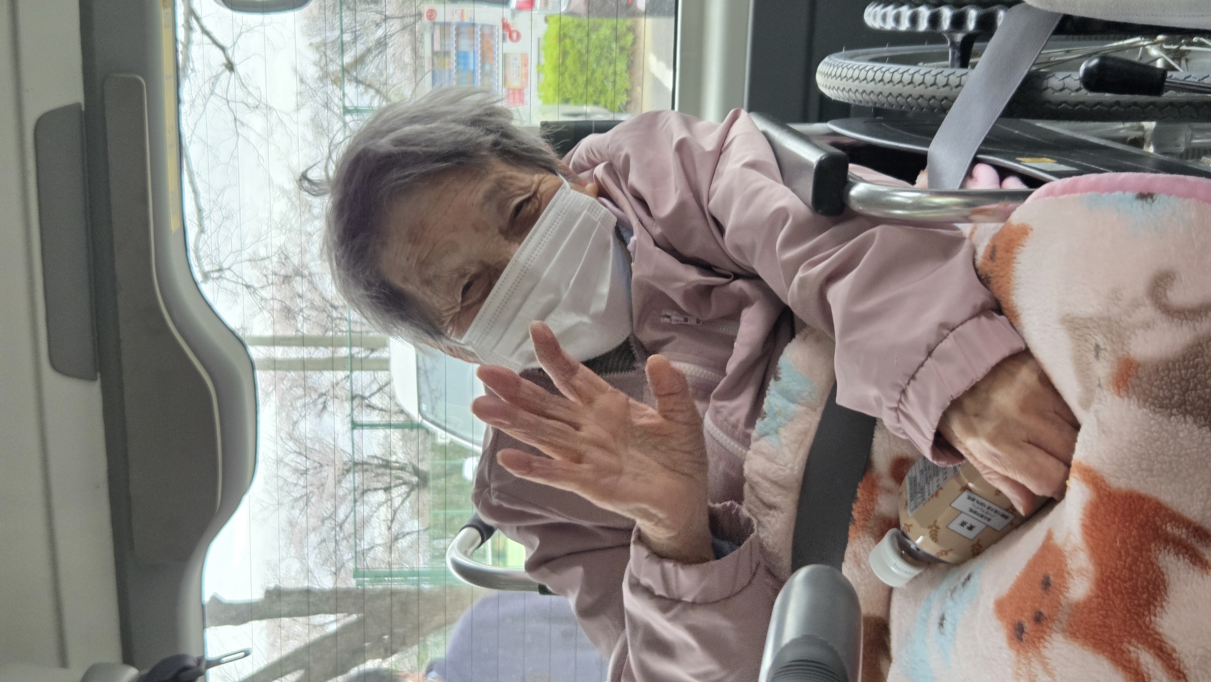 車中でも、外の景色を眺めて 「きれいだねえ」と笑顔(*^^*) 桜をみながら散策ができ、気分転換になったご様子でした*