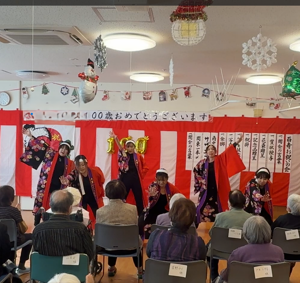 百歳のお祝いを盛大に行わせていただきました!(^^)! 職員の余興も大盛り上がりでした(^^♪