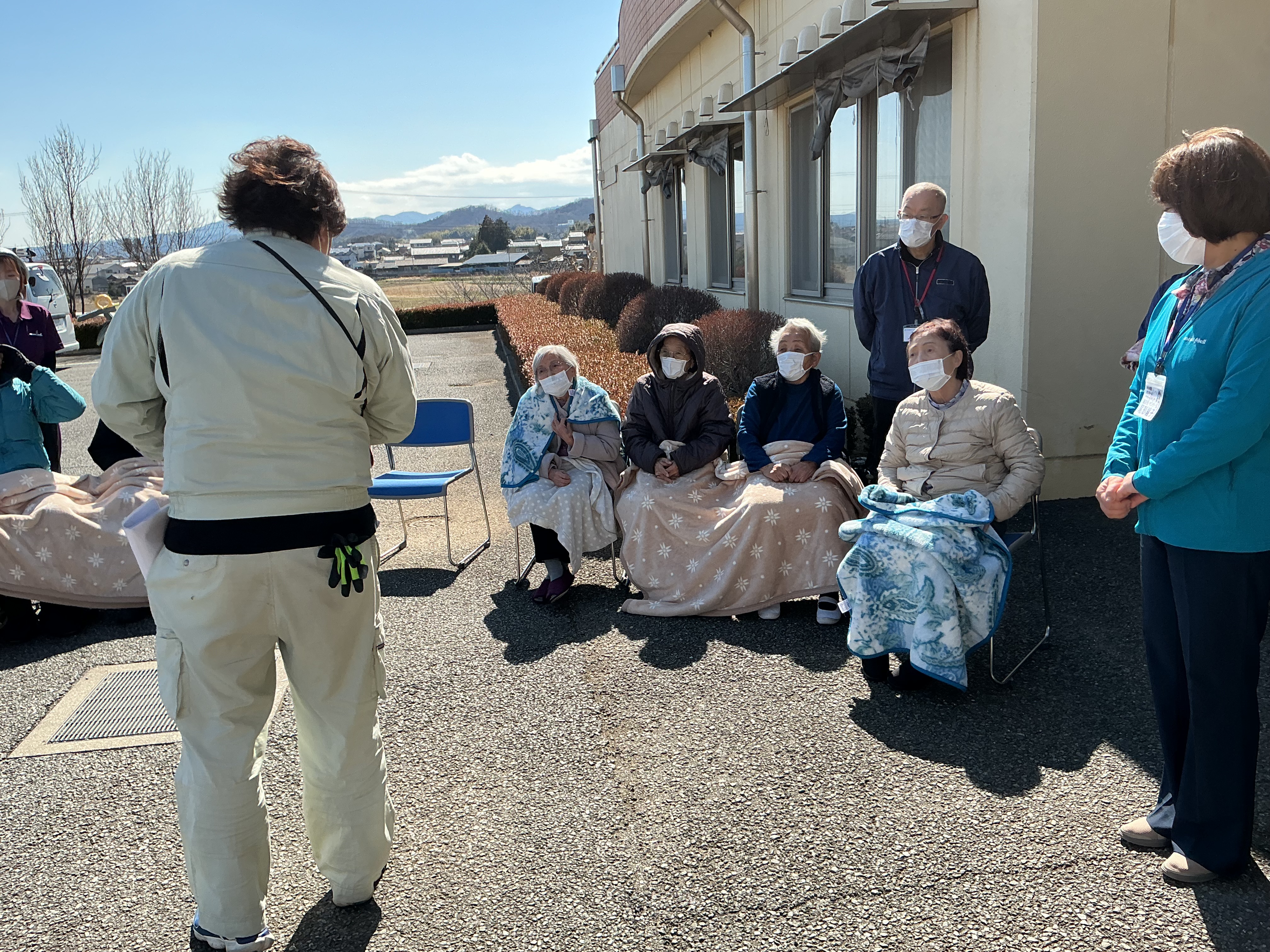 2026.3.11 デイサービスセンター花ぞのも避難訓練を行いました!災害に備えて訓練をすることで、もしもの時でも慌てずに行動ができるように。利用者様にも協力いただき実施することができました。