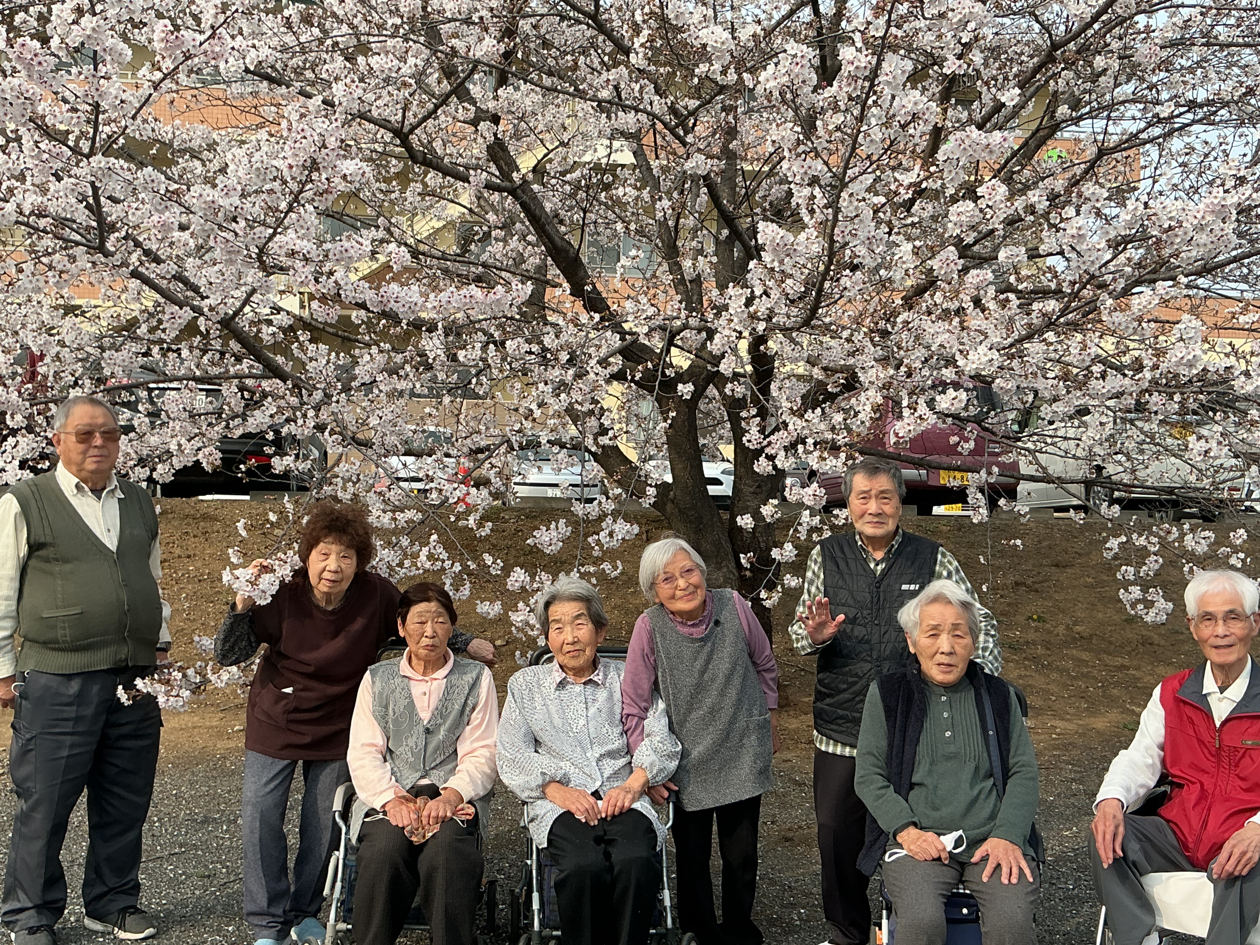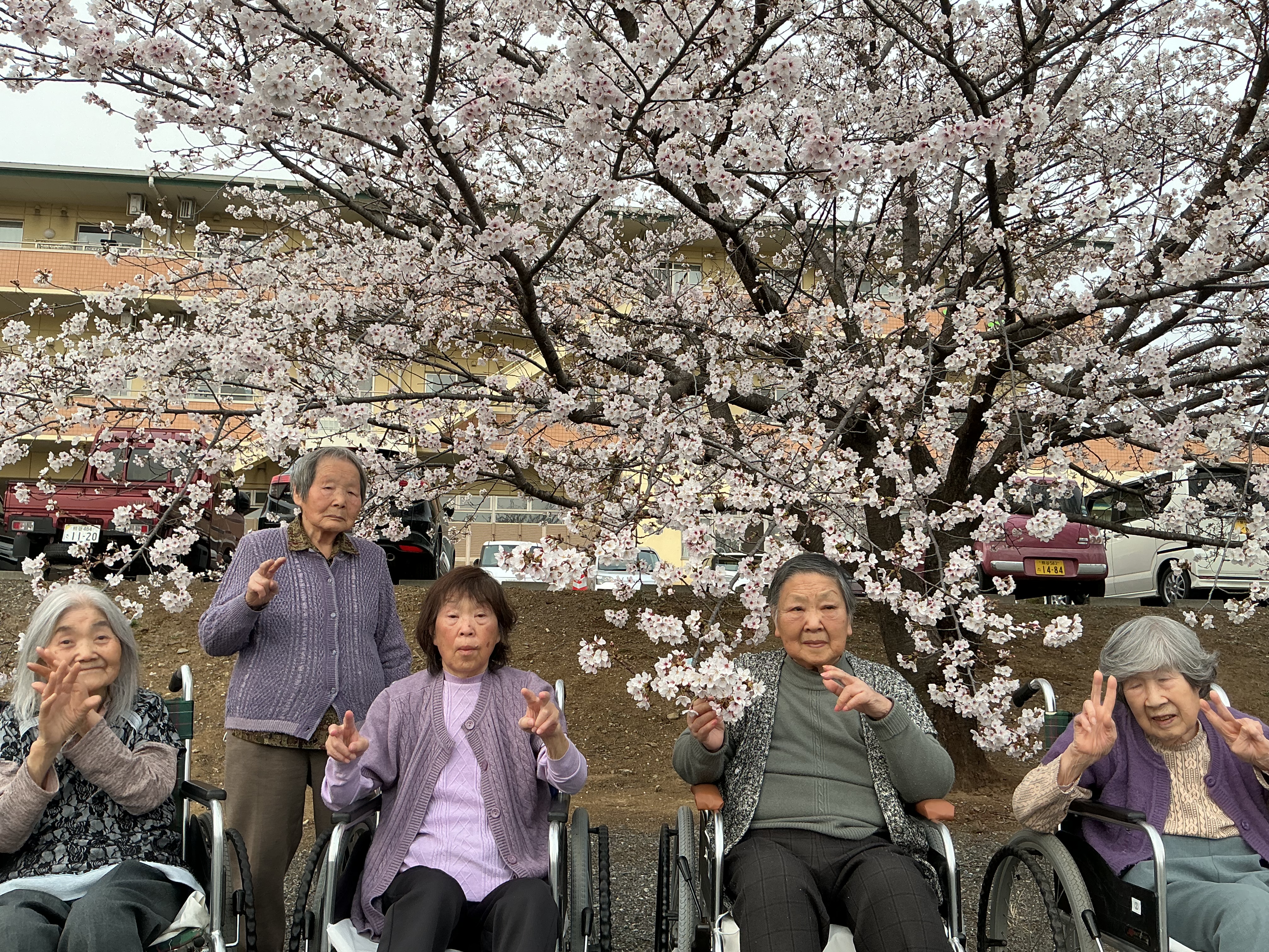 桜が満開になってきました(^^♪天気が不安定ですが、合間を見て施設駐車場にお花見に行きました(*^▽^*) 皆様良い笑顔ですね♪