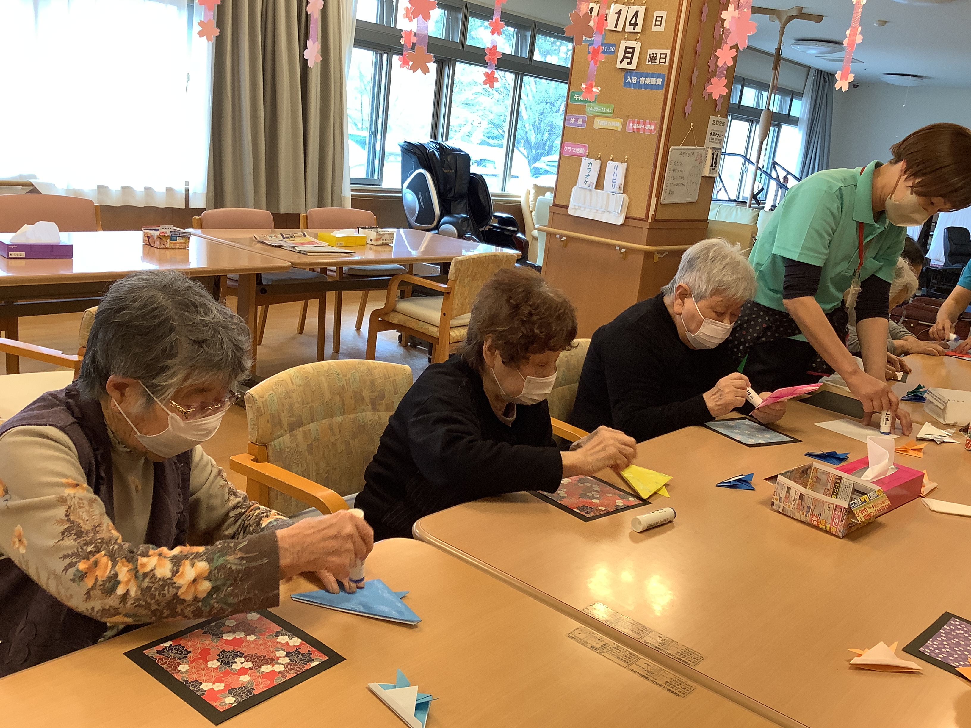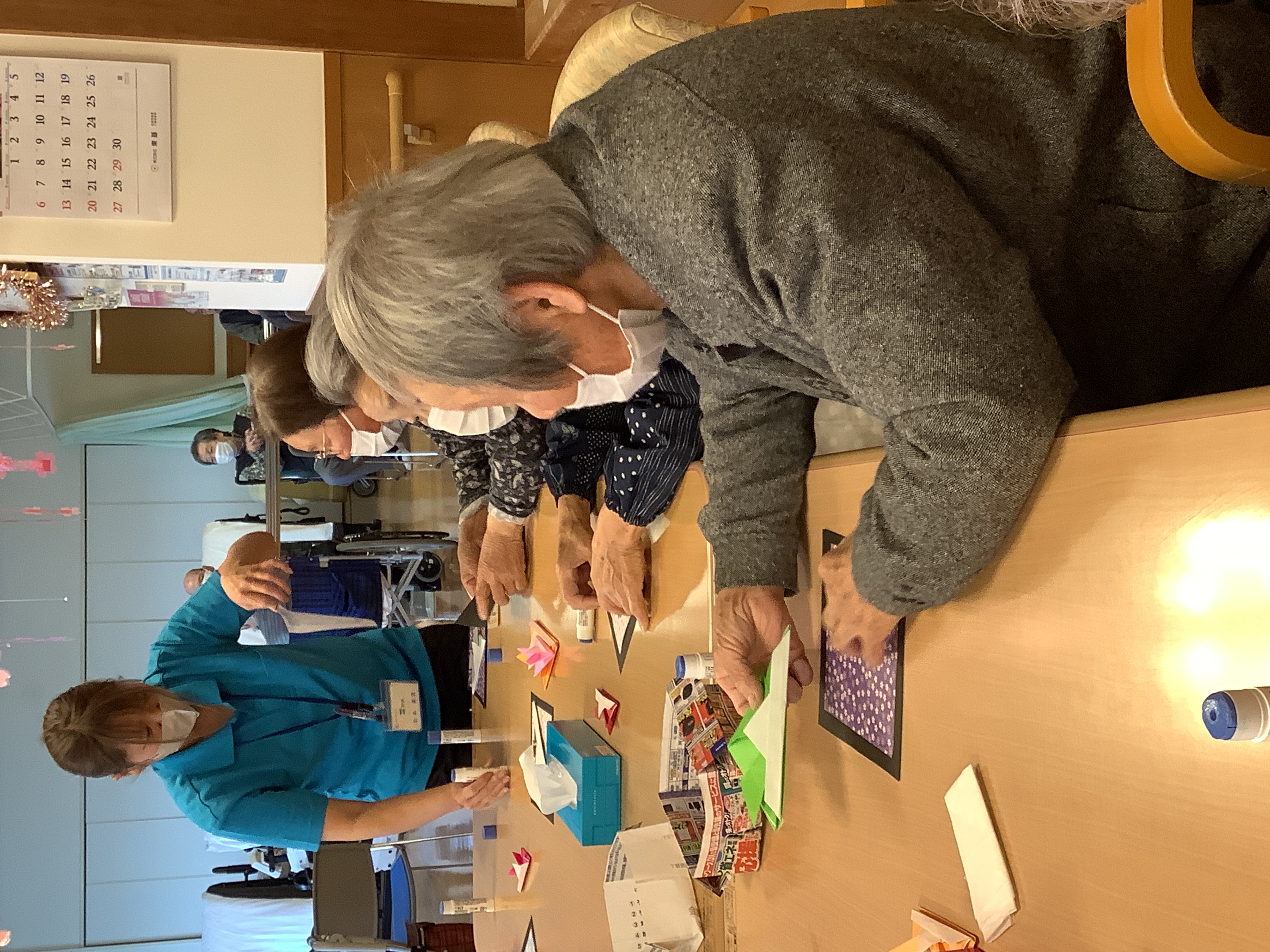 皆様真剣に折り紙を折っています(*^-^*) さぁ~何ができるのでしょうか♪