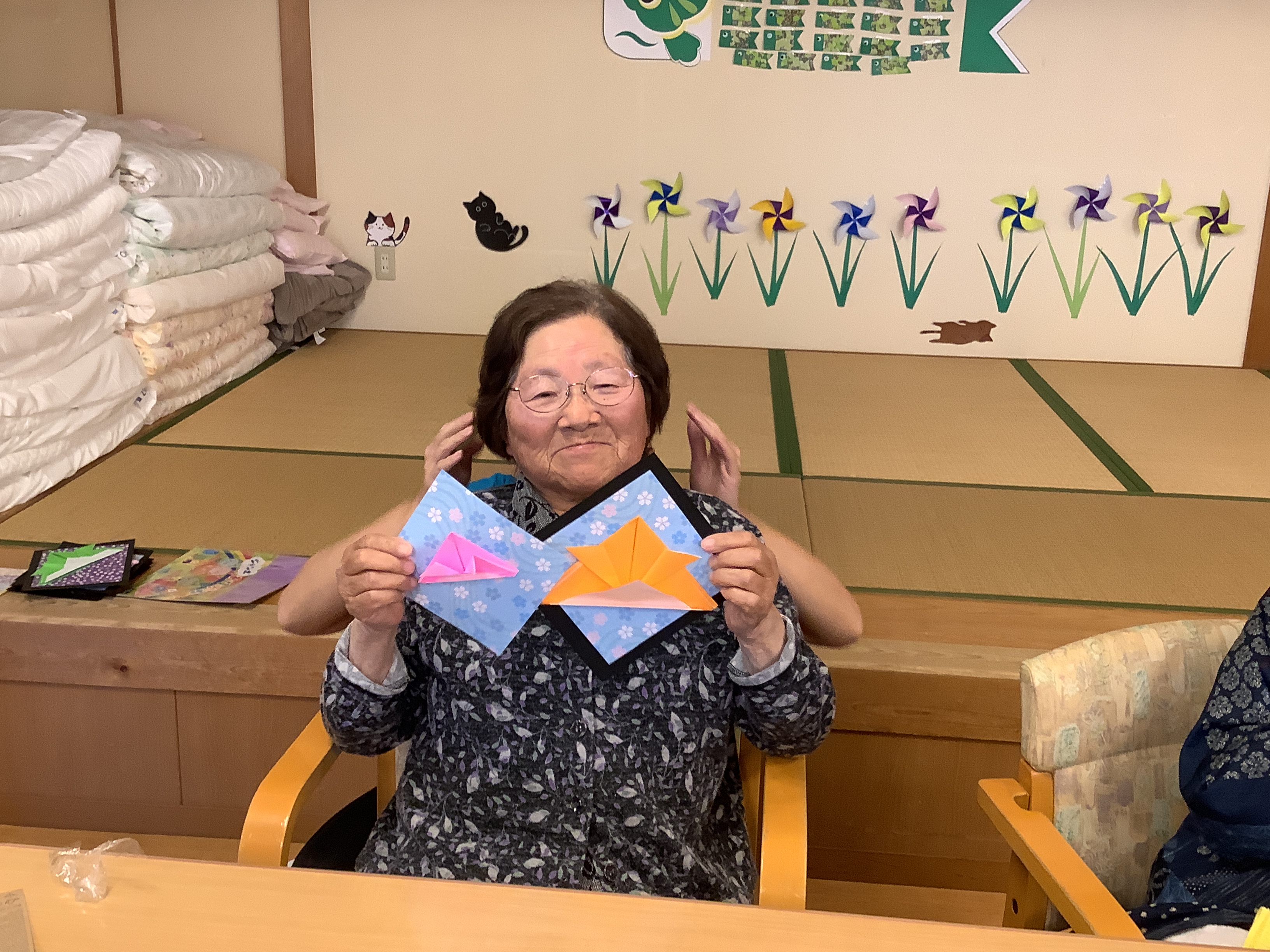 5月に向け兜の飾りが出来上がりました♪ デイルーム内に飾ってあります(*^-^*)