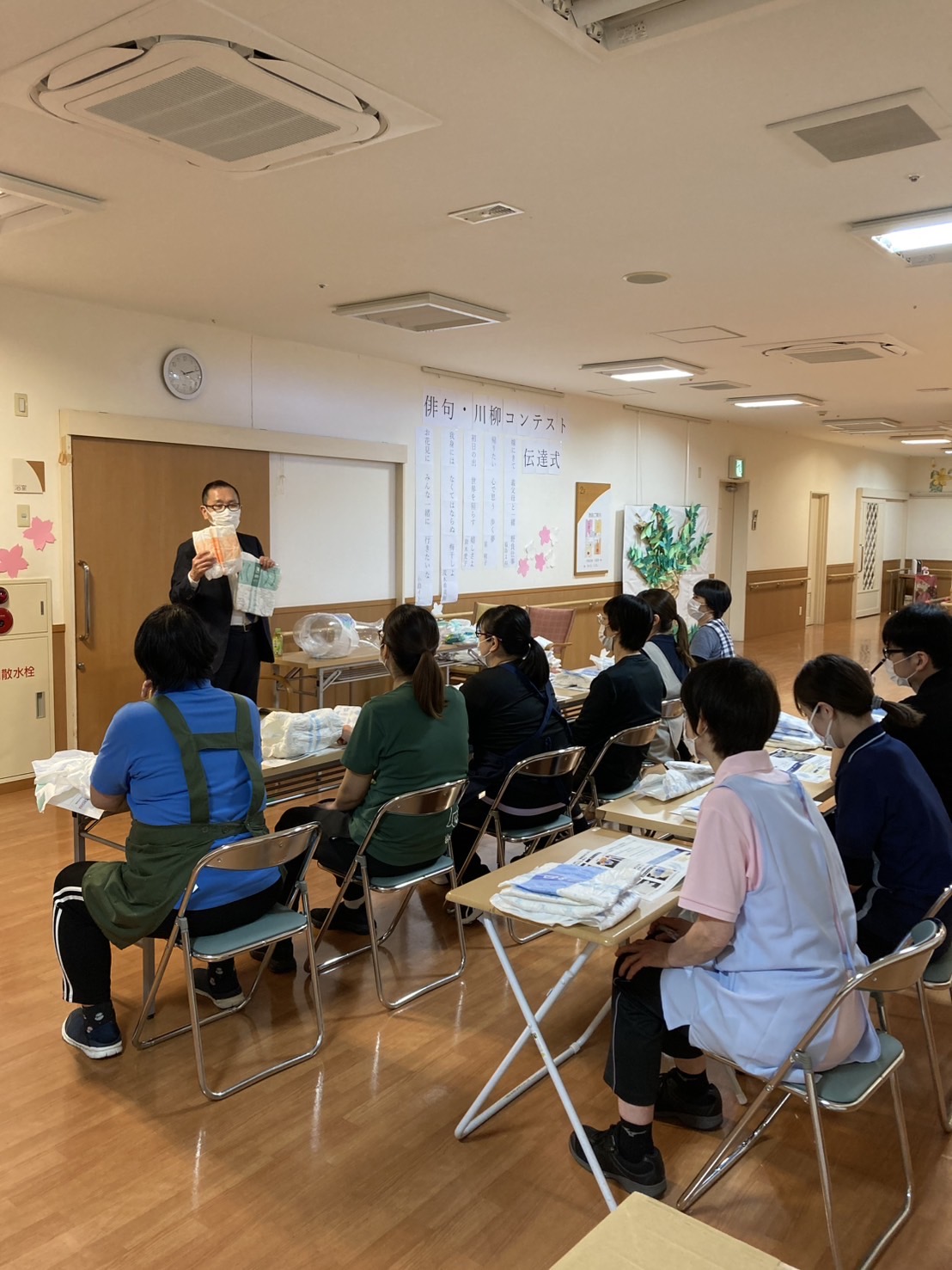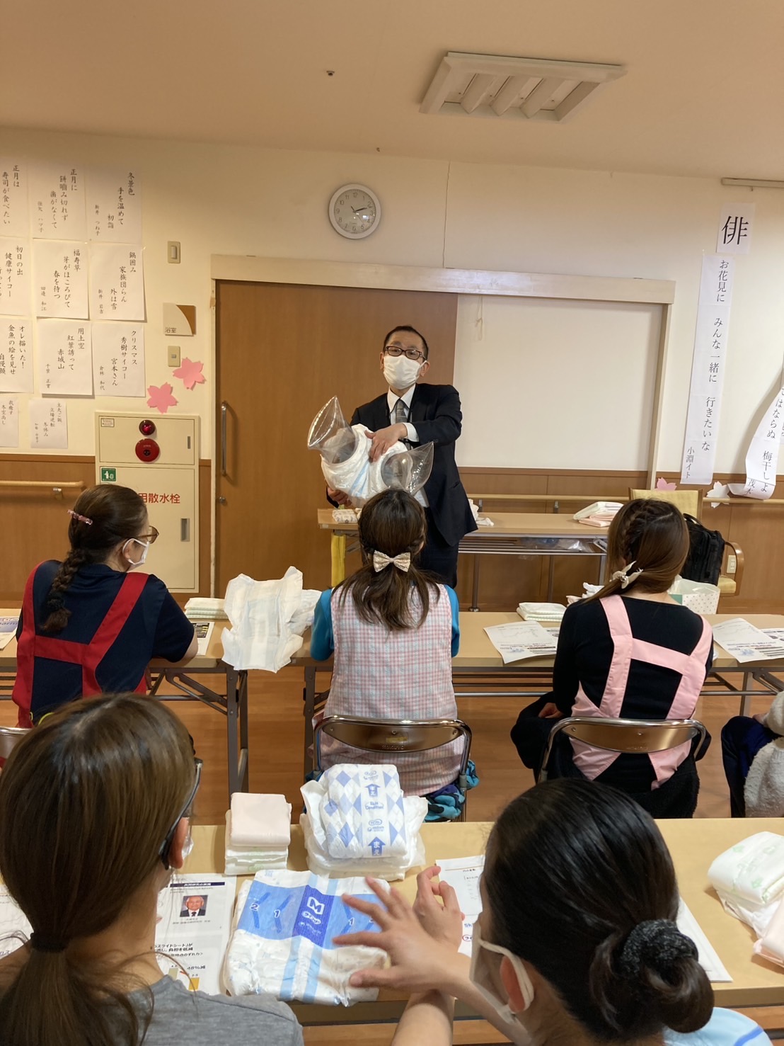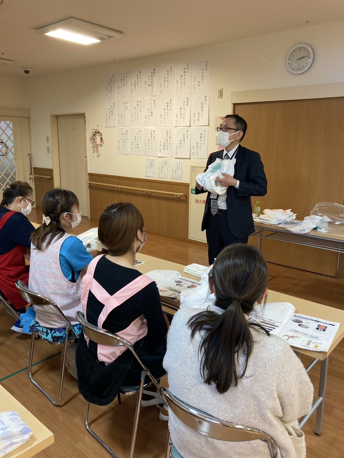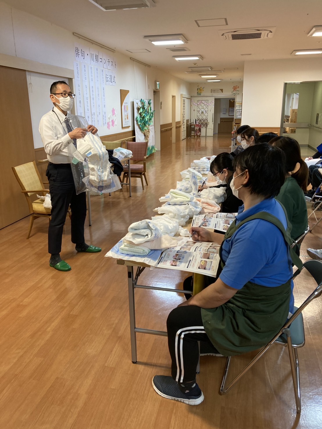 今回もユニ・チャーム社から来所して頂きオムツの研修をして頂きました。