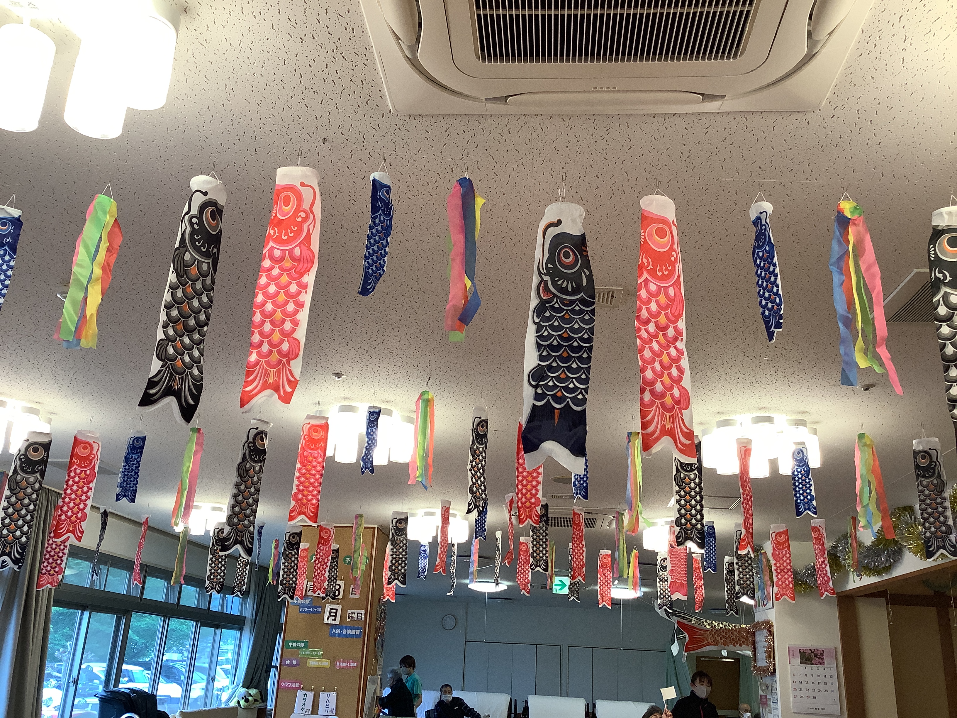 もうすぐこどもの日ですね(^^♪ デイルーム内にも沢山の鯉のぼりが♪♪