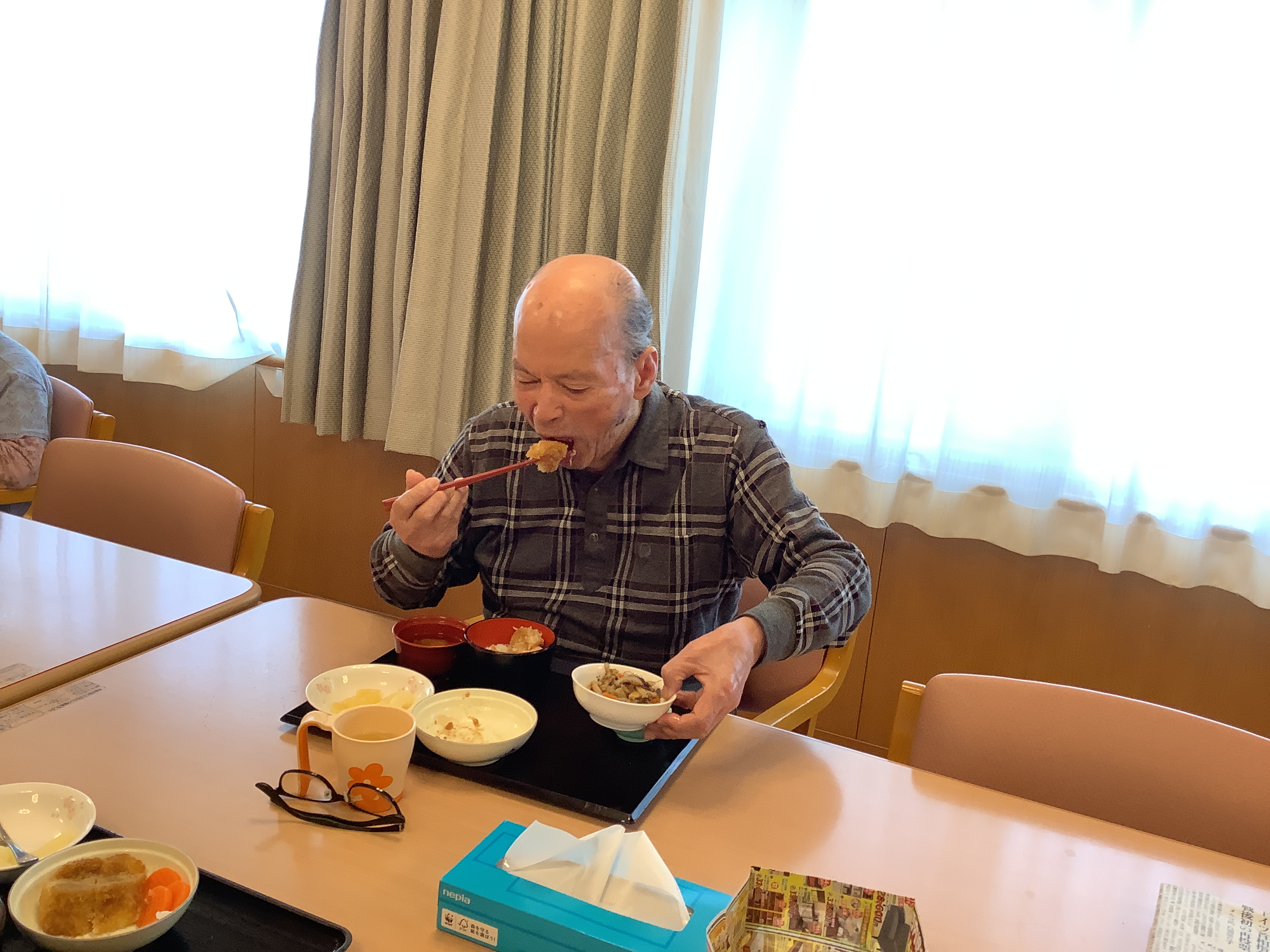 花ぞのでは月に2回セレクトメニューの日があり、メインメニュー2品から利用者様が選んで召し上がっていただけます♪ 選択肢があると皆様ワクワクされますね(^^♪ 「どっちにしようかな」と楽しそうに選ばれています♪