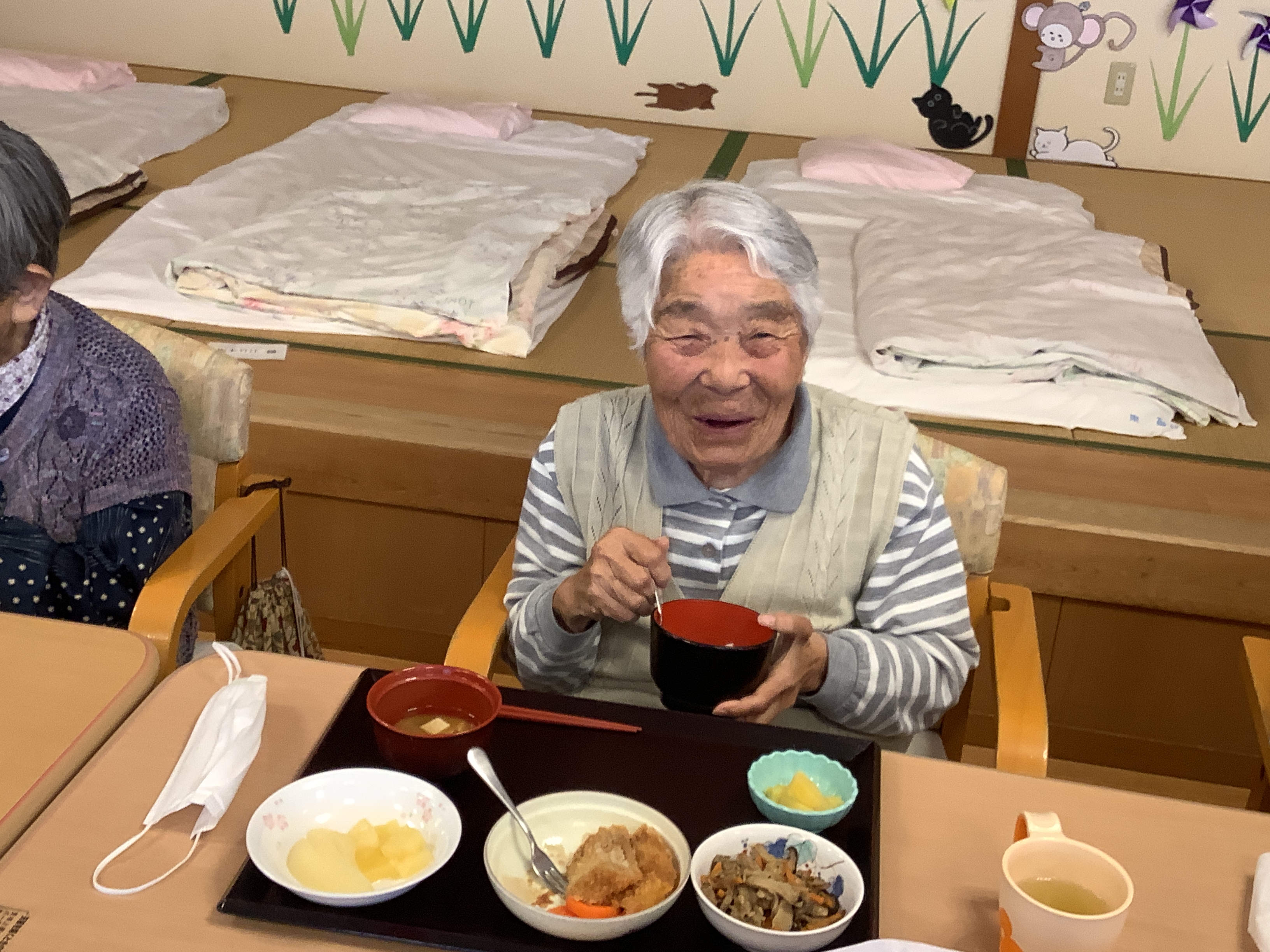 お昼ご飯の様子です(^^)/ 温かい昼食は皆様に大変好評です(^_-)-☆