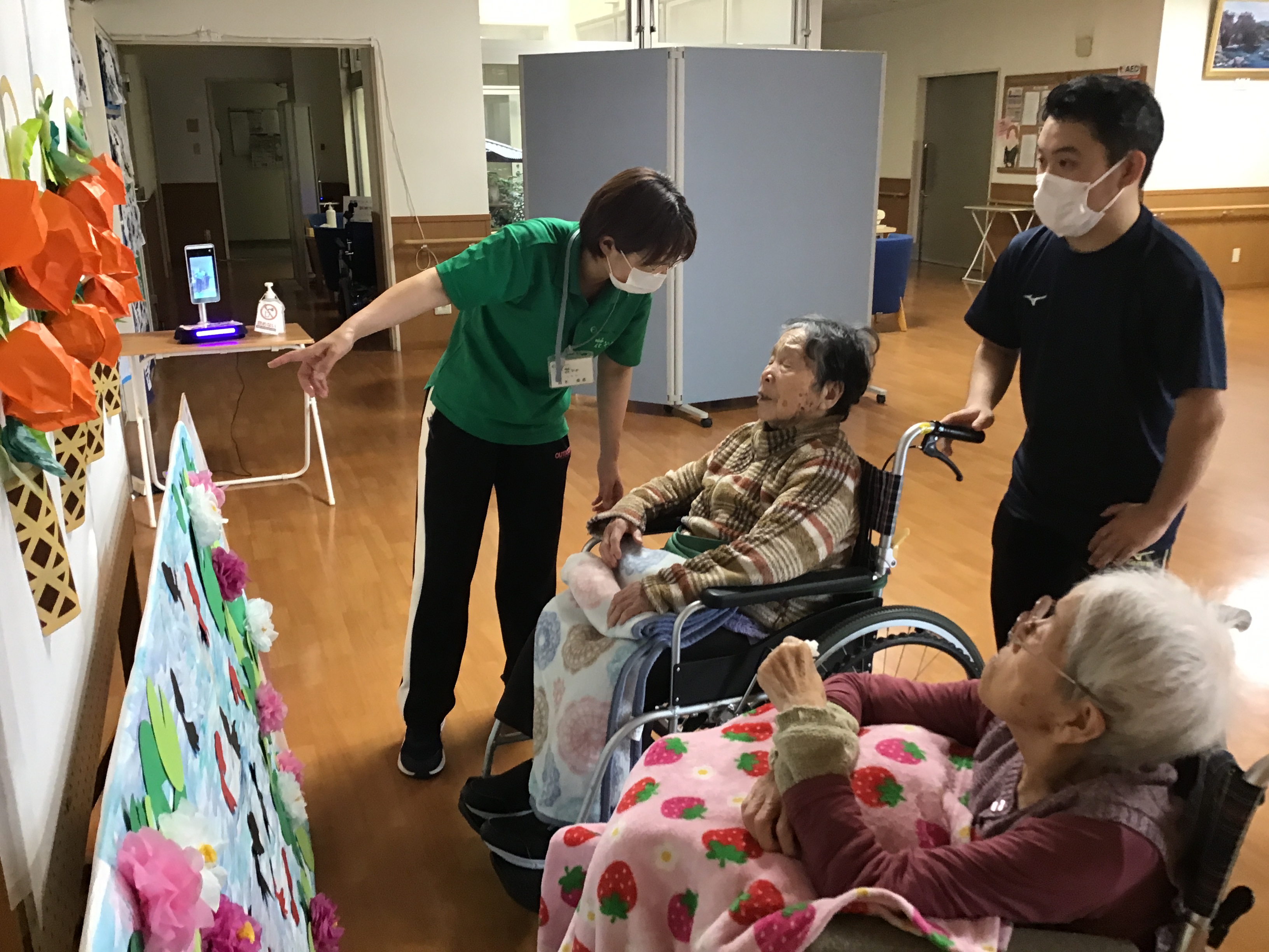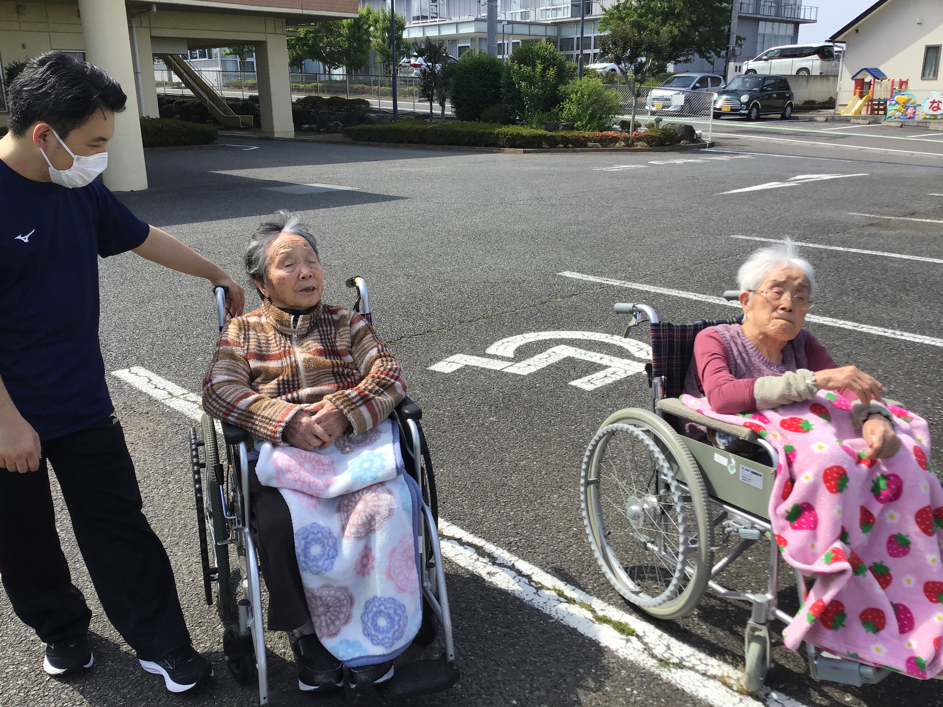 いい日陰を見つけ田植えを眺めたりデイサービスの職員と交流されたり