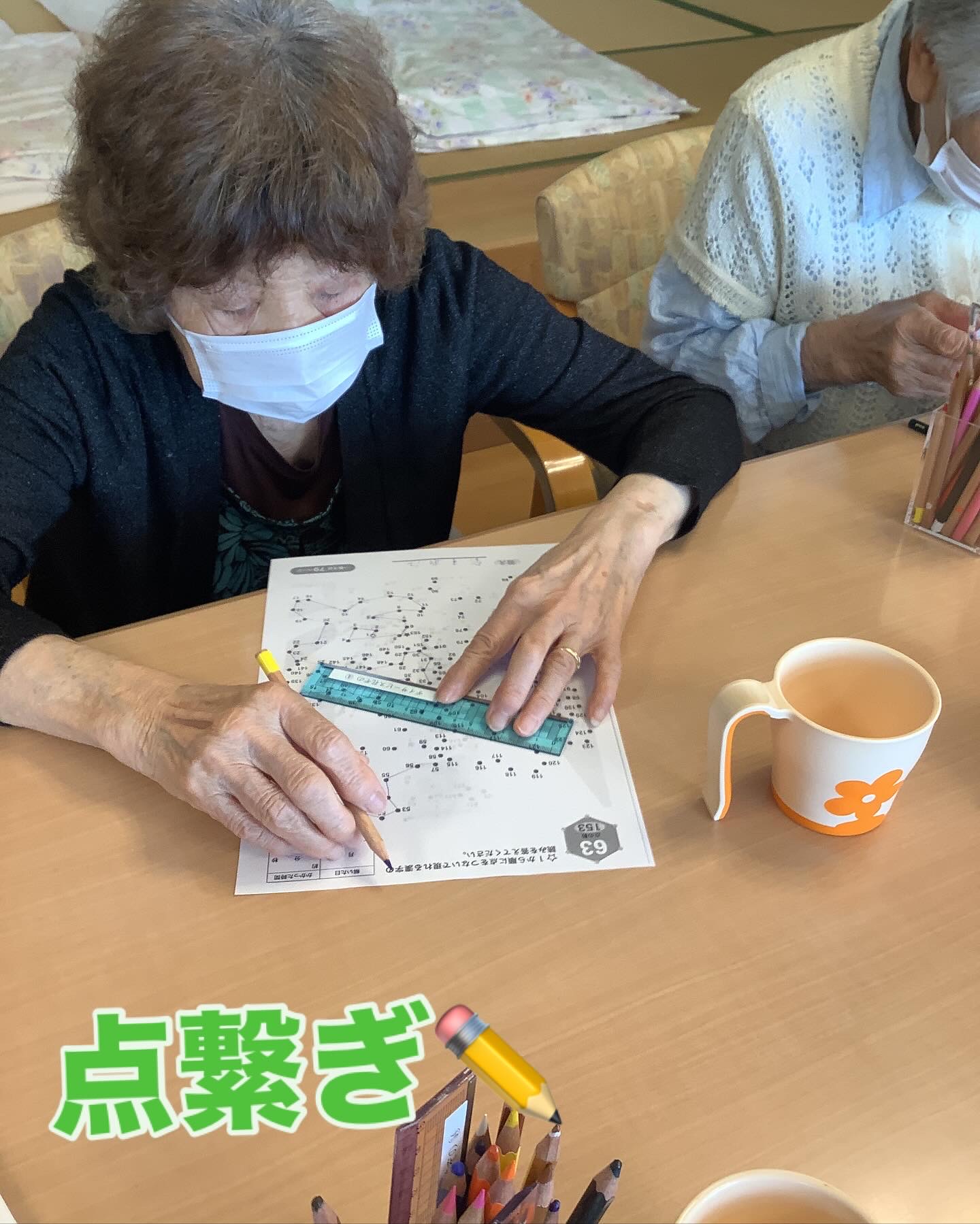 塗り絵や点つなぎ人気の脳トレです(^^♪ 皆様、手先が器用でびっくり(^^)/