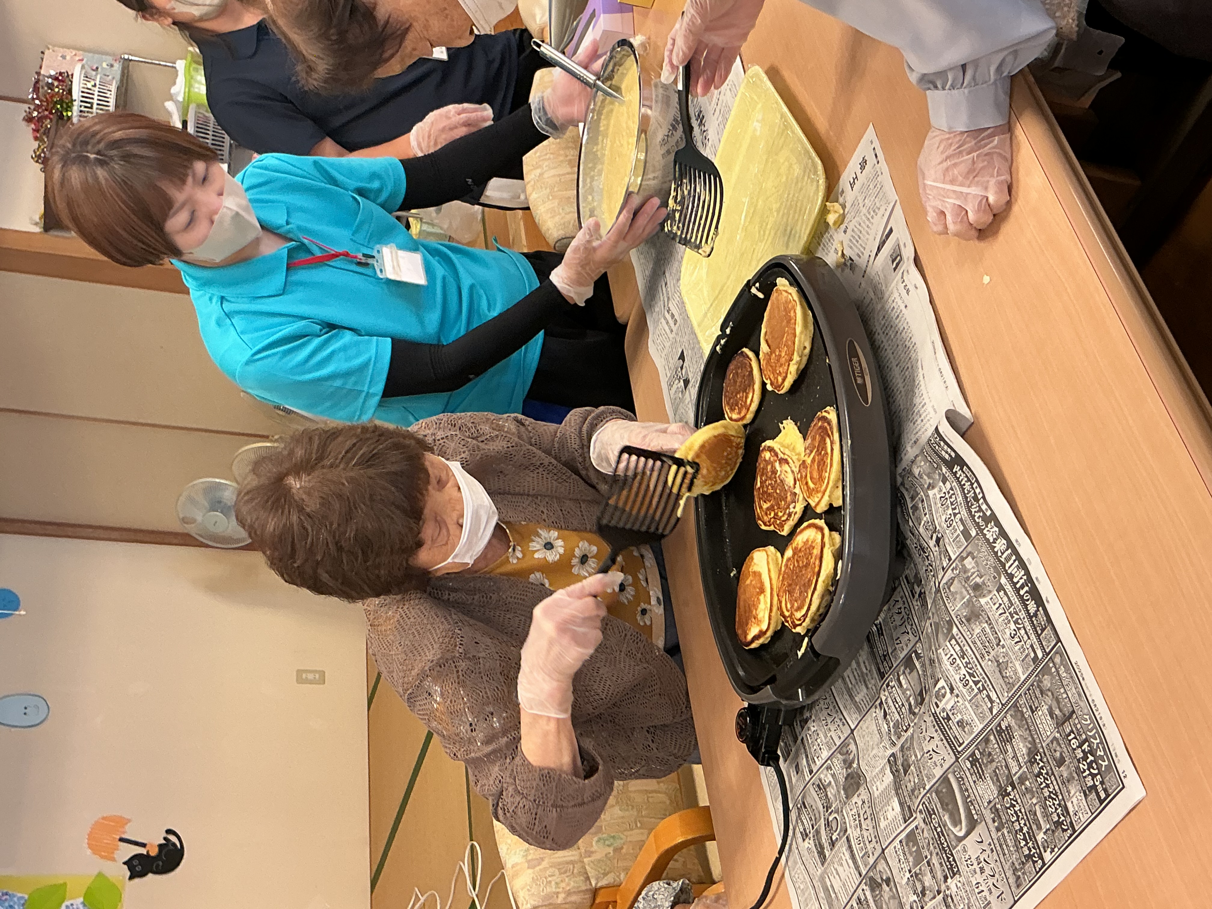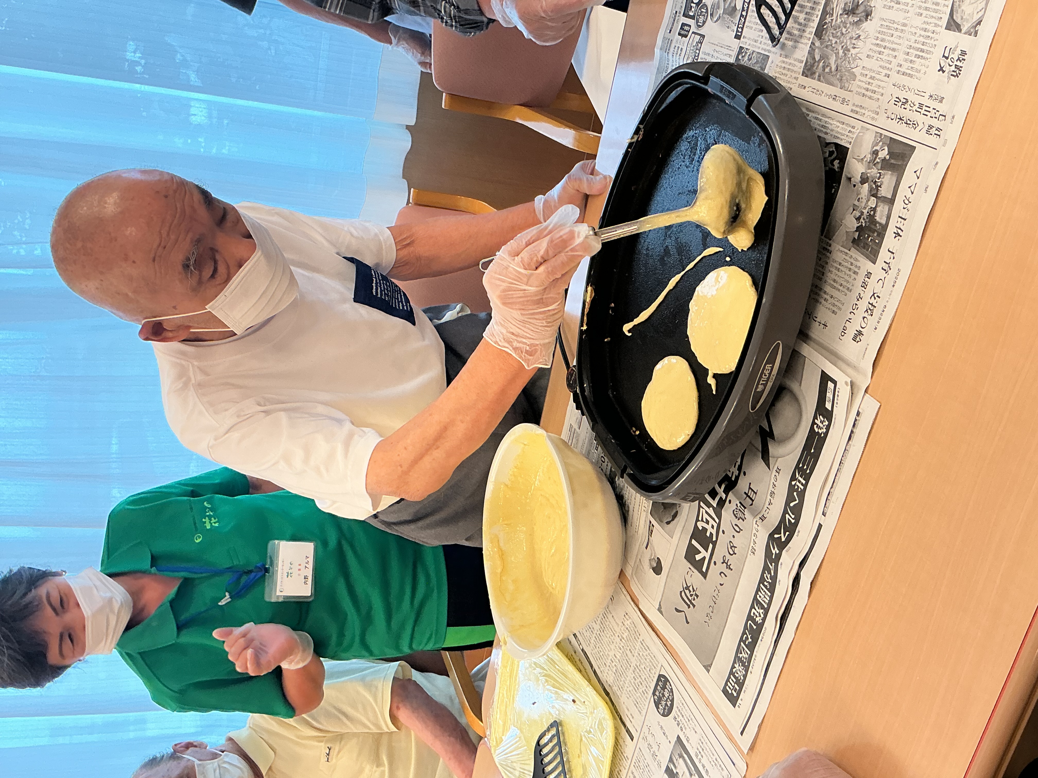 6/23におやつレクでホットケーキを作りました(*^▽^*)