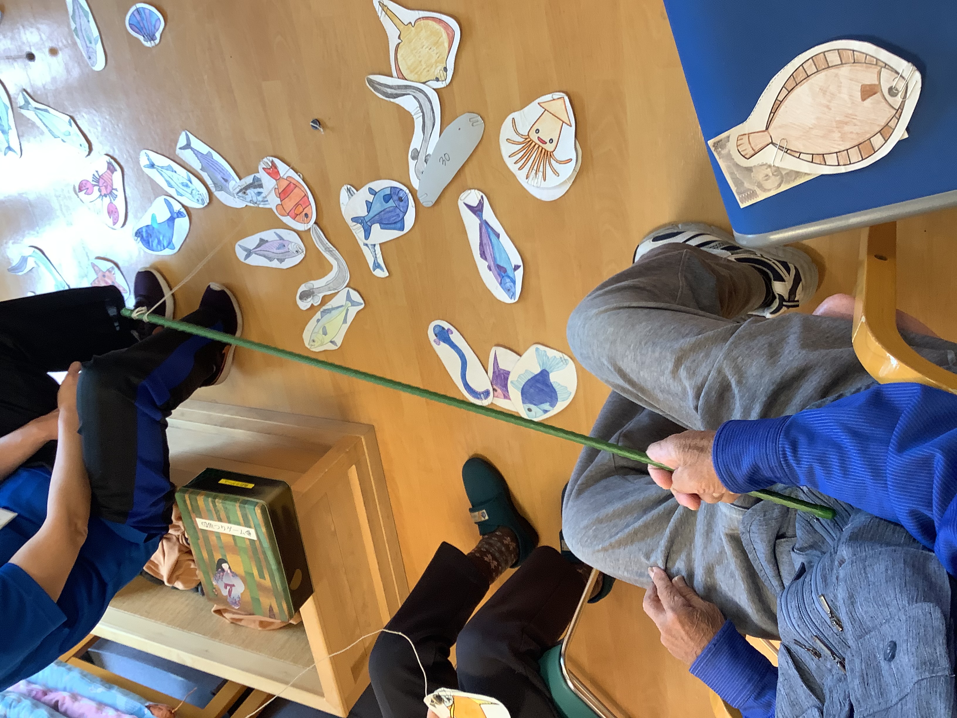 おはようございます(^^)/ デイサービスでは午後のクラブ活動の時間に色々な事を行っています♪ グラウンドゴルフや職員手作りの魚釣りゲームなど楽しんで頂いています(^^♪ 魚釣りゲームは人気のレクで大盛り上がりします♪