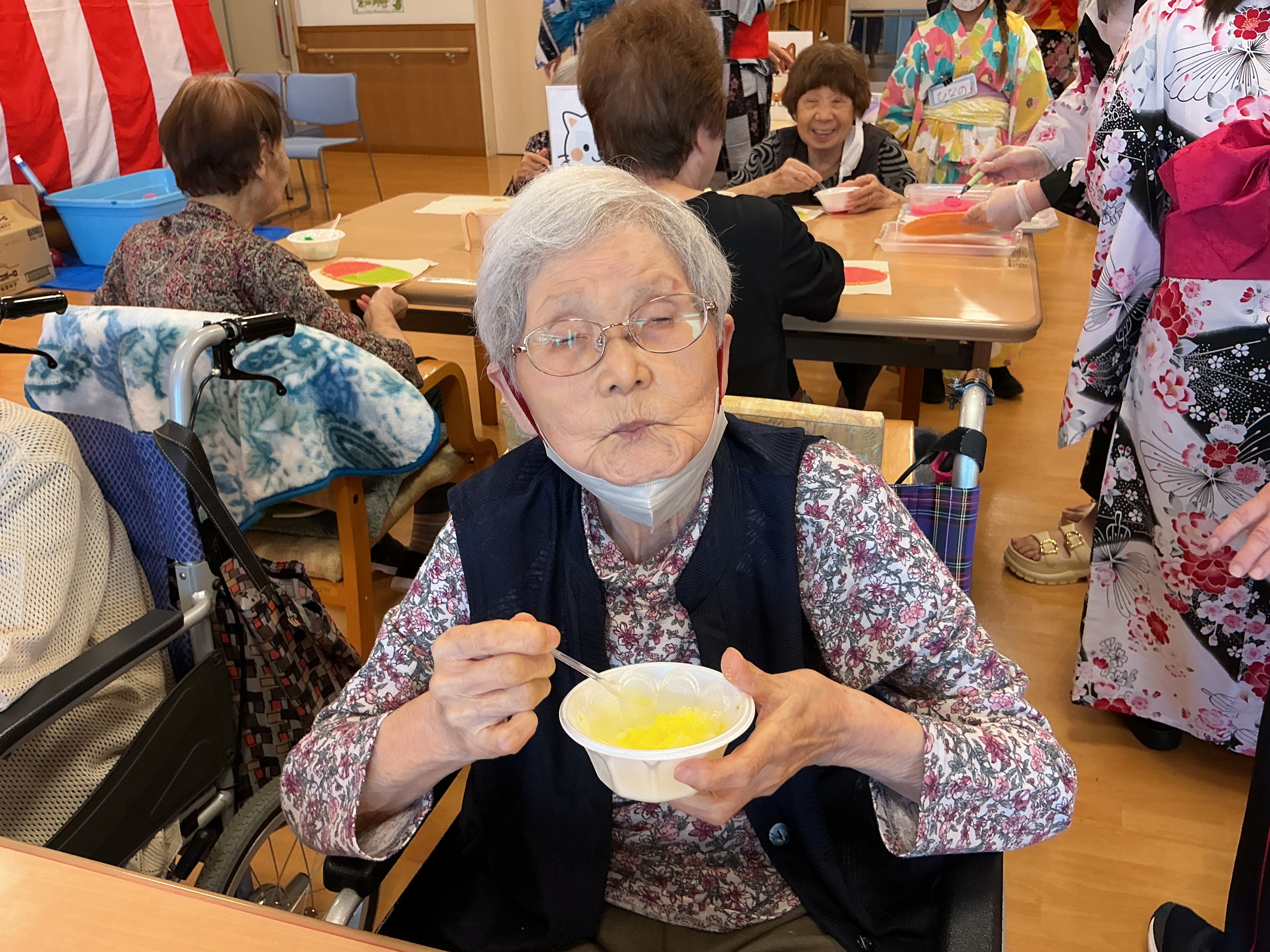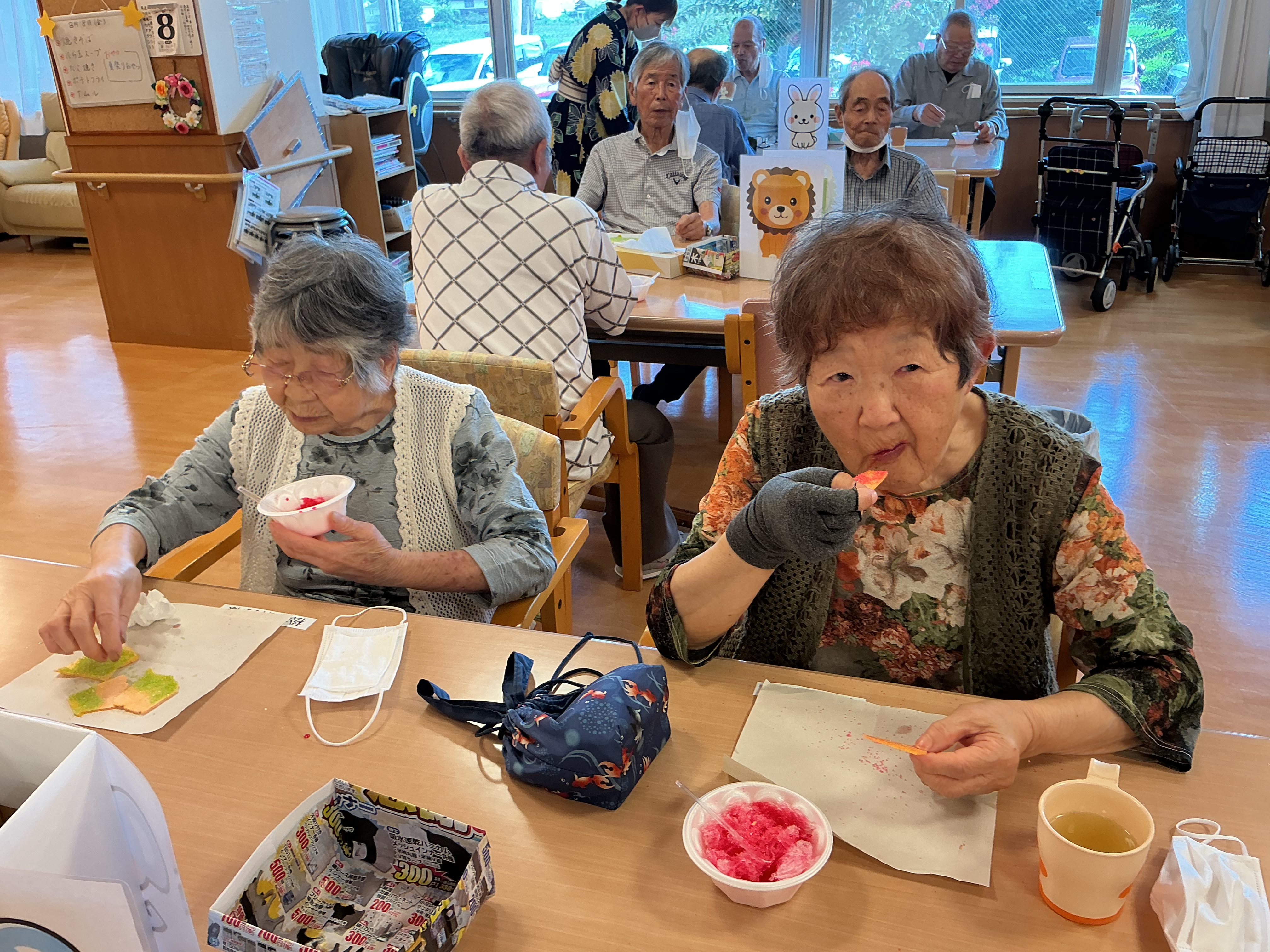 おやつには かき氷とらくがきせんべいを召し上がって頂きました(*^▽^*) 楽しい1日をみんなで過ごせました♪