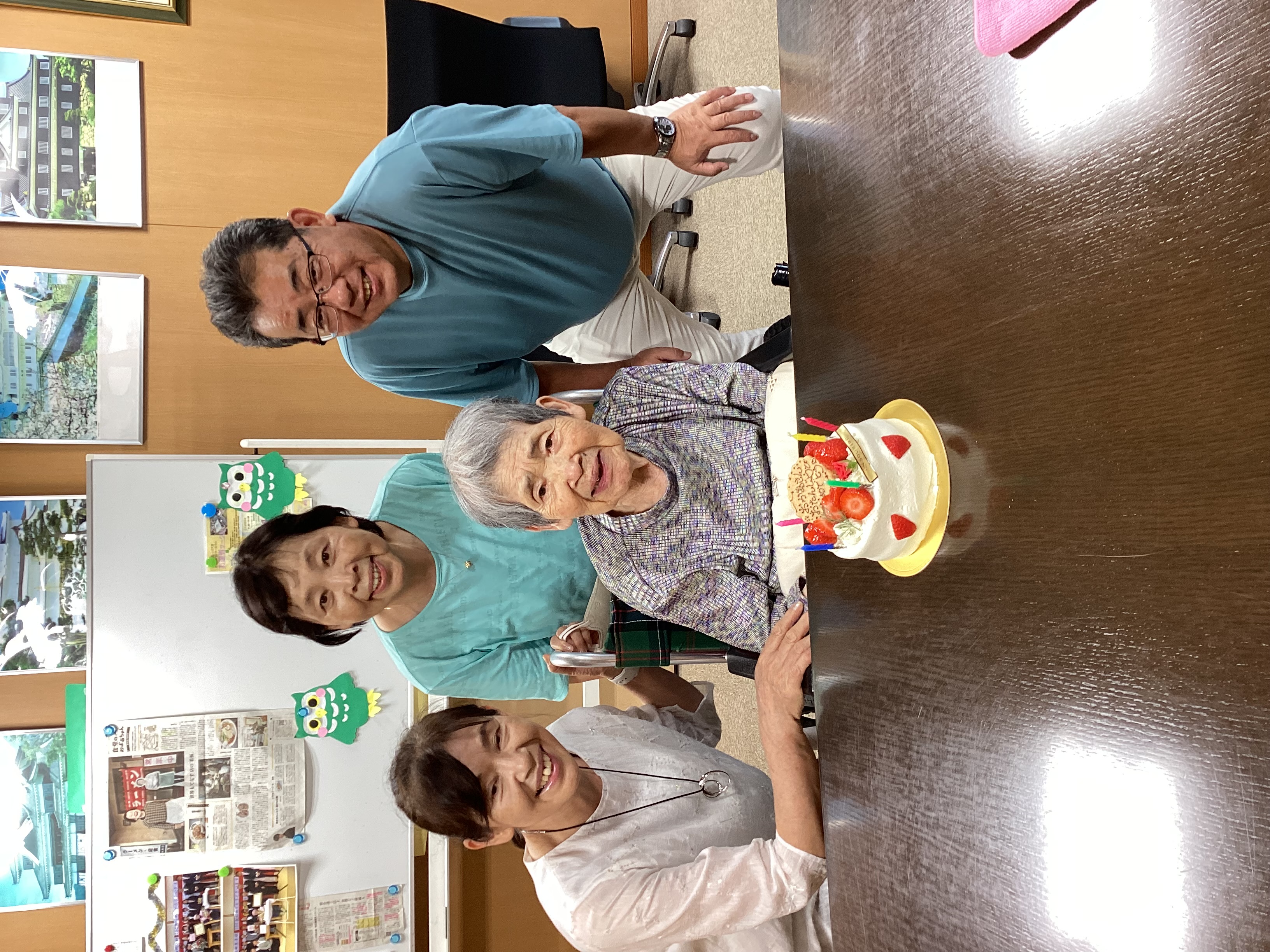 お誕生日を迎えられた利用者様とご家族3名様で