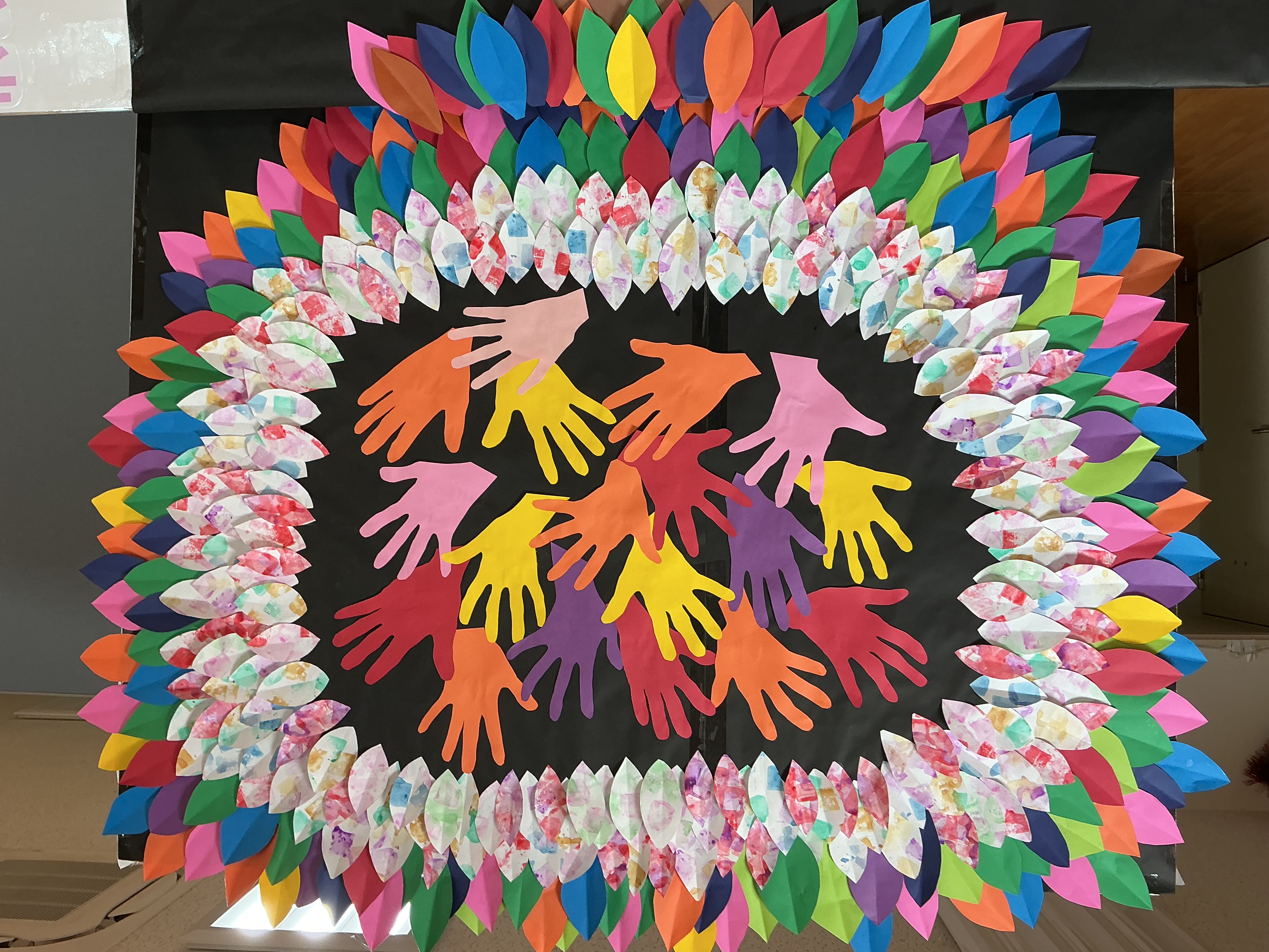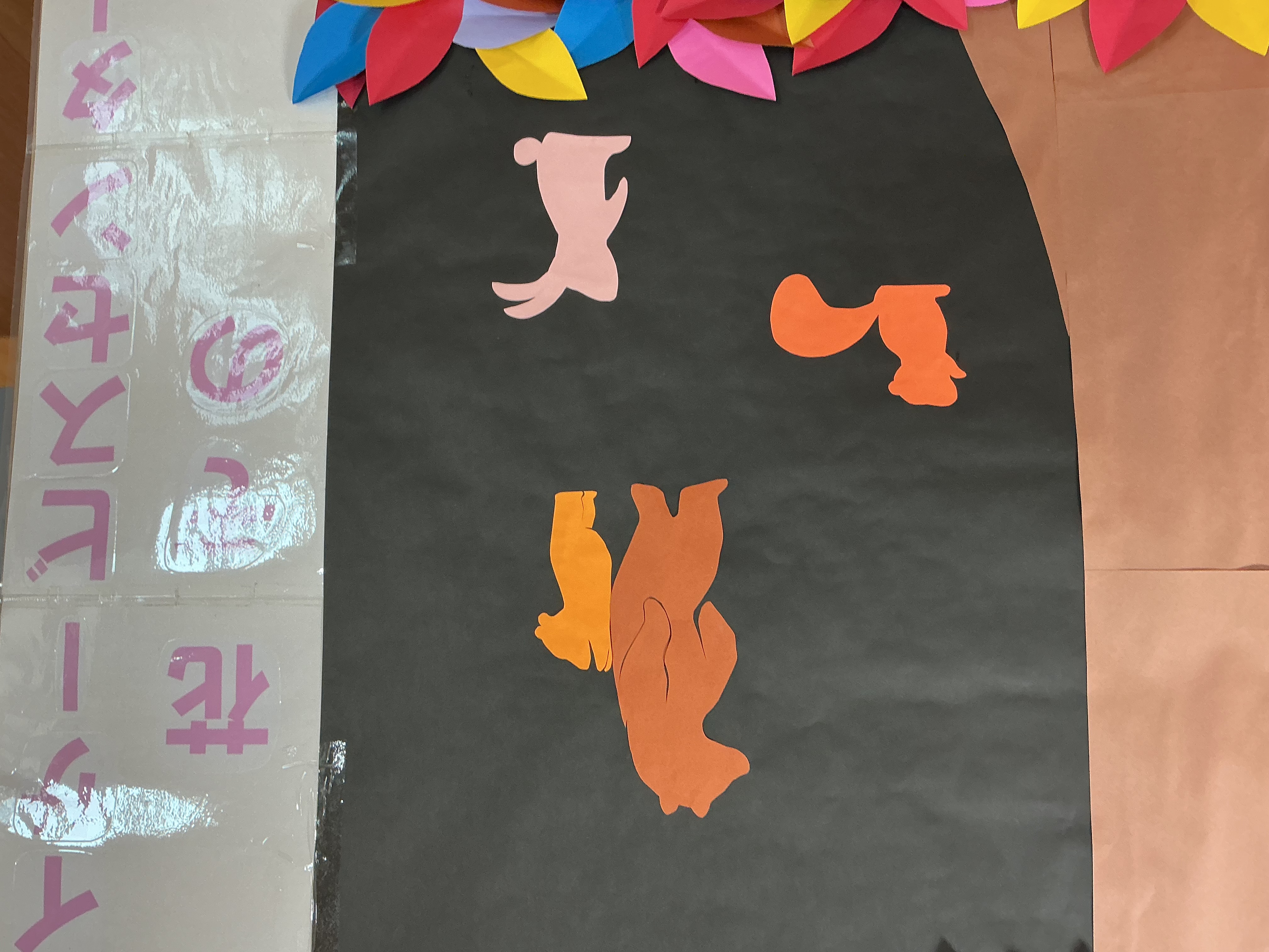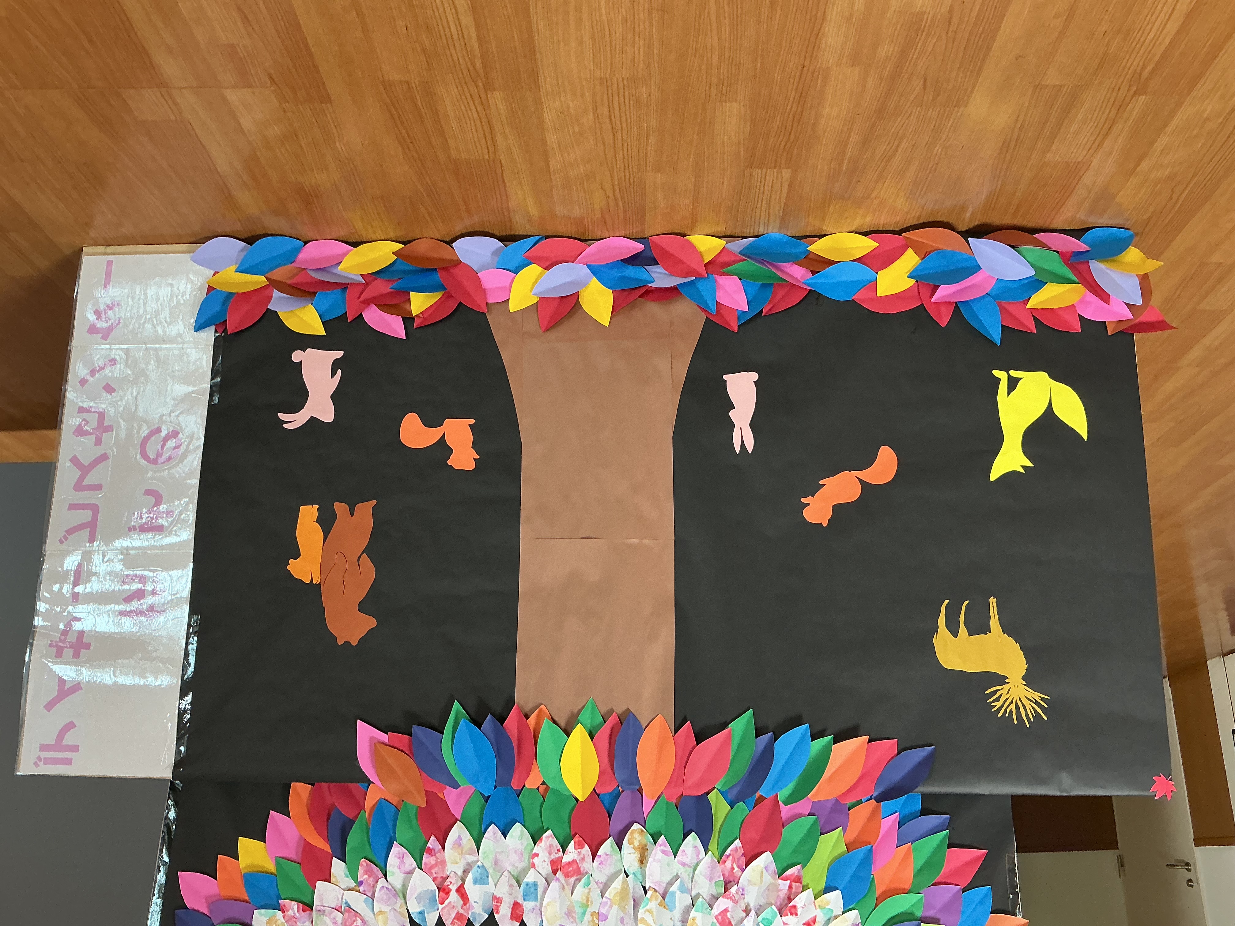 今回は利用者様の手形をメインに大きな木が完成しました(^^)/ デイルーム入りぐちに飾ってあります(*^-^*)