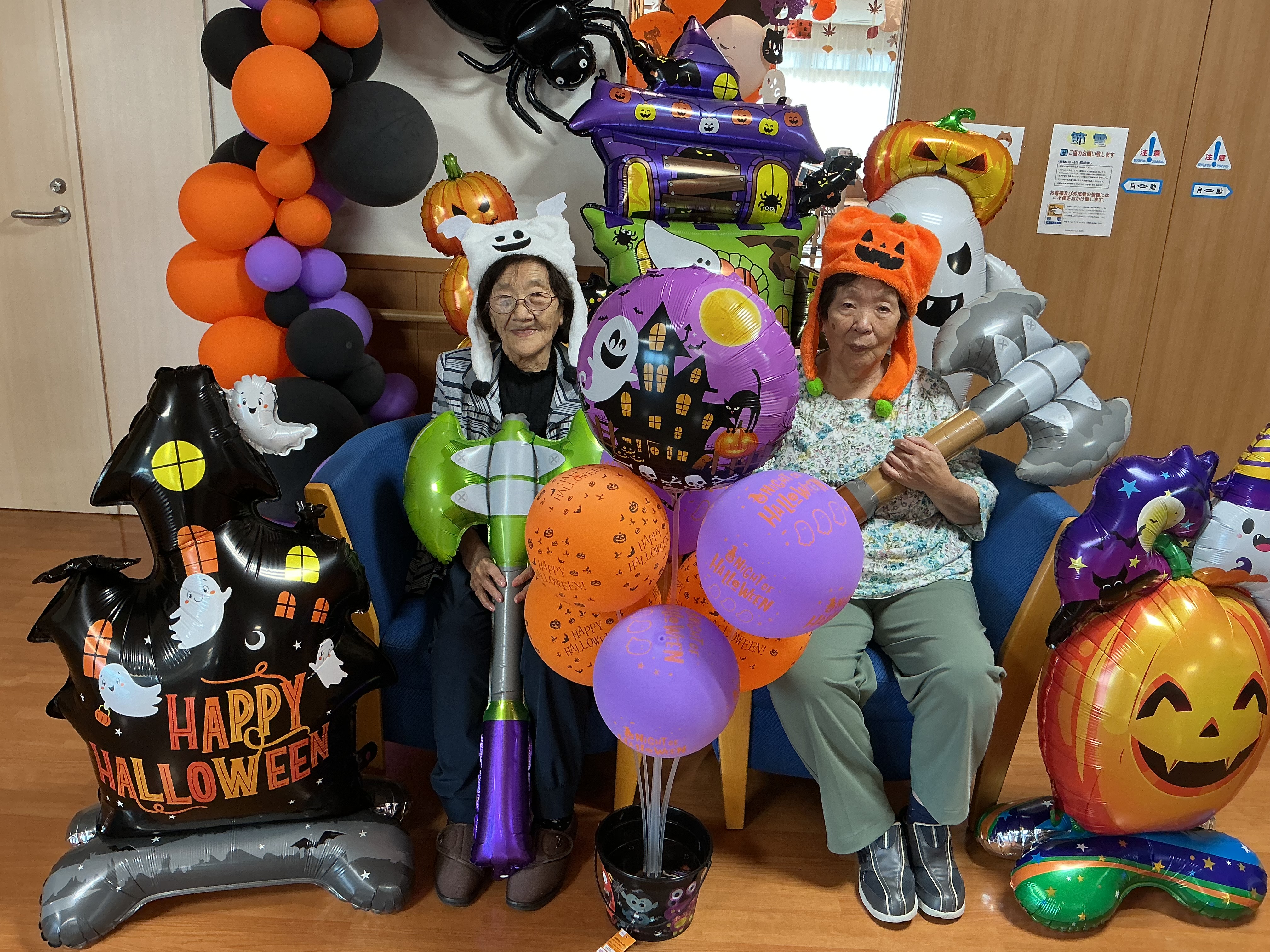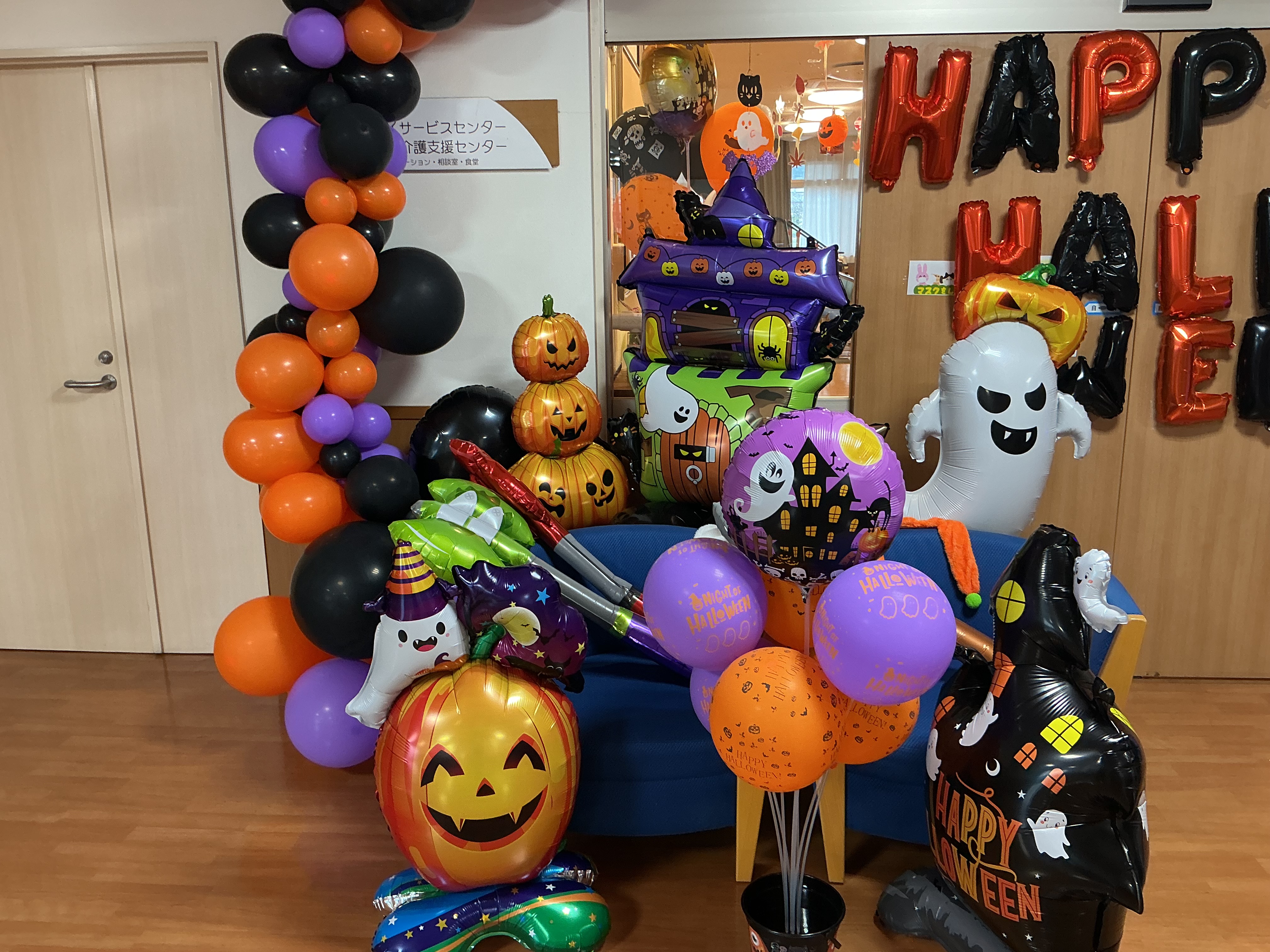 デイサービス入り口に10月初旬からハロウィンフォトスポットが出来ました( *´艸`) 沢山の利用者様が写真撮影を行っています♪
