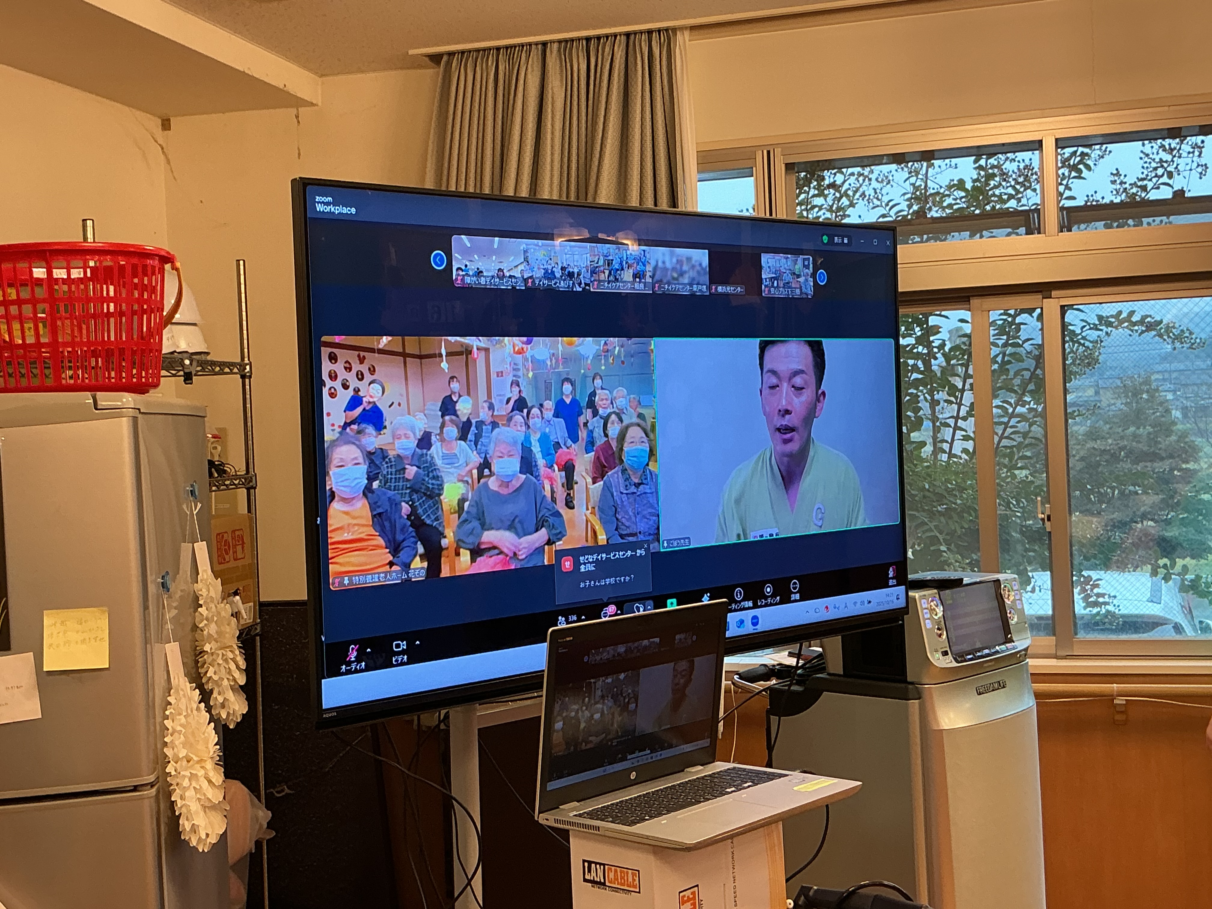 ごぼう先生のオンラインリハビリ体操に応募し参加させて頂きました(*^▽^*) いつもお世話になっているごぼう先生とオンラインで繋がりながら、いつもとは違った環境で楽しみながらリハビリを行いました!(^^)!