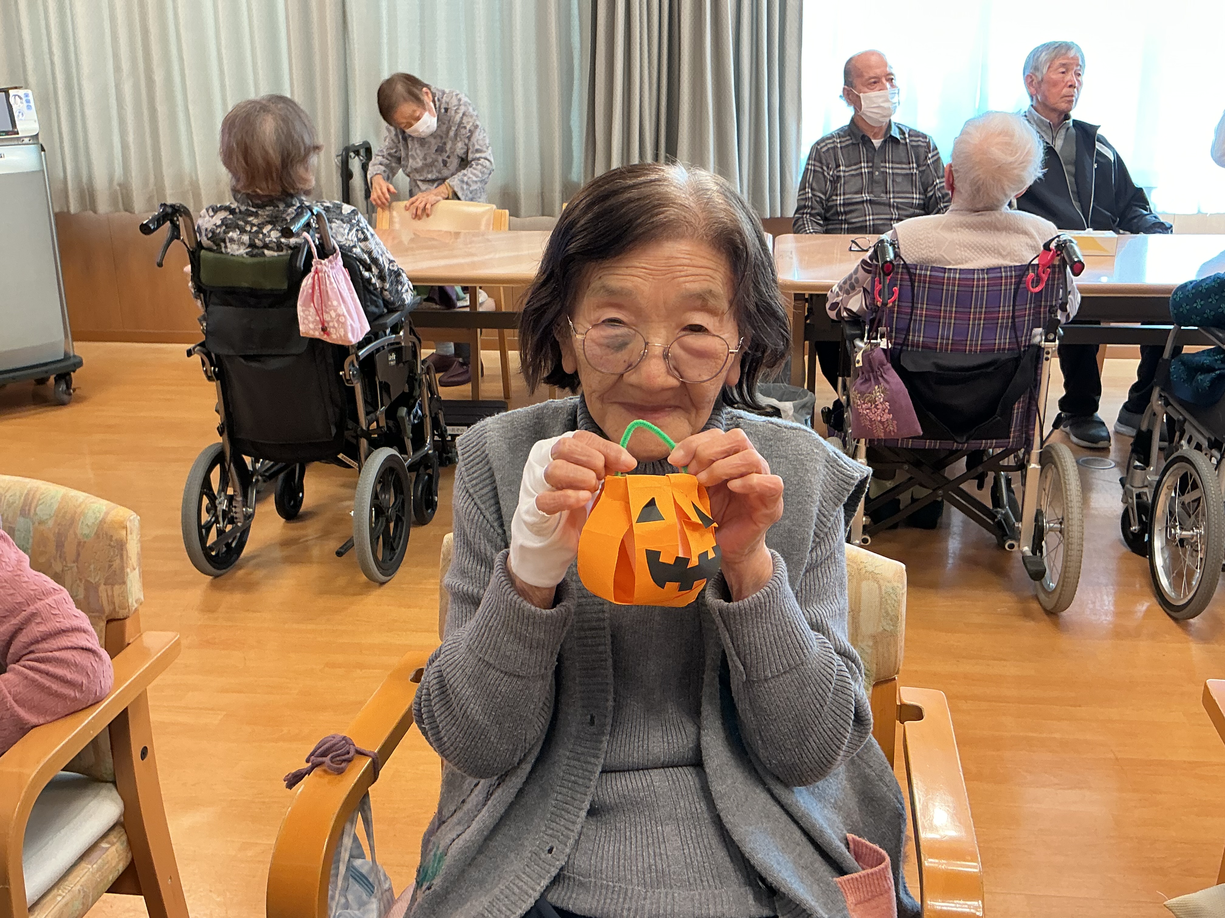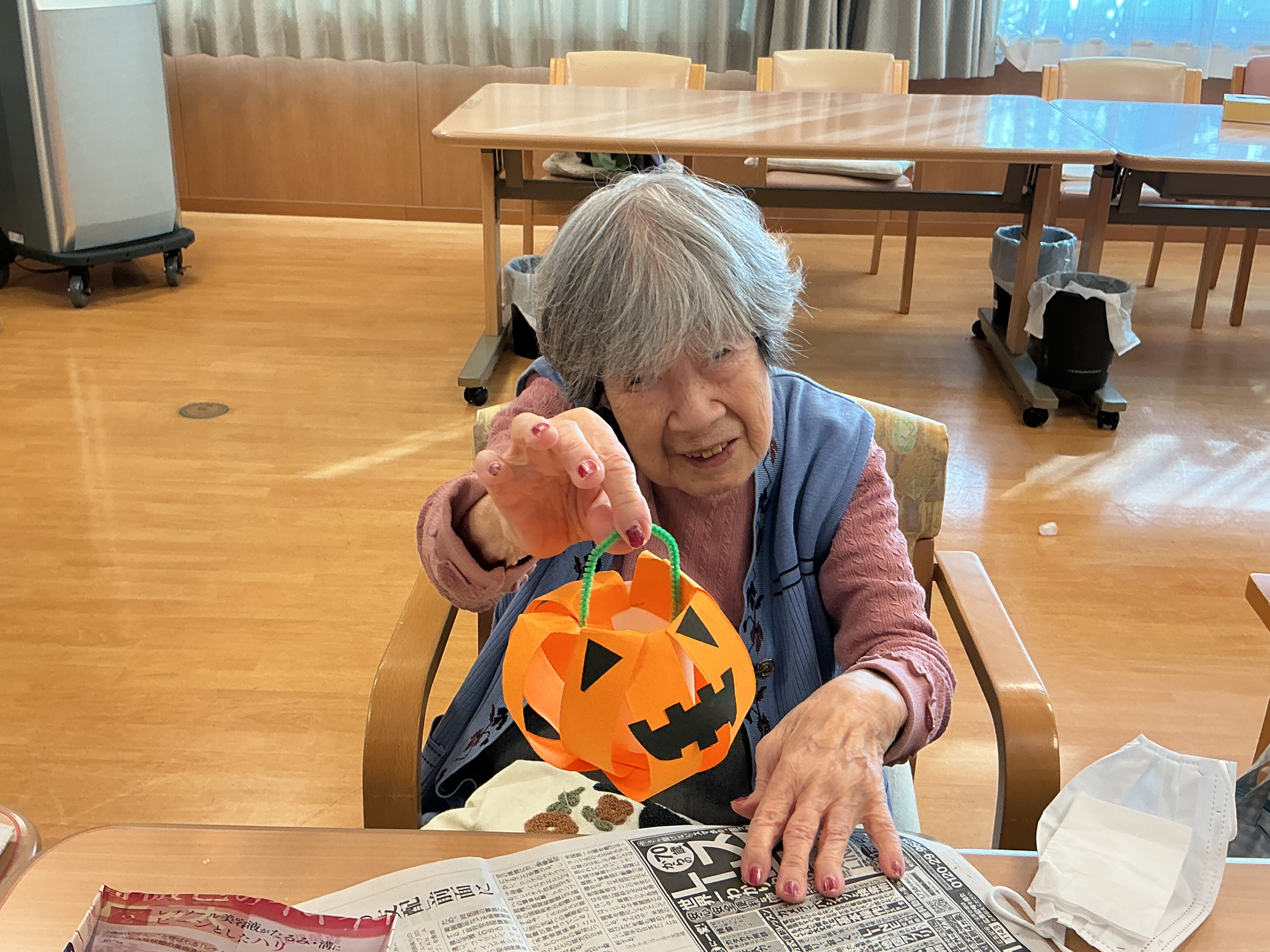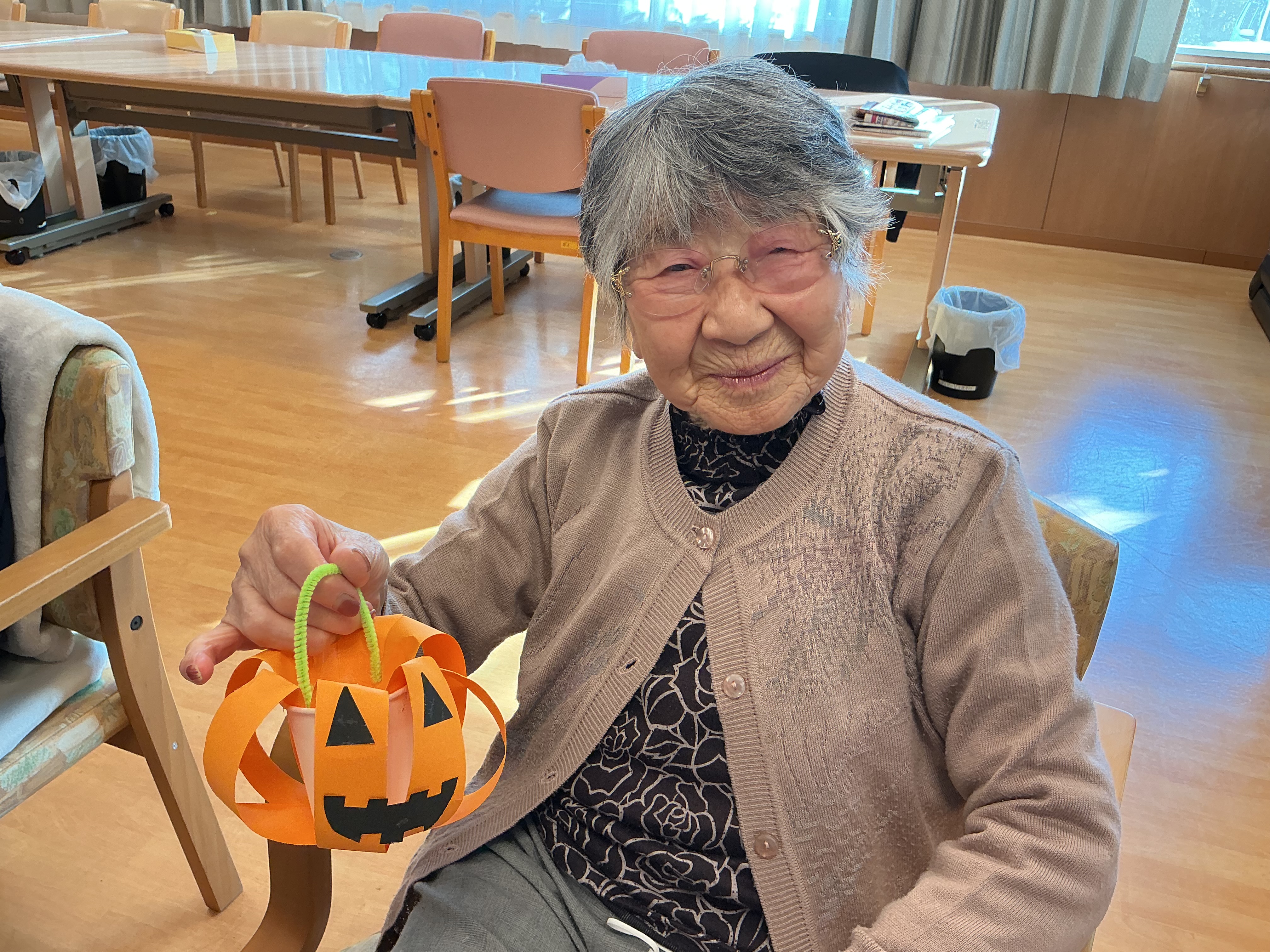 ハロウィンのカボチャの飾りの完成です(^^♪ 画用紙と紙コップ、モールを使って作りました(*^▽^*) 皆様ご自宅に持ち帰って頂いています♪