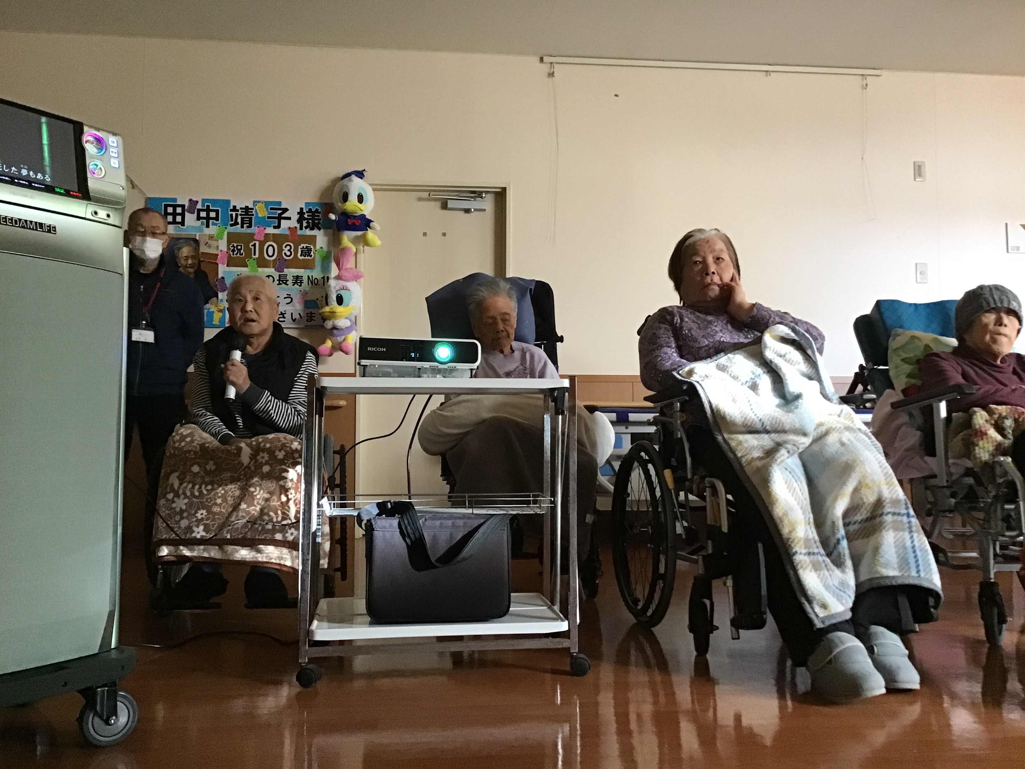 本日も三階で午前中よりカラオケが開催されました!