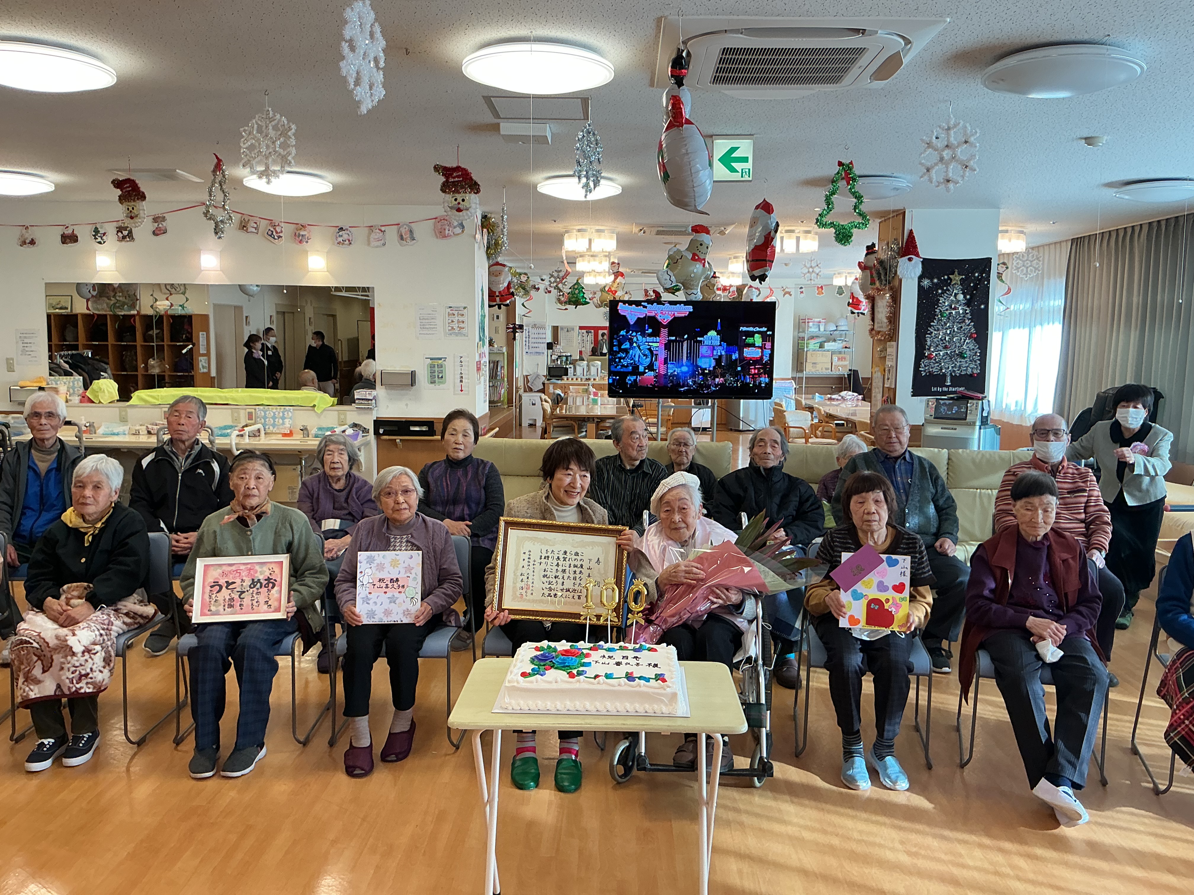 百歳のお祝いを盛大に行わせていただきました!(^^)! 職員の余興も大盛り上がりでした(^^♪