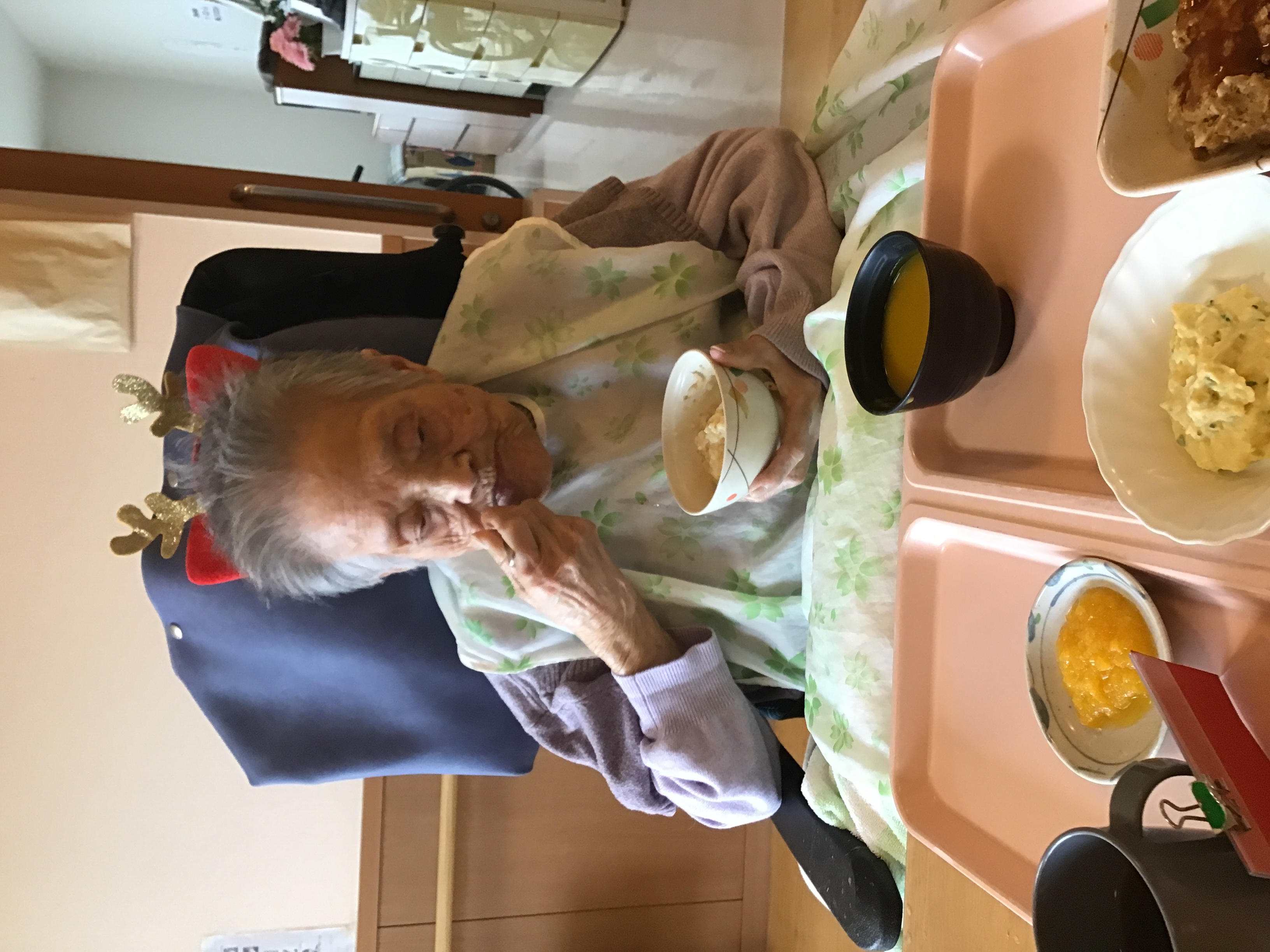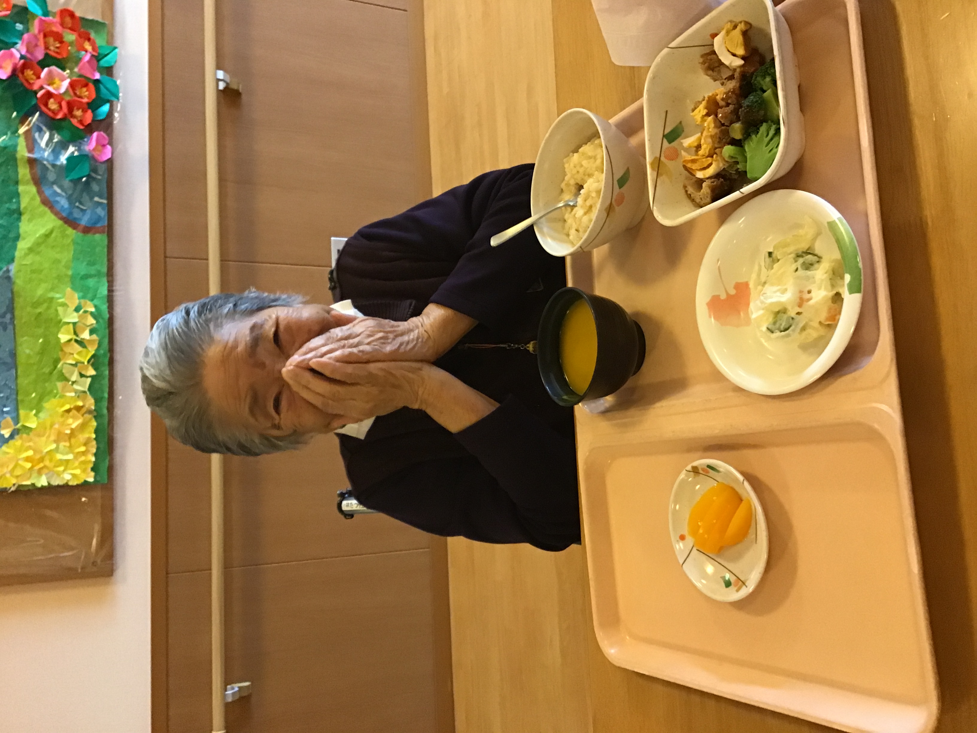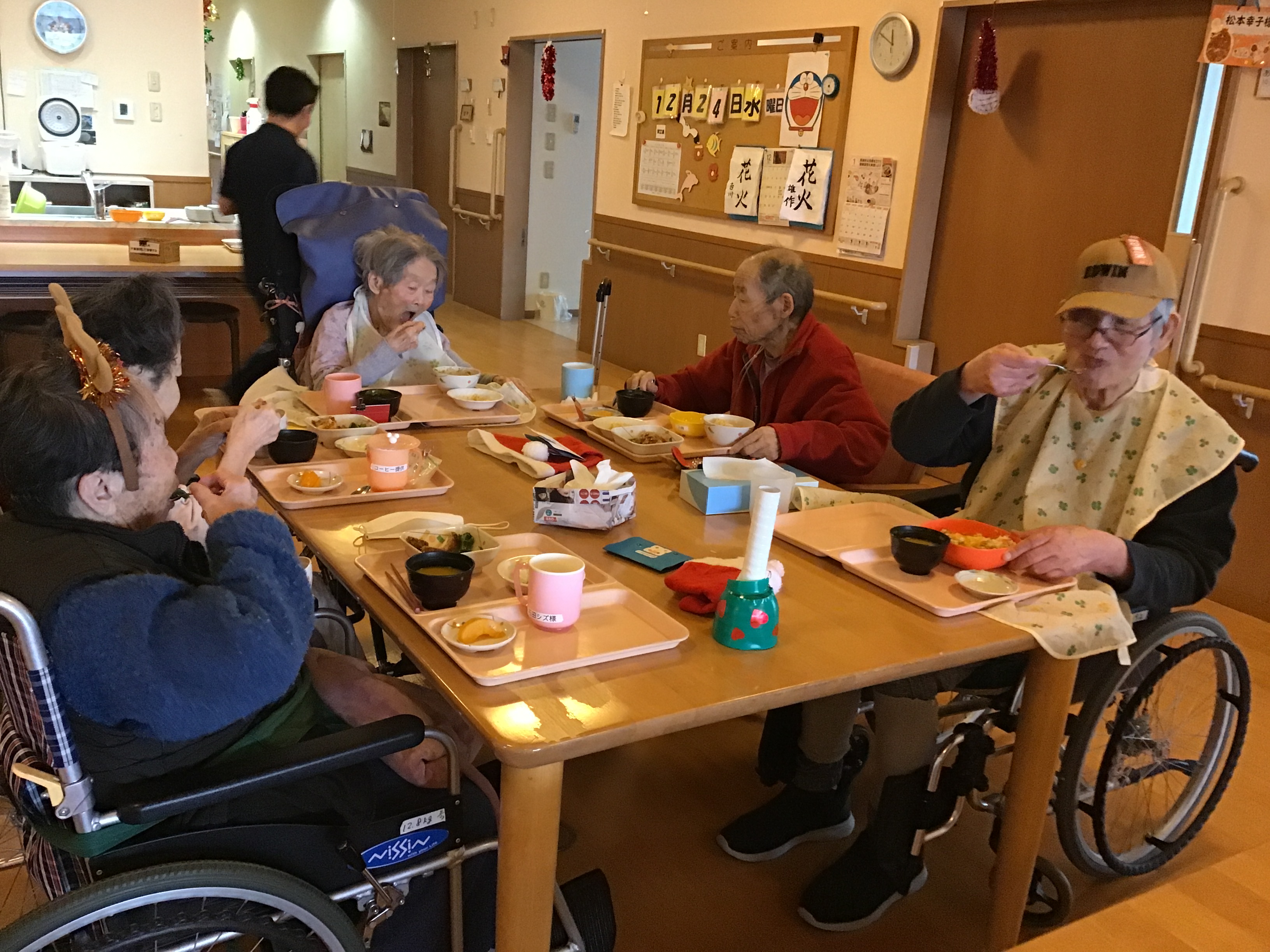職員による手作りクリスマスカードのプレゼント後は昼食です!