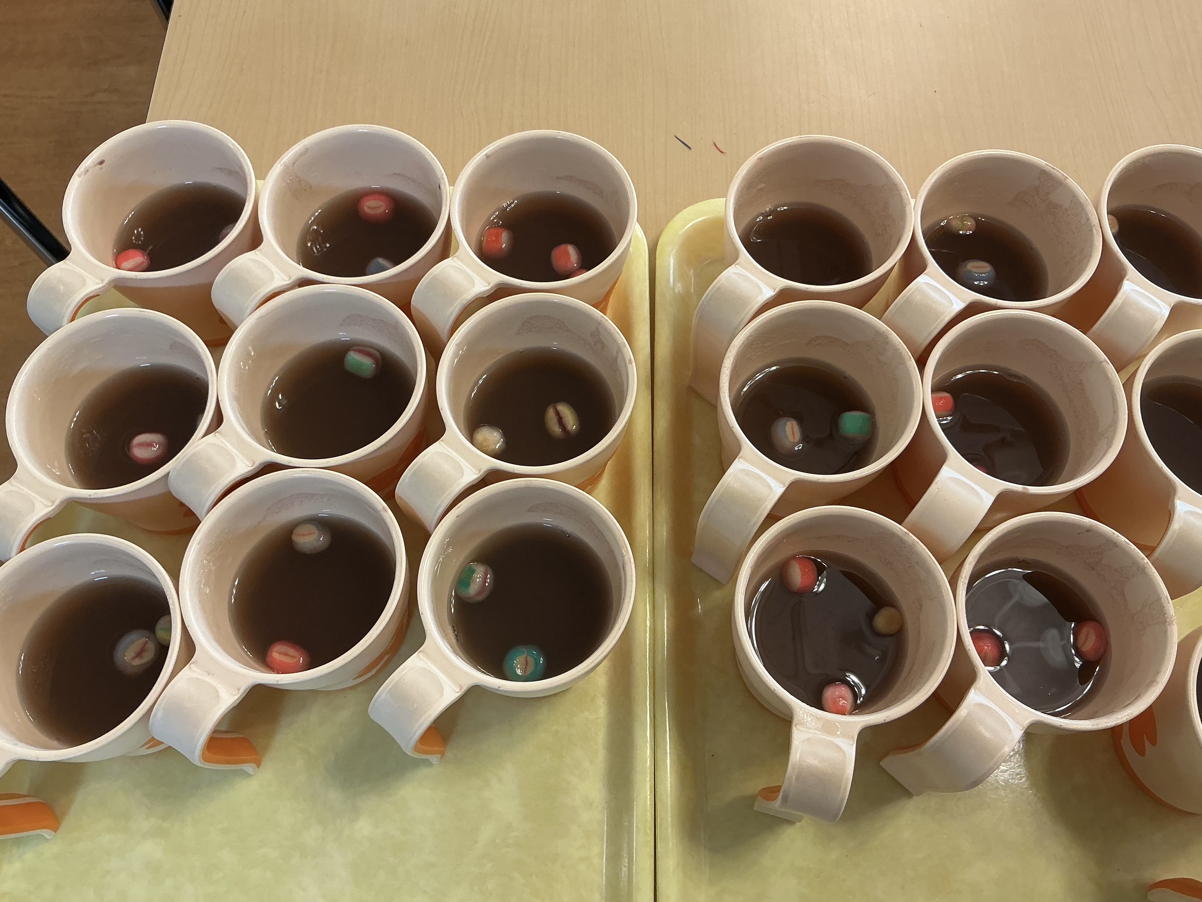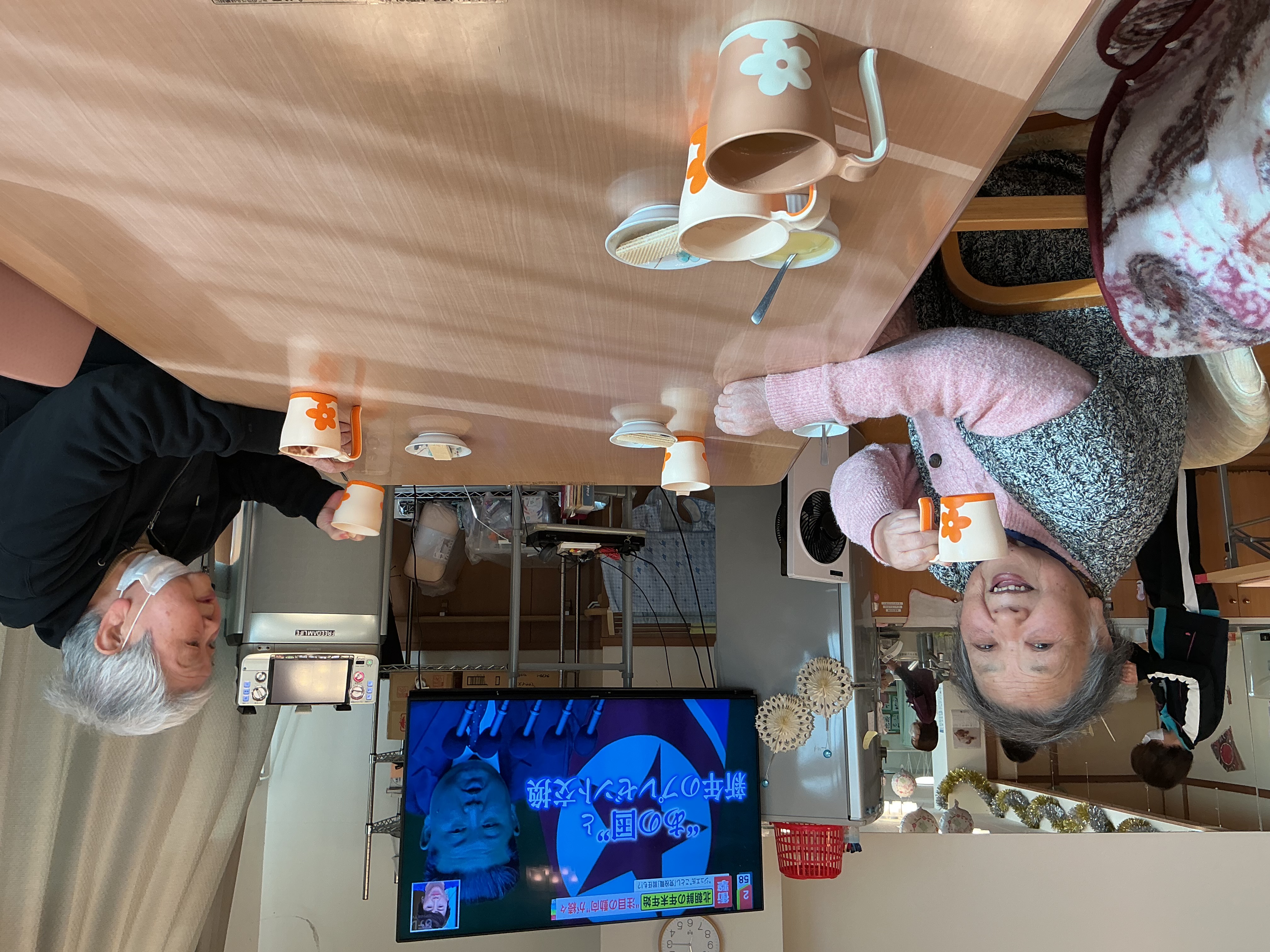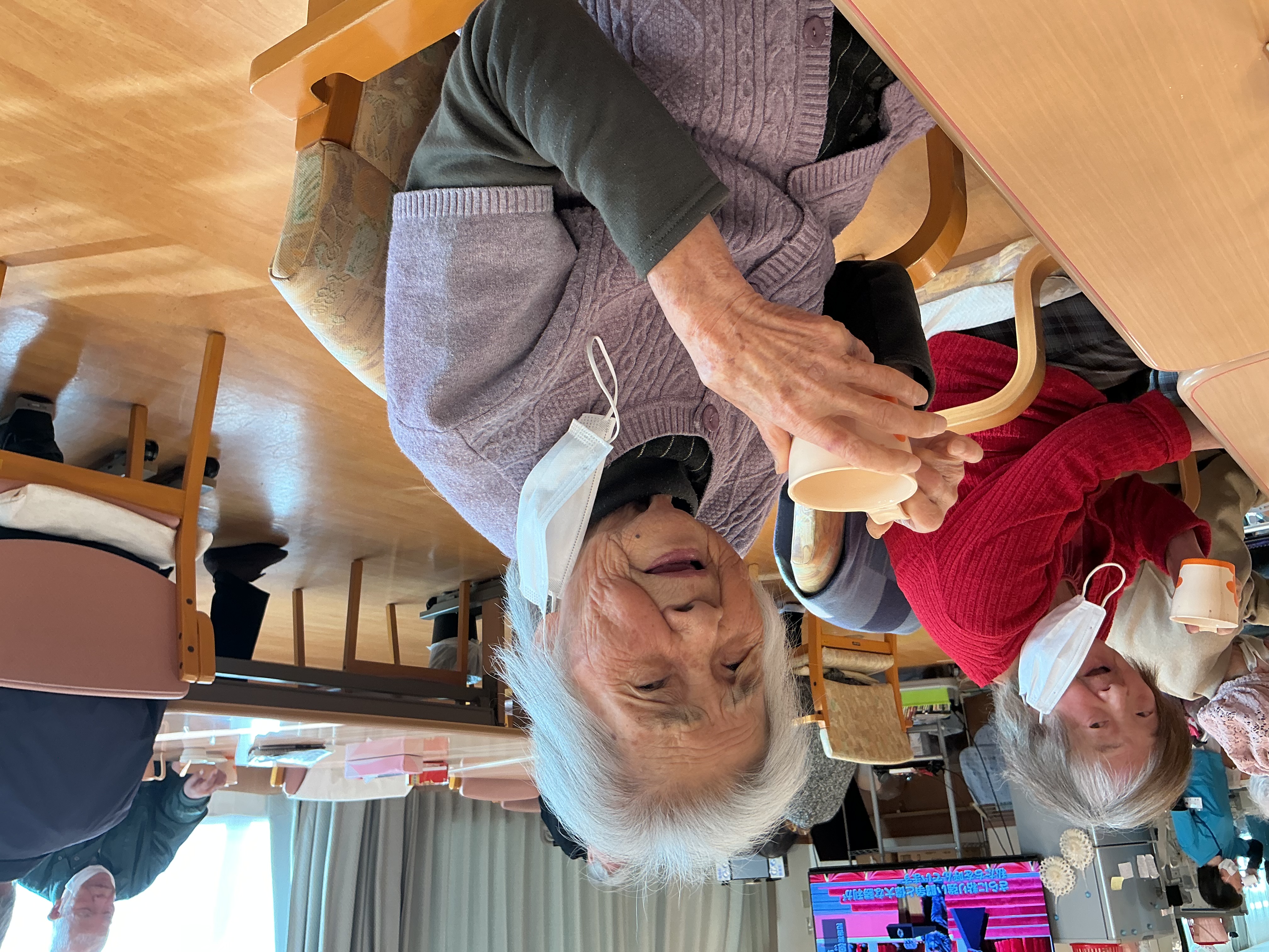 お正月レクで甘酒に続きお汁粉も提供させて頂きました(^^)/ お餅の代わりに手毬麩で可愛く安全に♪