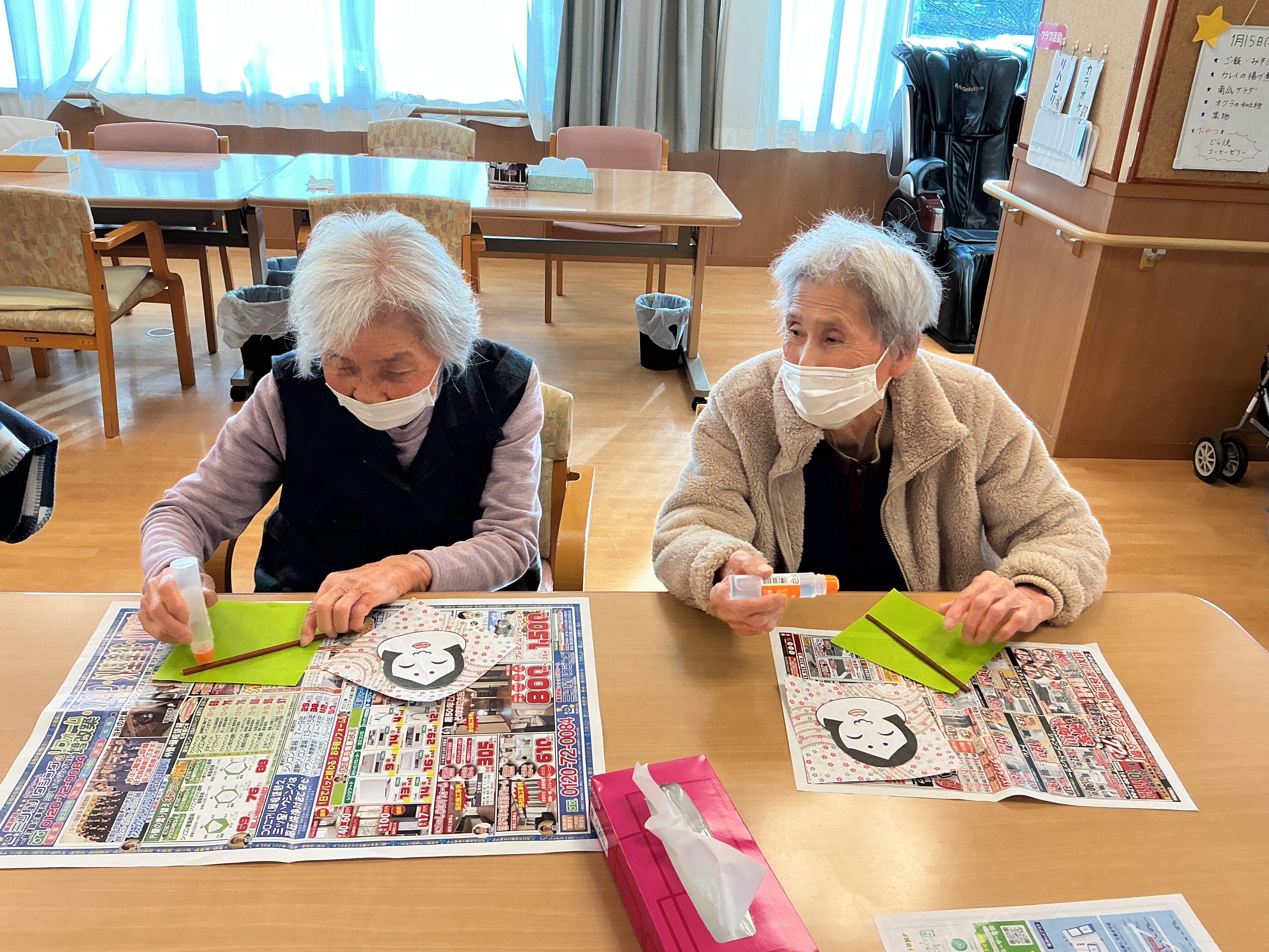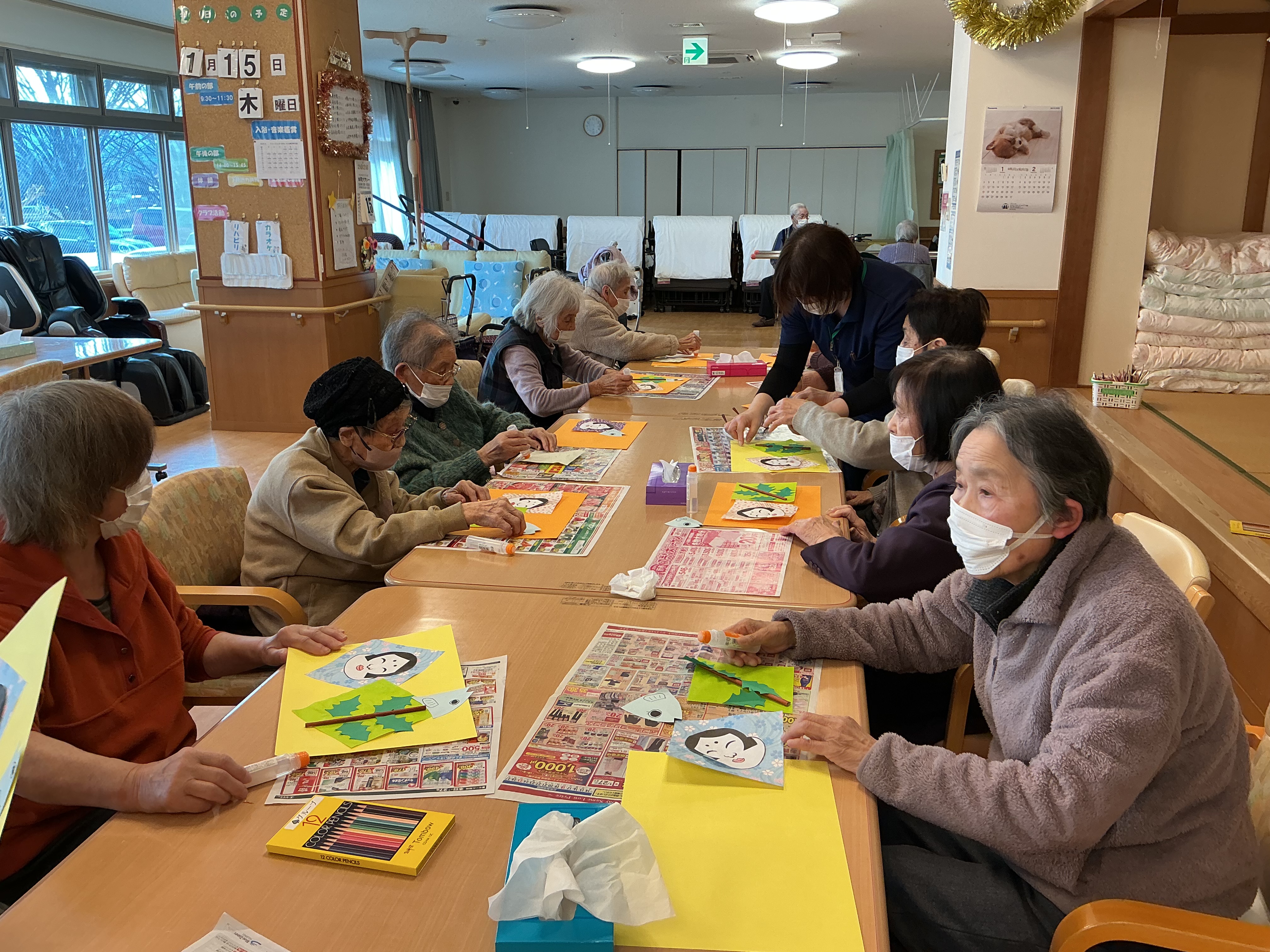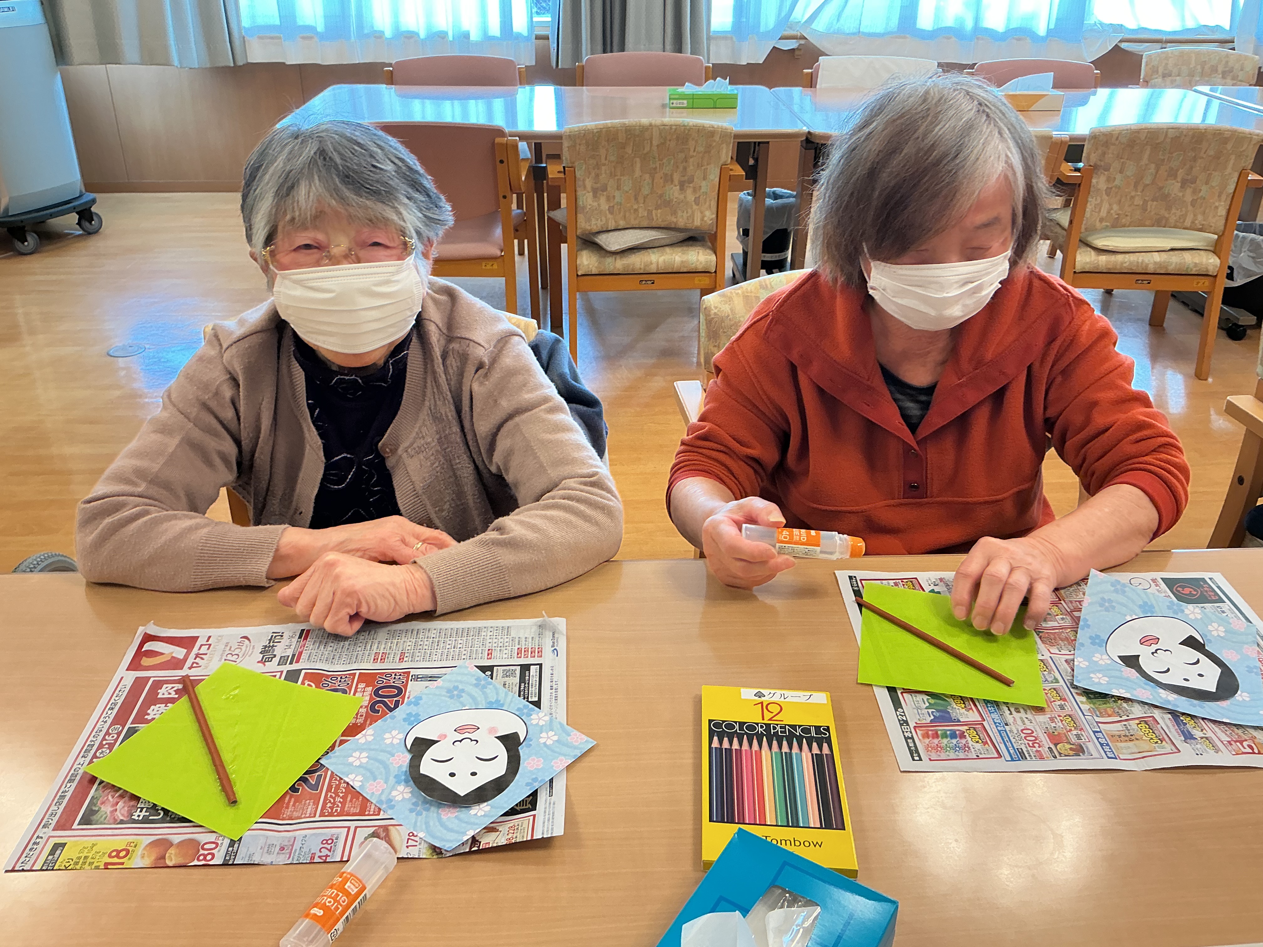 画用紙や折り紙を使って工作を行いました(^^♪ さあ、何が出来るか楽しみです♪