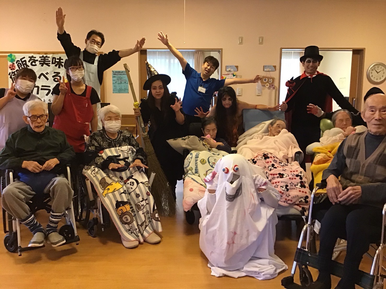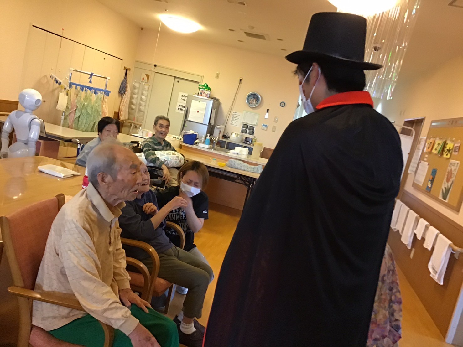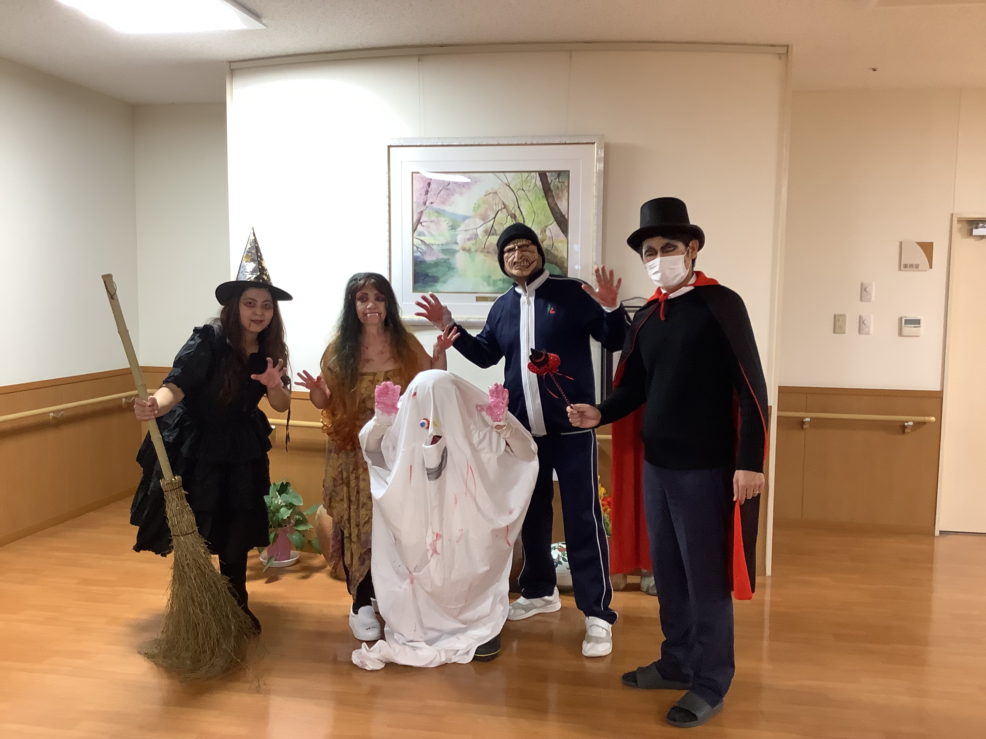 いつもと様子の違う仮装した職員に入居者様たちも戸惑っていましたが・・・・