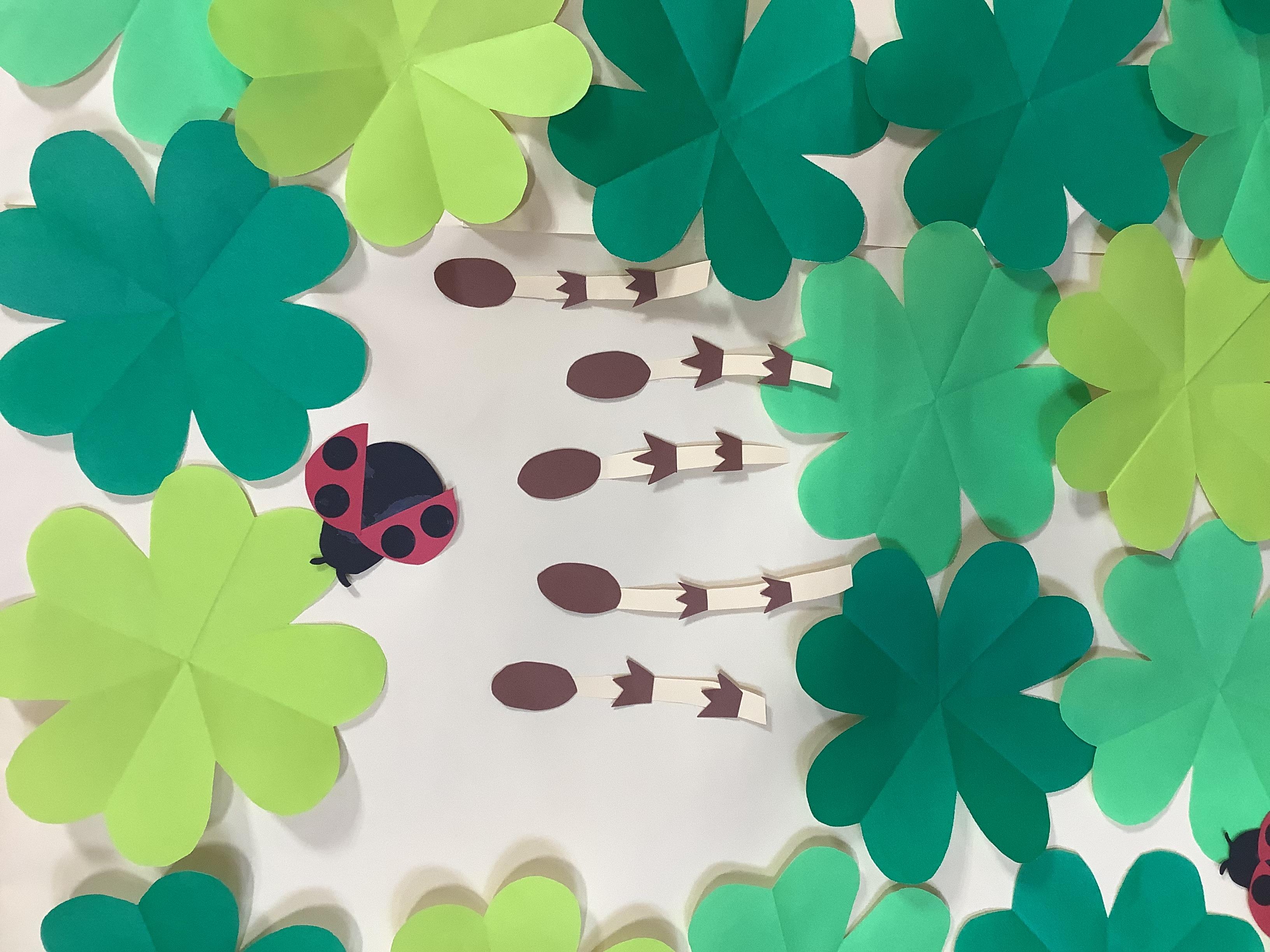4月からデイサービス入り口の壁面も春バージョンに変わりました(^^♪ 緑のキレイなクローバーにてんとう虫やつくし、蝶々が色とりどりに飾られています( *´艸`)利用者様からも一気に「春らしくなったね」と好評です♪