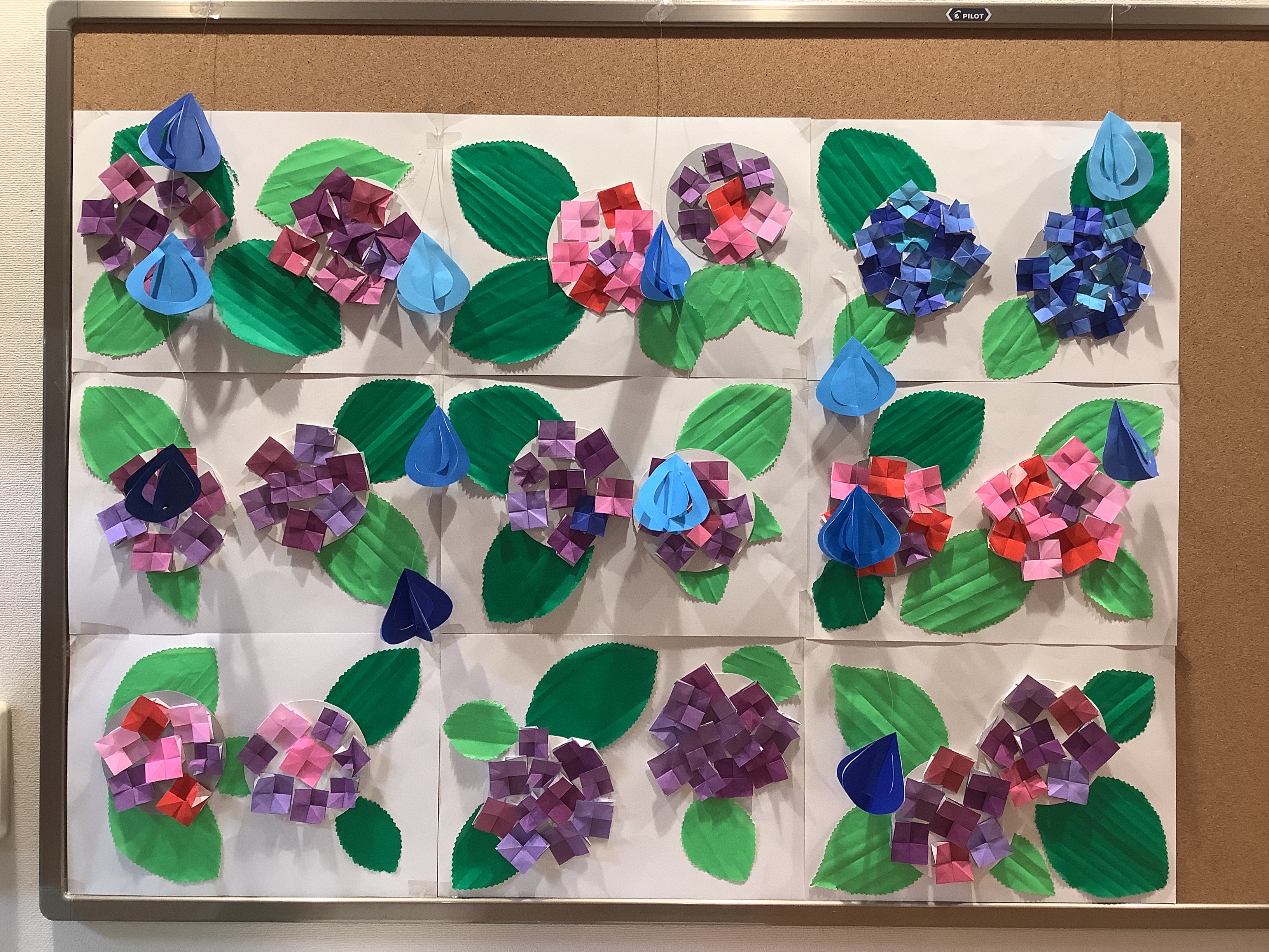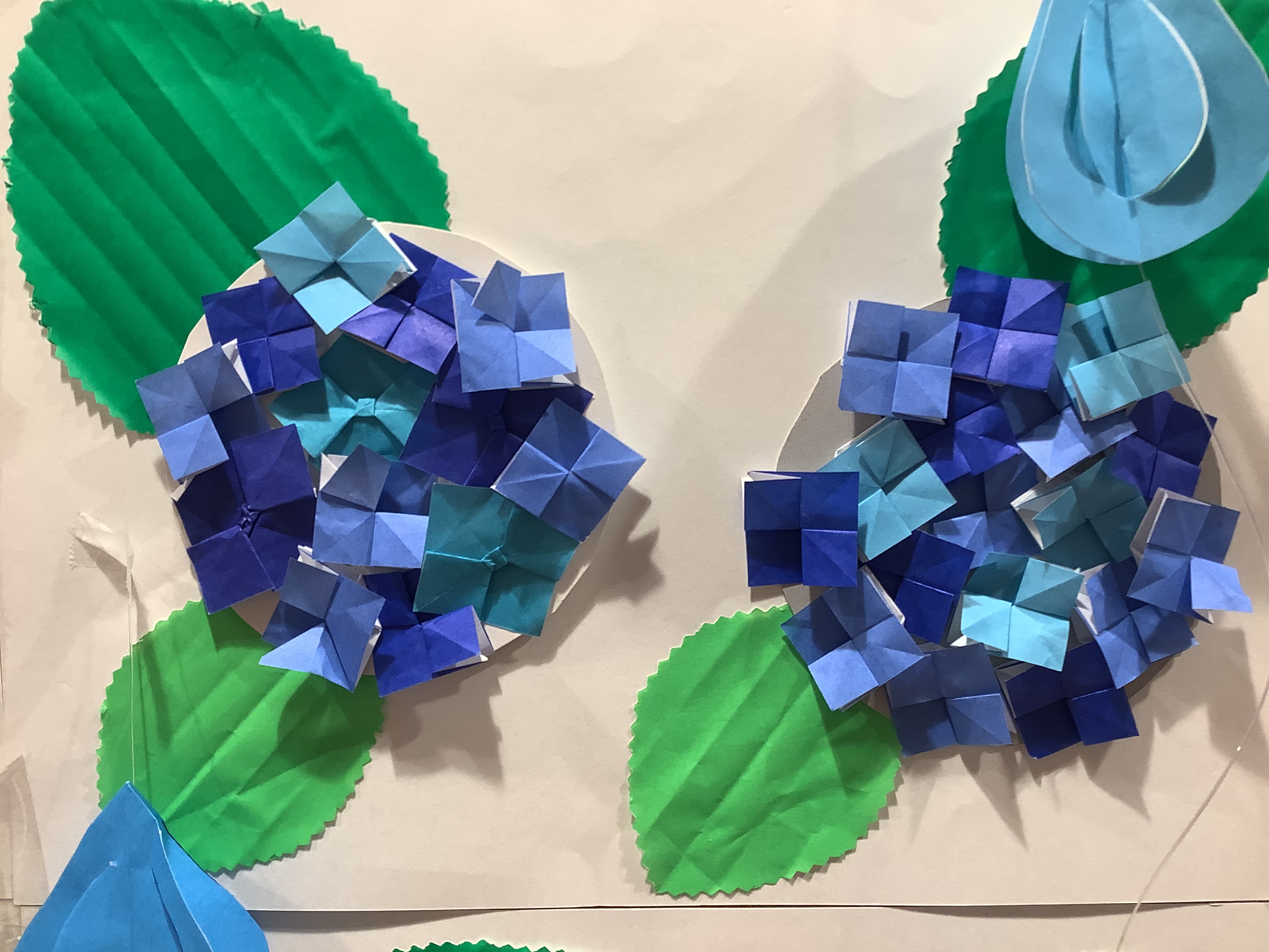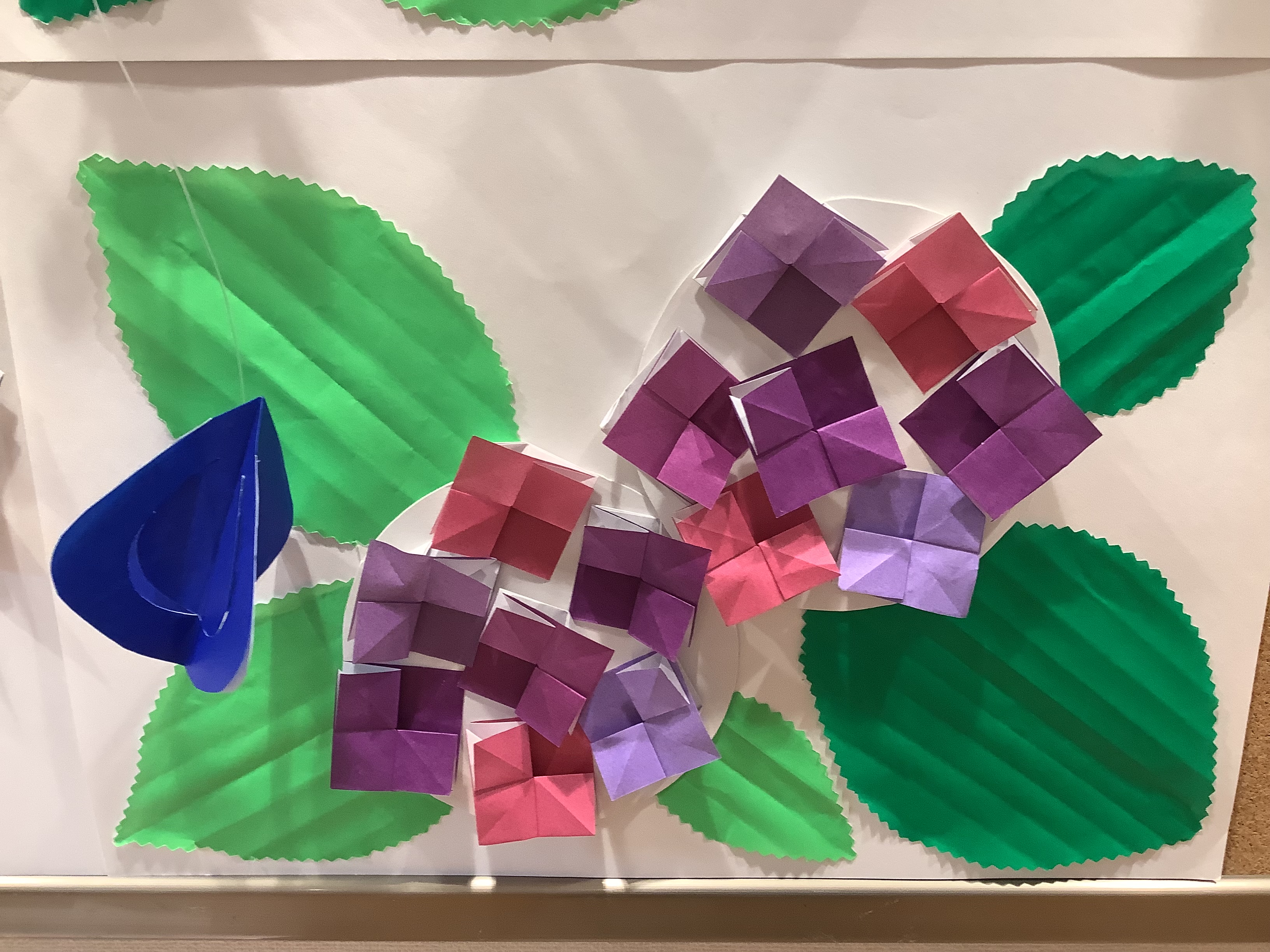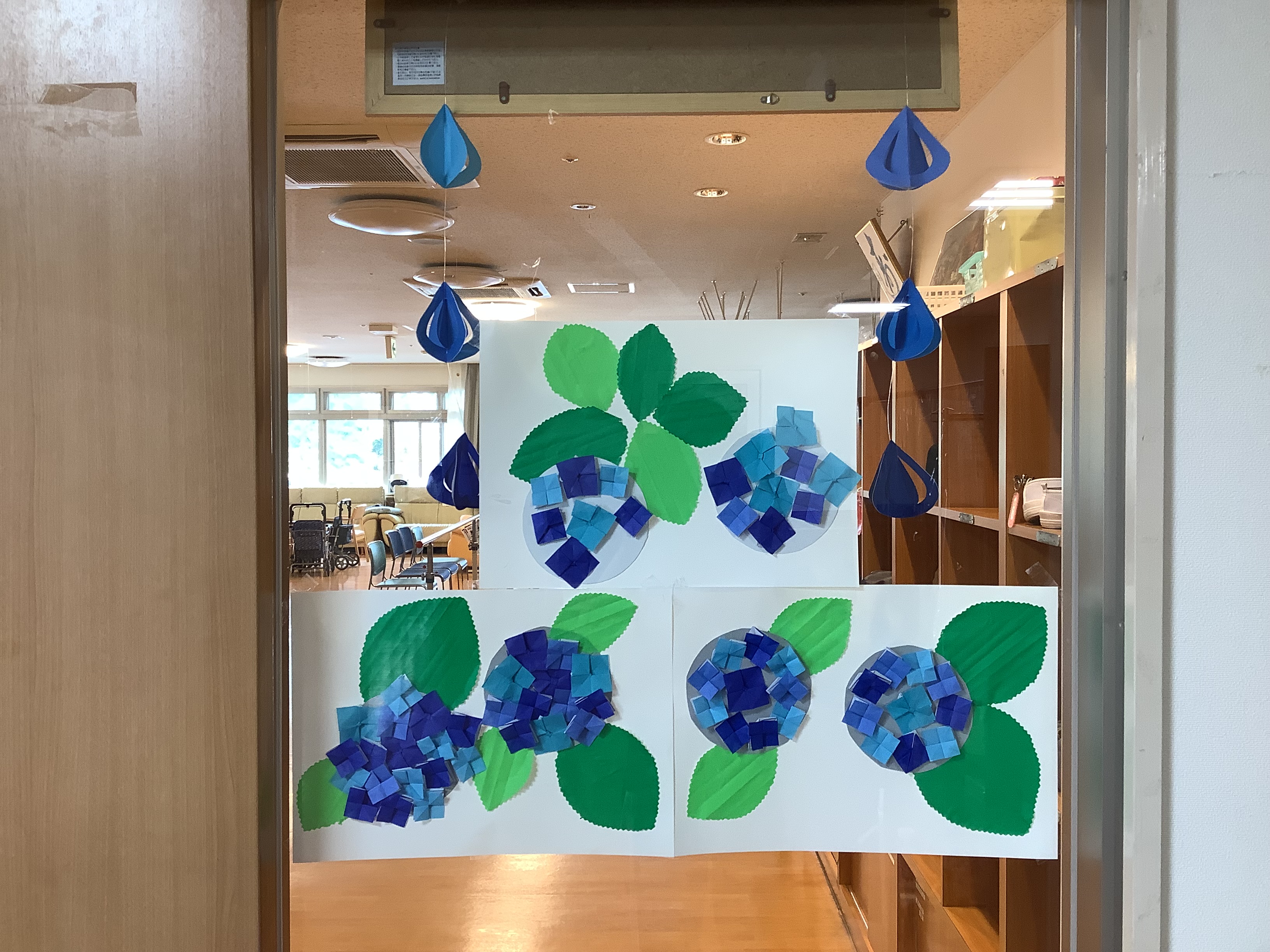 雨の日が多くなってきましたね(´・ω・`) そんな雨も楽しめる様に利用者様と紫陽花の飾りを作りました(^^♪ 色とりどりの折り紙で沢山の可愛いお花が出来ました( *´艸`) デイサービス内と入口に飾ってあります♪