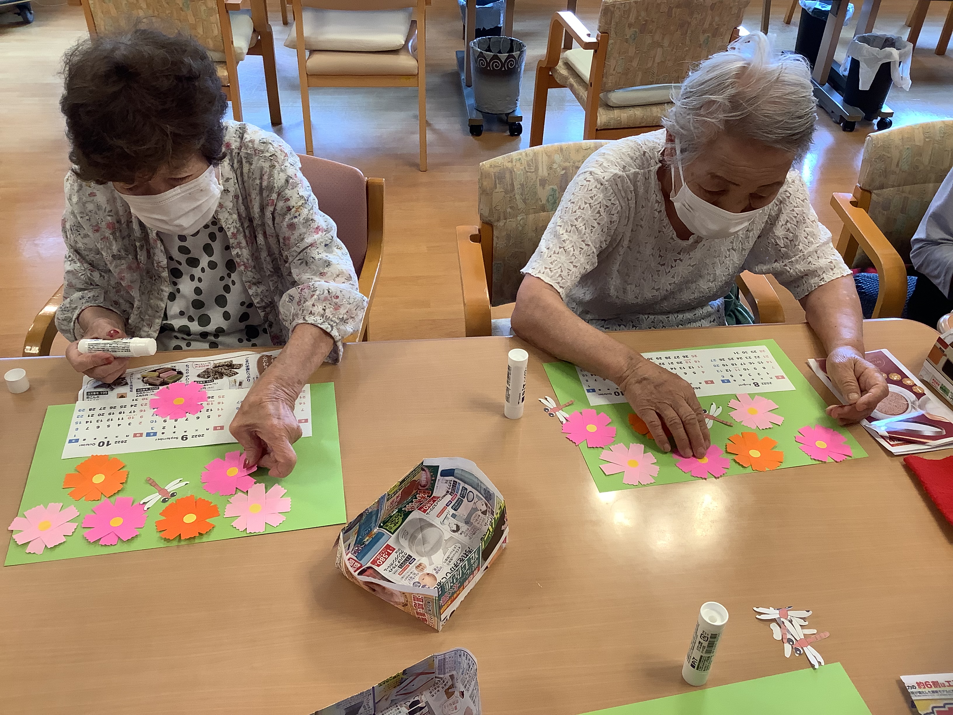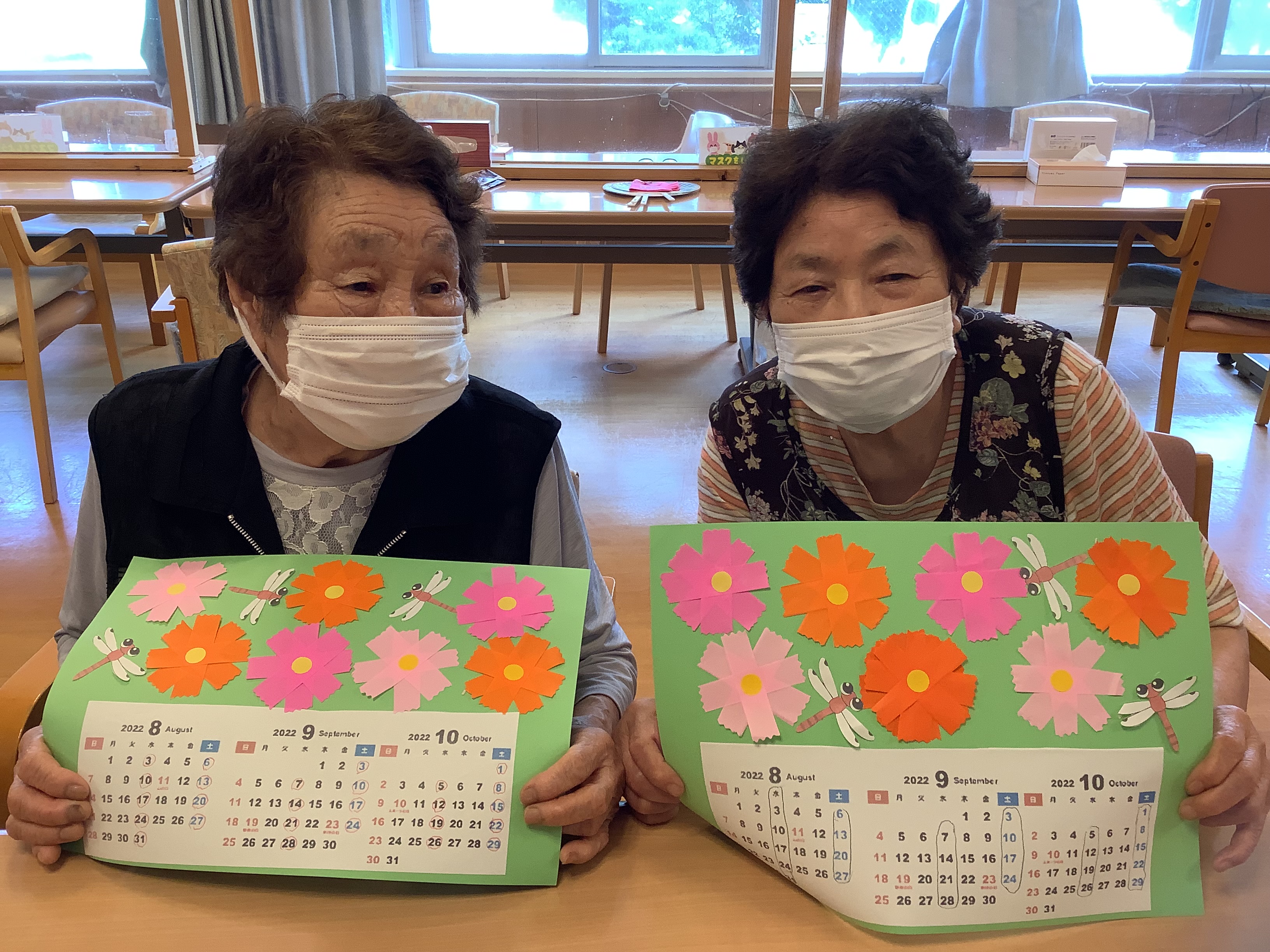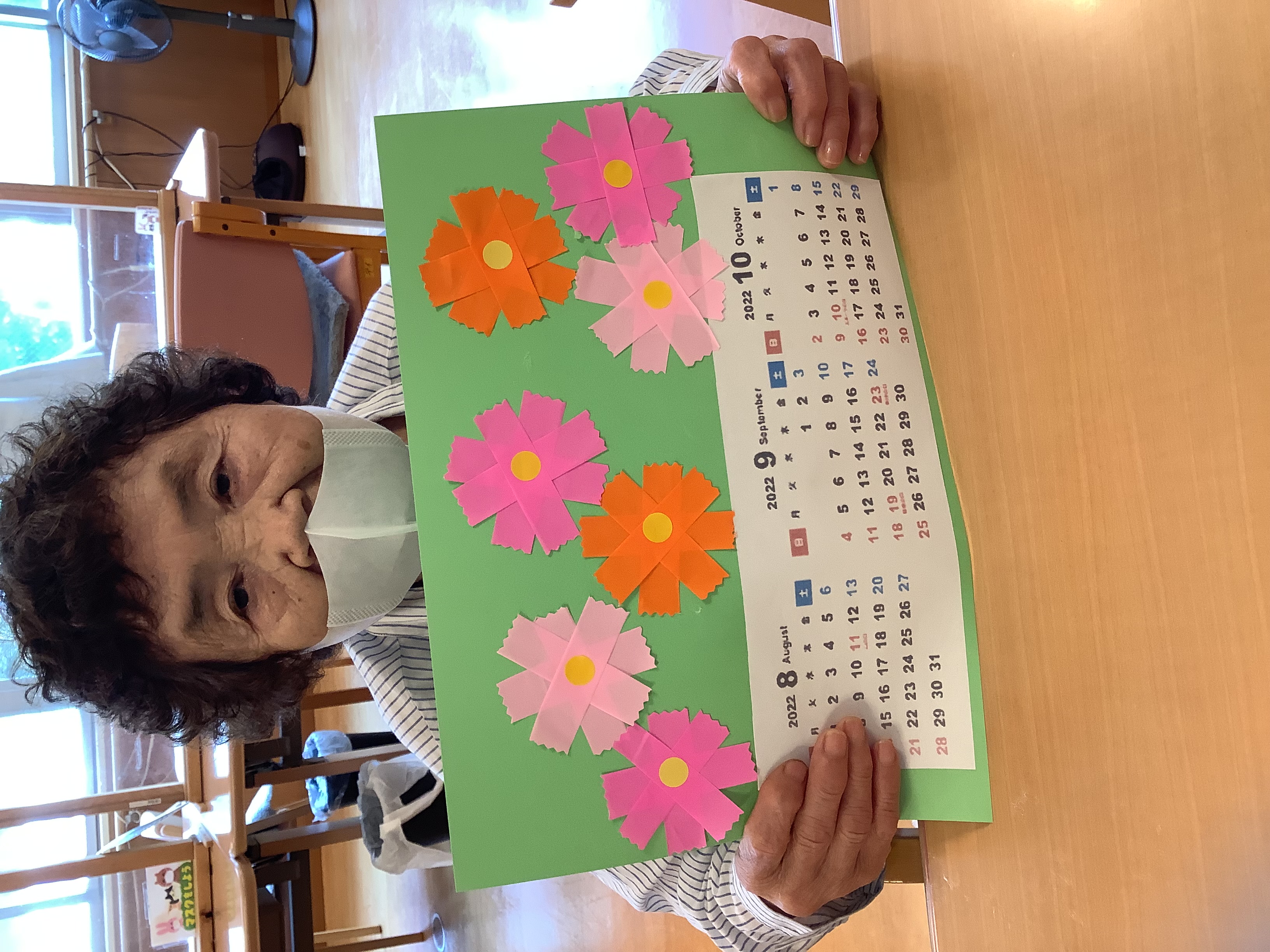 8月、9月、10月のカレンダー作りを行いました(*'▽')コスモスの花は利用者様方が折り紙で作ったものです♪皆様、一生懸命に作りました!(^^)!
