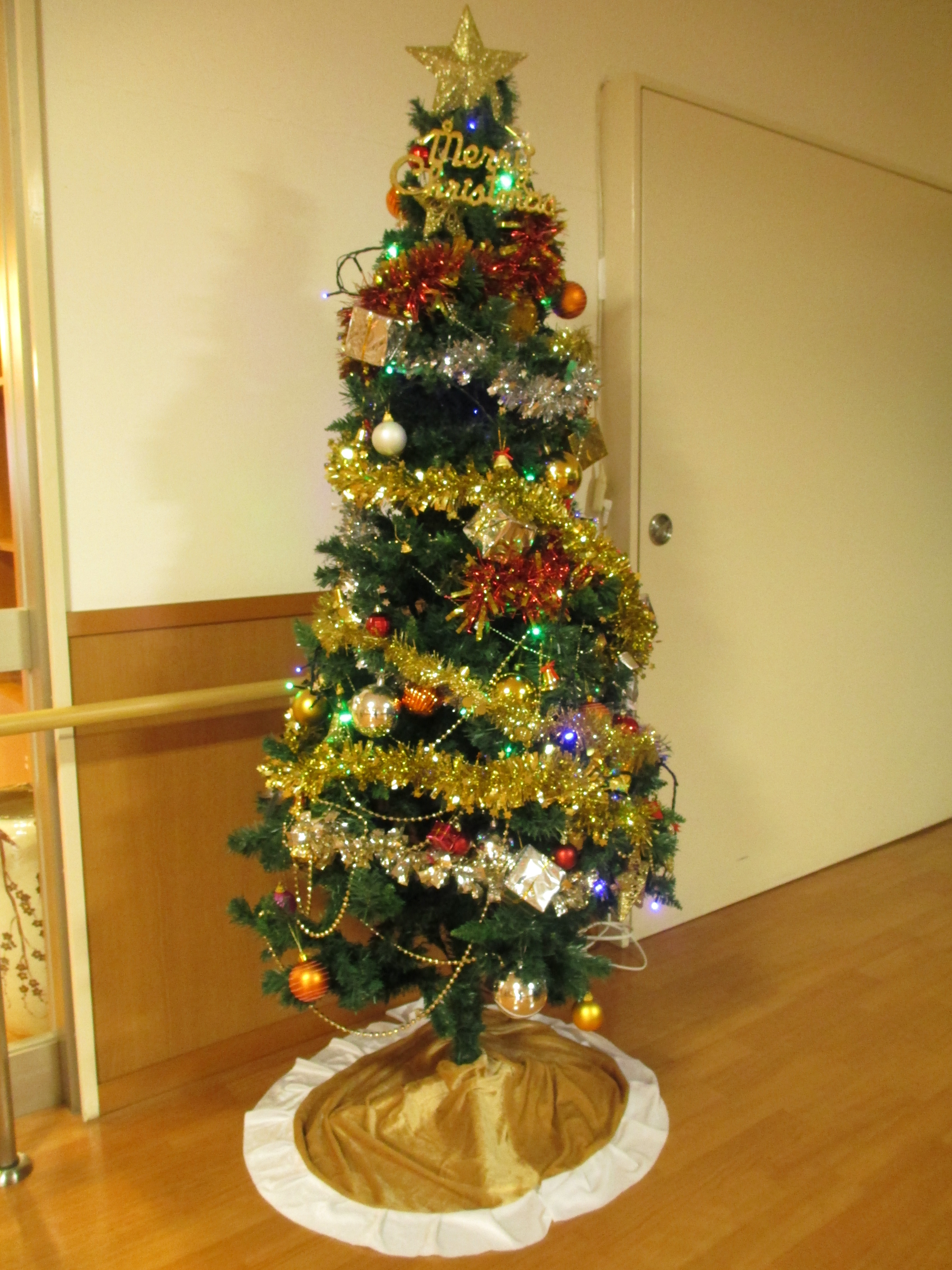 クリスマスまであと1か月です☆デイサービスもクリスマス仕様になりました。利用者様に飾り付けして頂いたツリーも完成しましたヾ(≧▽≦)ノ
