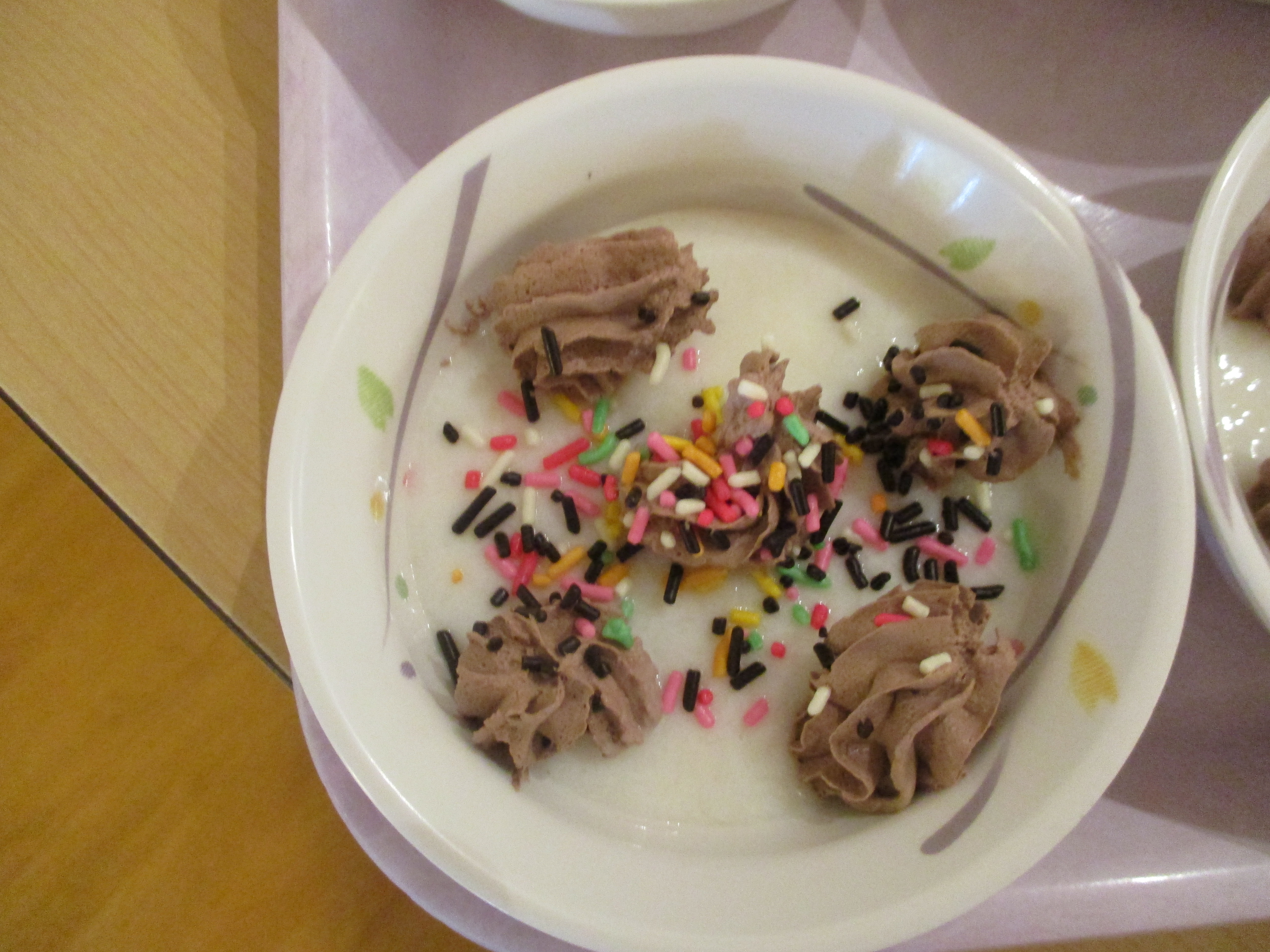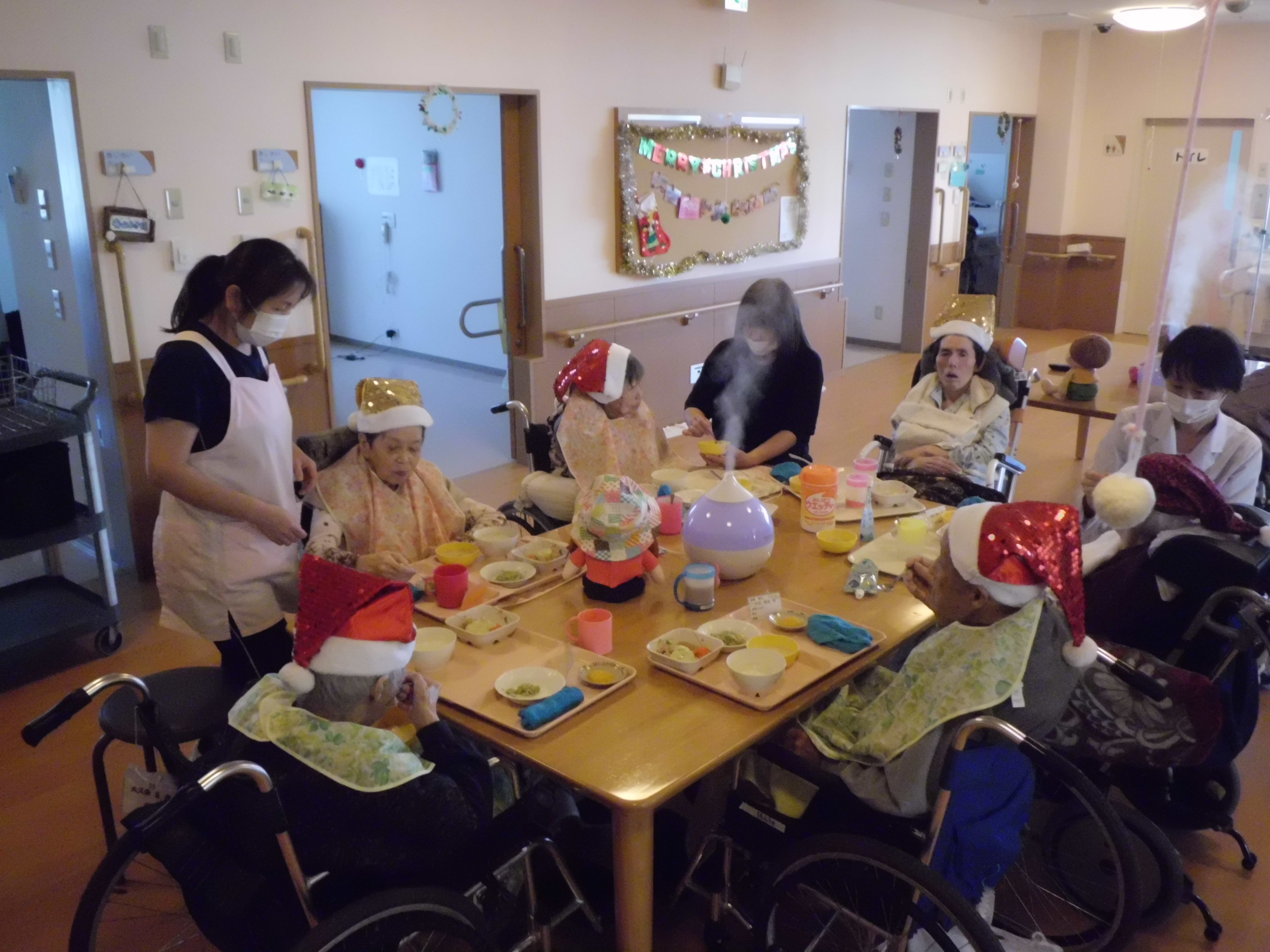 クリスマス会を行いました。昼食は職員手作りのシチューやポトフを提供しました(*^▽^*)おやつも職員がトッピングをして提供するなどみなさん喜ばれていましたヾ(≧▽≦)ノ