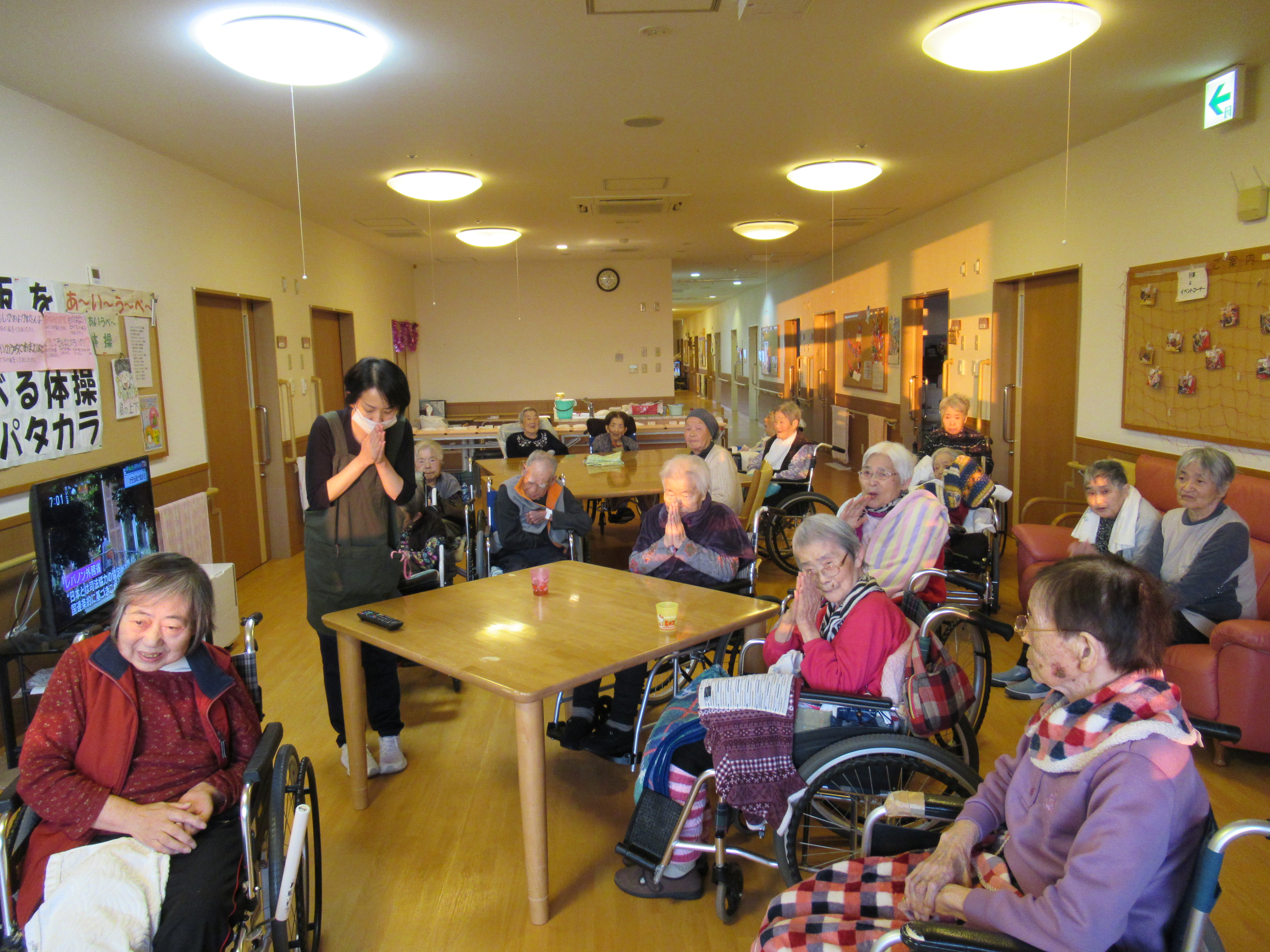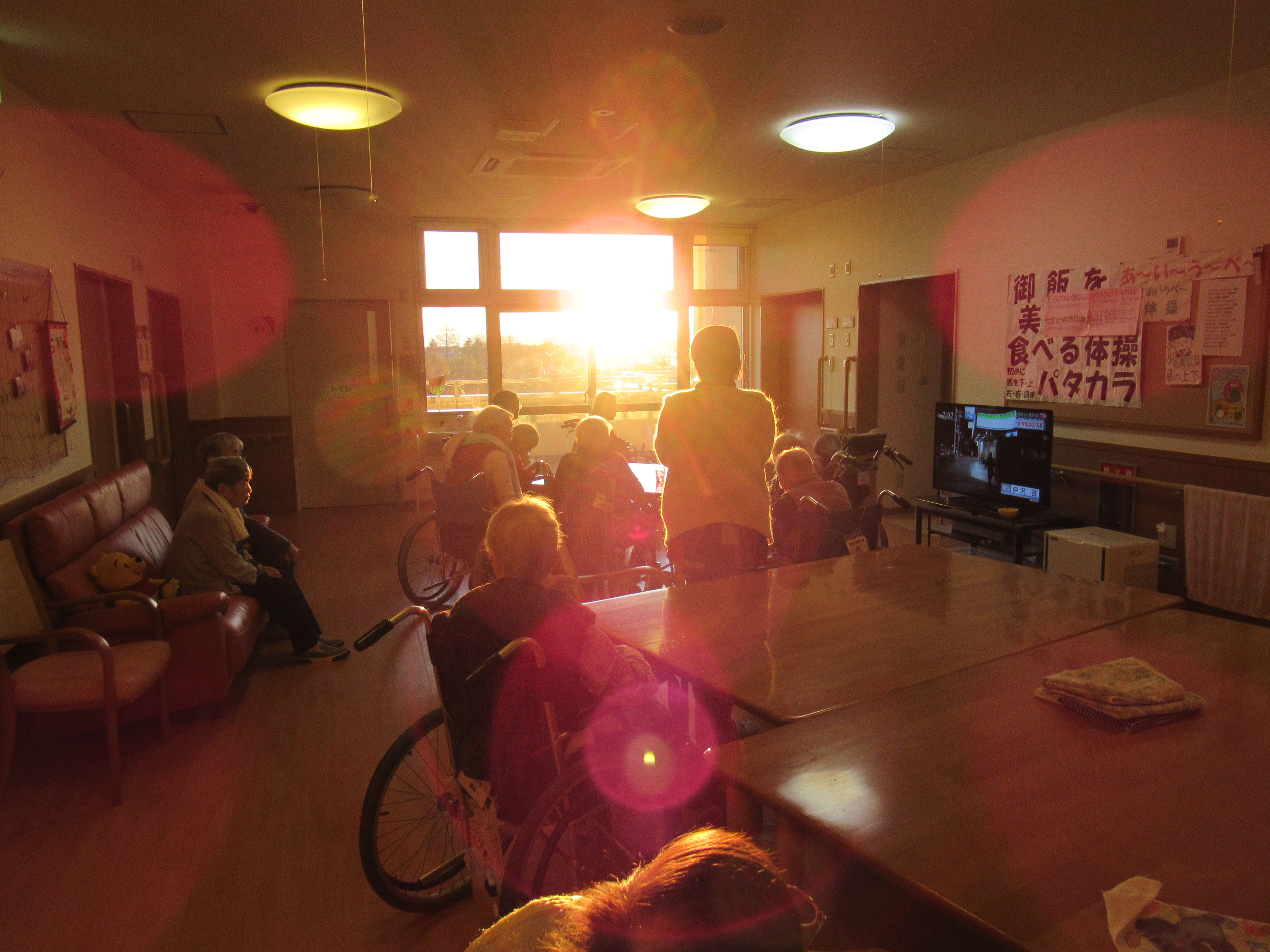 遅くなりましたが、今年も利用者様と元旦に初日の出を見ました。花ぞのは少し高台になっているので日の出を見るのに最高です!皆さん、太陽が上がってくると手を合わせ拝んでいました。