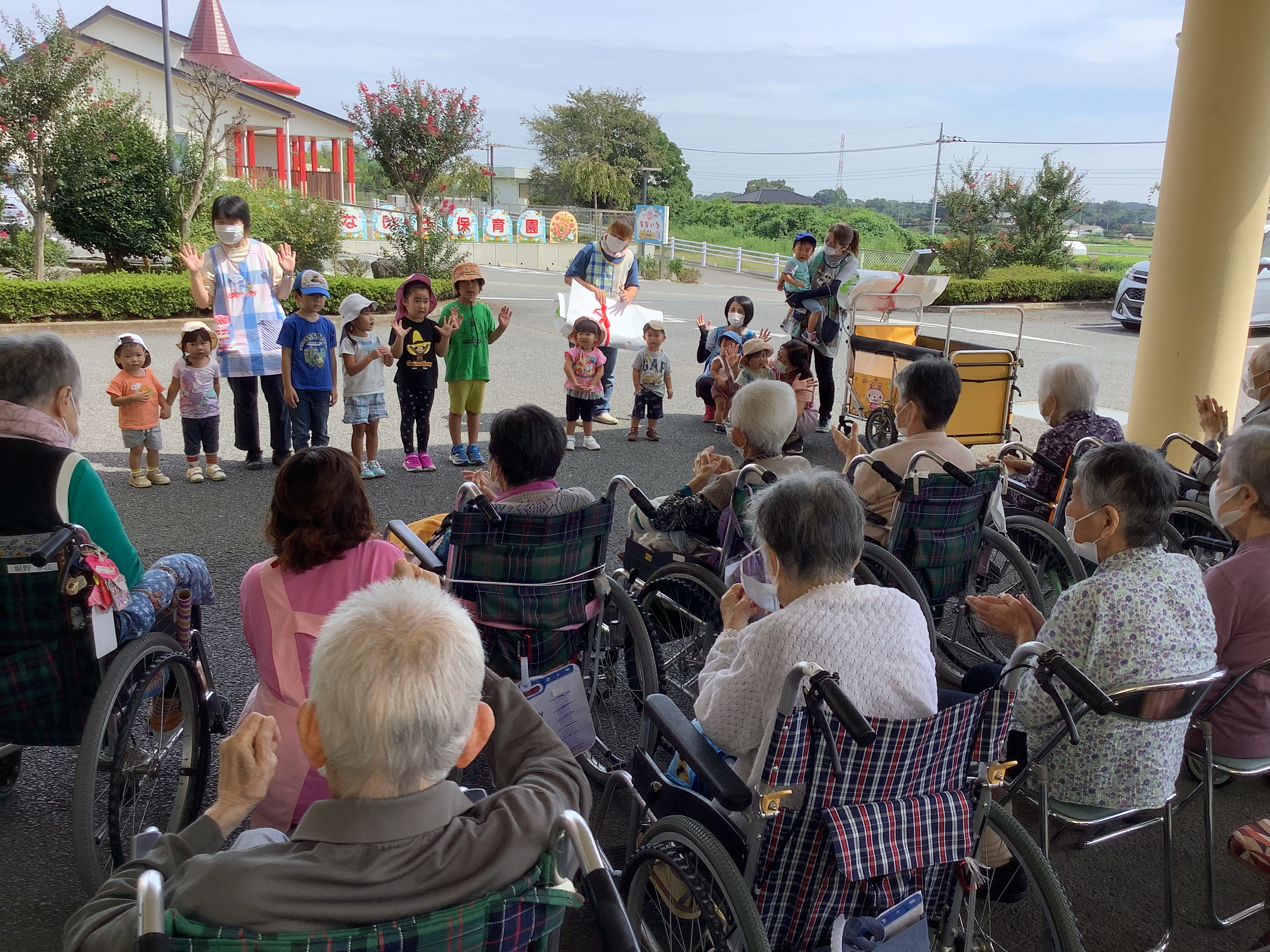 敬老の日を迎えるにあたりなないろの園児たちからご利用者様へかわいいプレゼントが贈られてきました(^^♪ 子どもたちの笑顔に皆さん癒されて、楽しいひと時を過ごすことができました☆彡