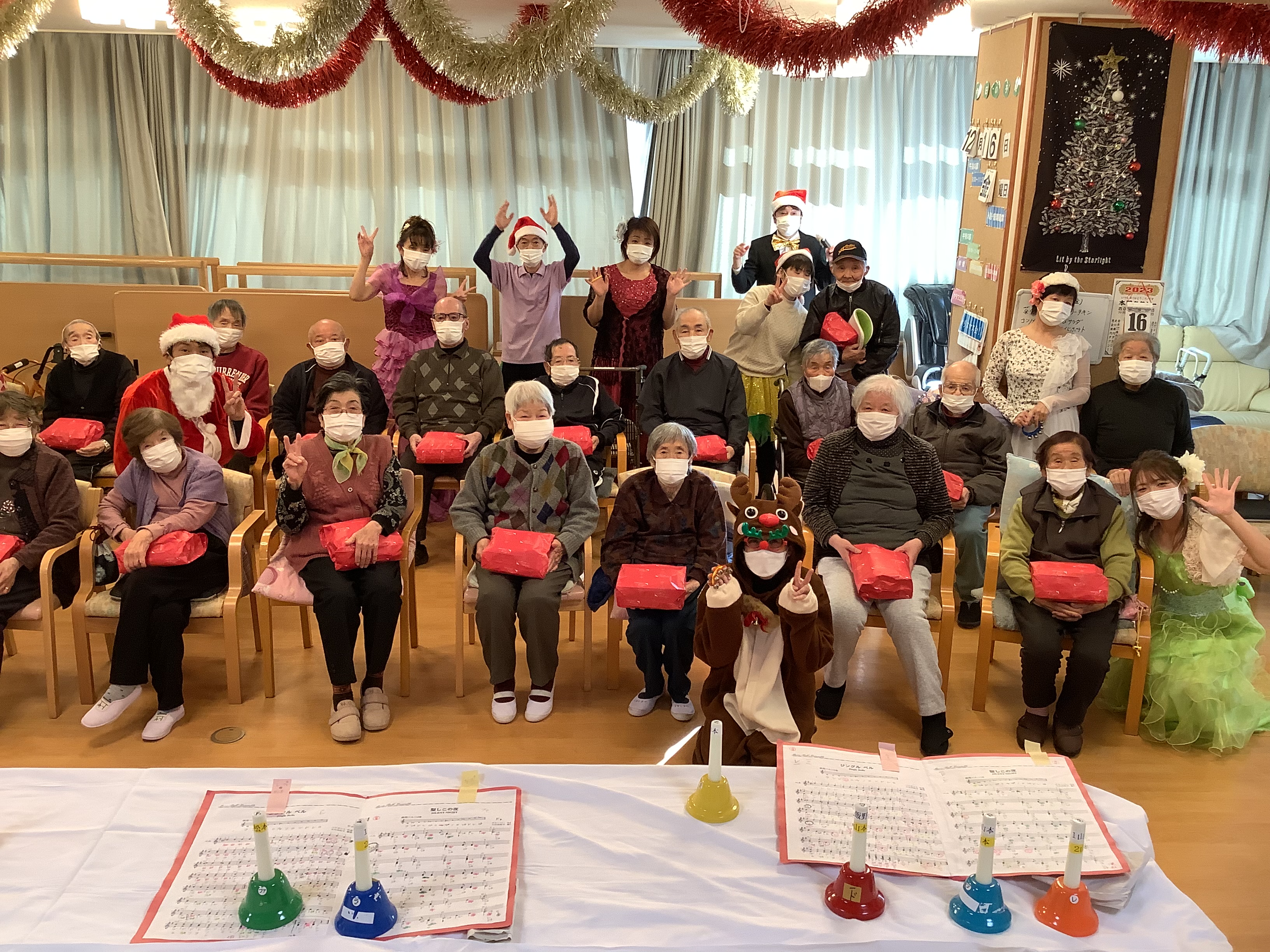 12/16にデイサービスのクリスマス会を行いました(^^♪職員の出し物ではマジックショーやハンドベル、ダンスをご覧いただきました!(^^)!サンタクロースからのプレゼントに皆様大変喜ばれていました☆
