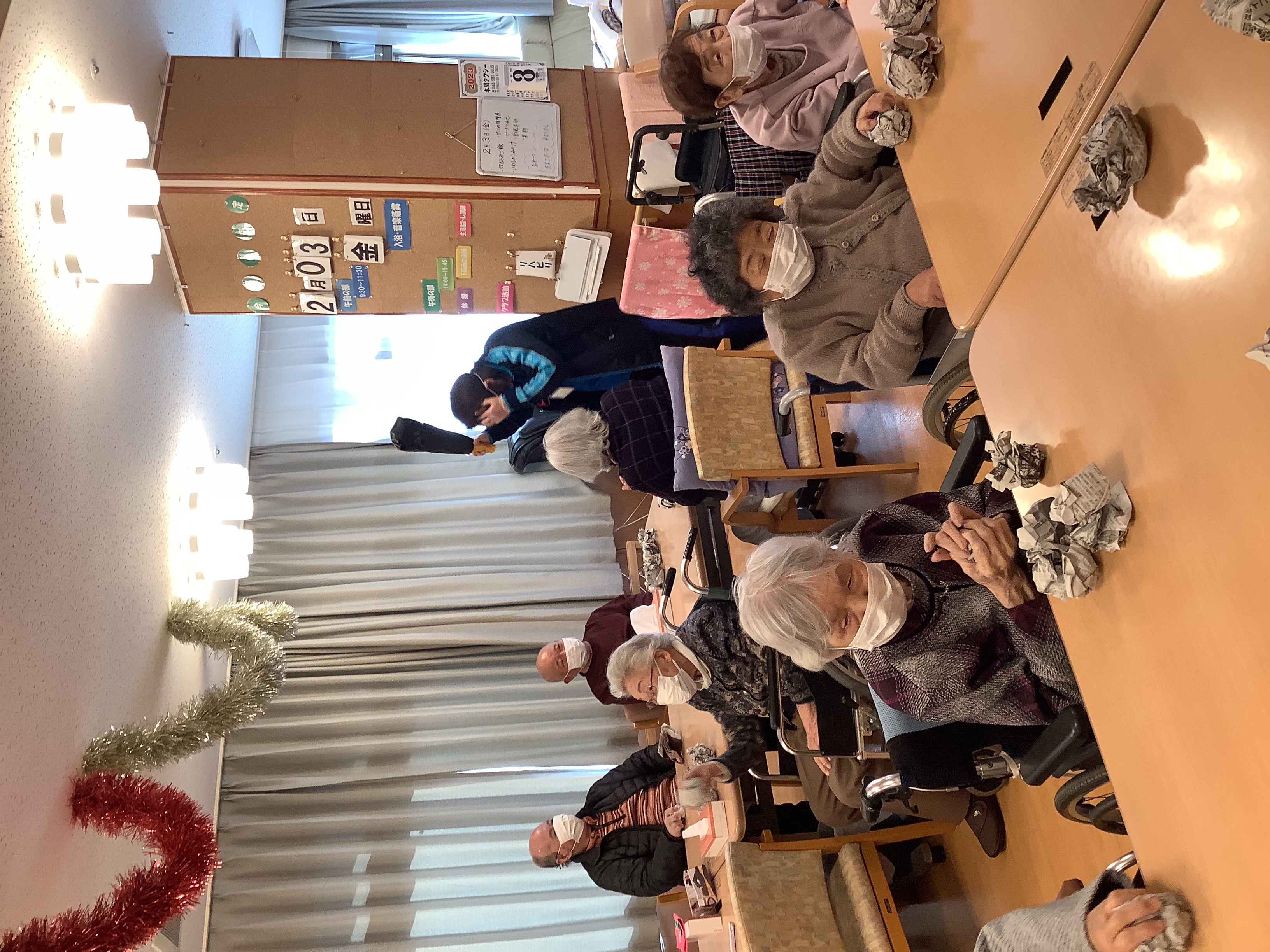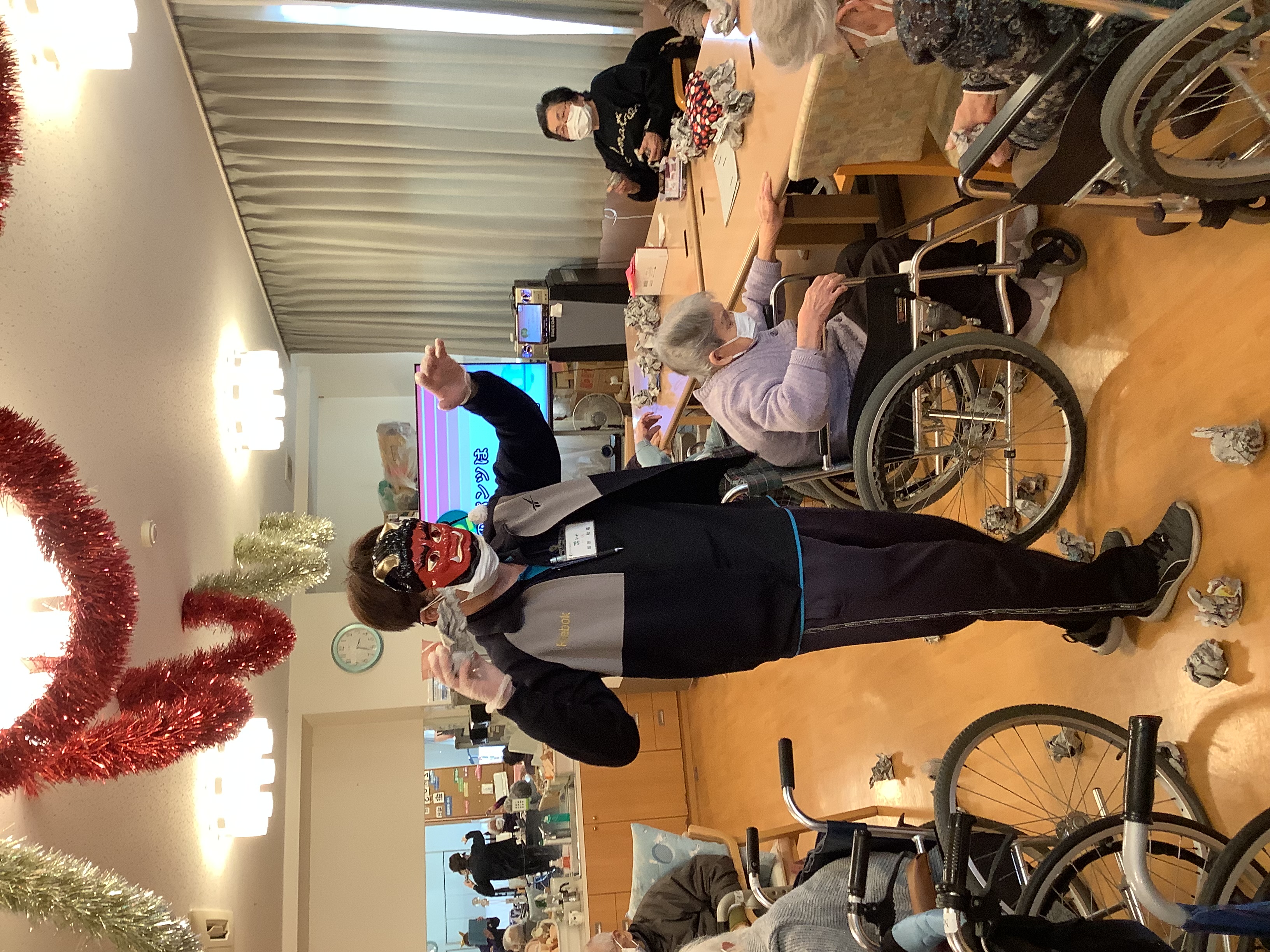 デイサービスでは2月3日に節分レクを行いました。新聞紙を丸め、豆にみたて職員扮する鬼に投げて頂きました。「鬼は外、福は内~」「デイサービスに福が来るように~」と元気な声が沢山聞かれ、盛り上がりました(^^)/