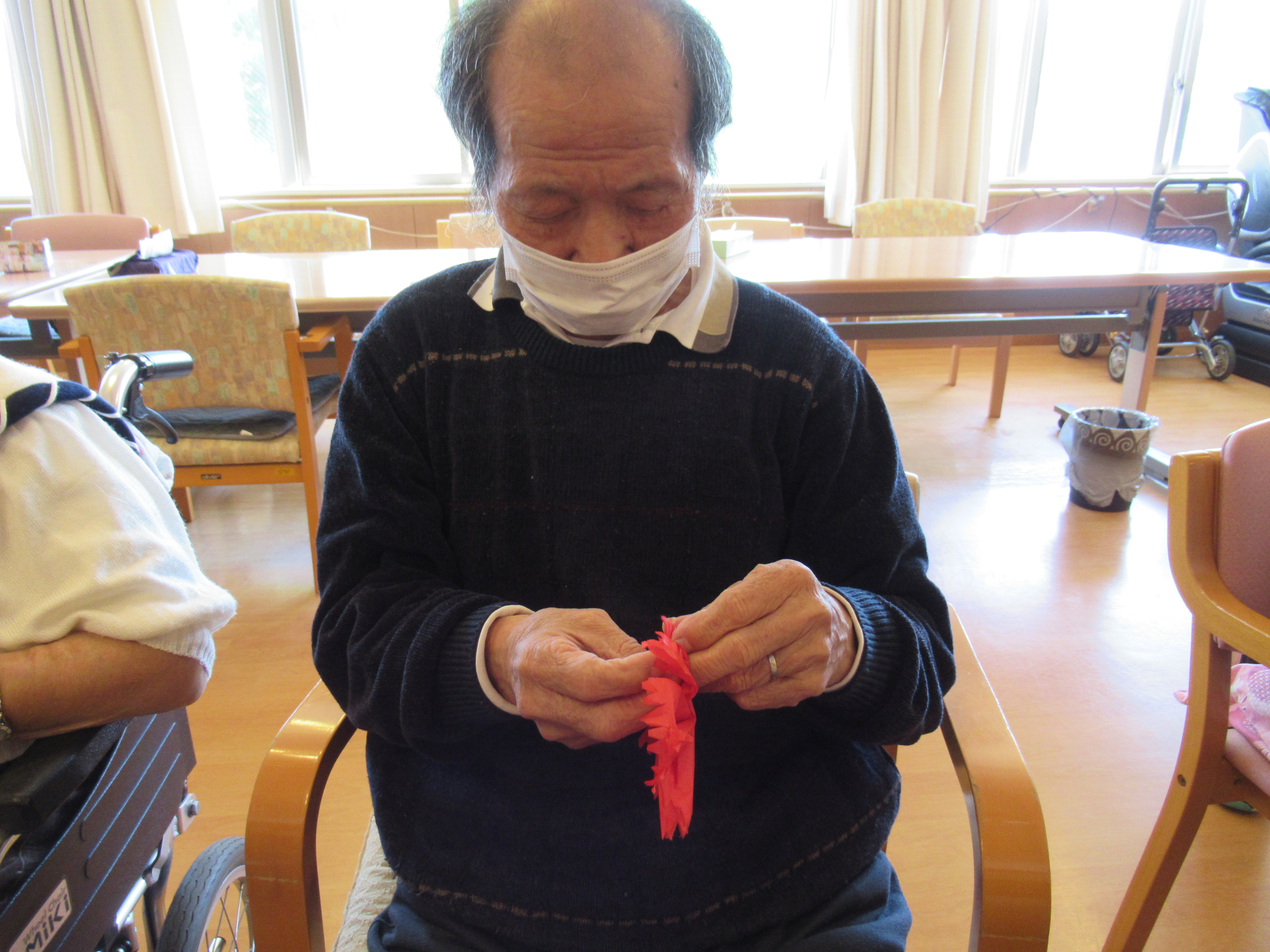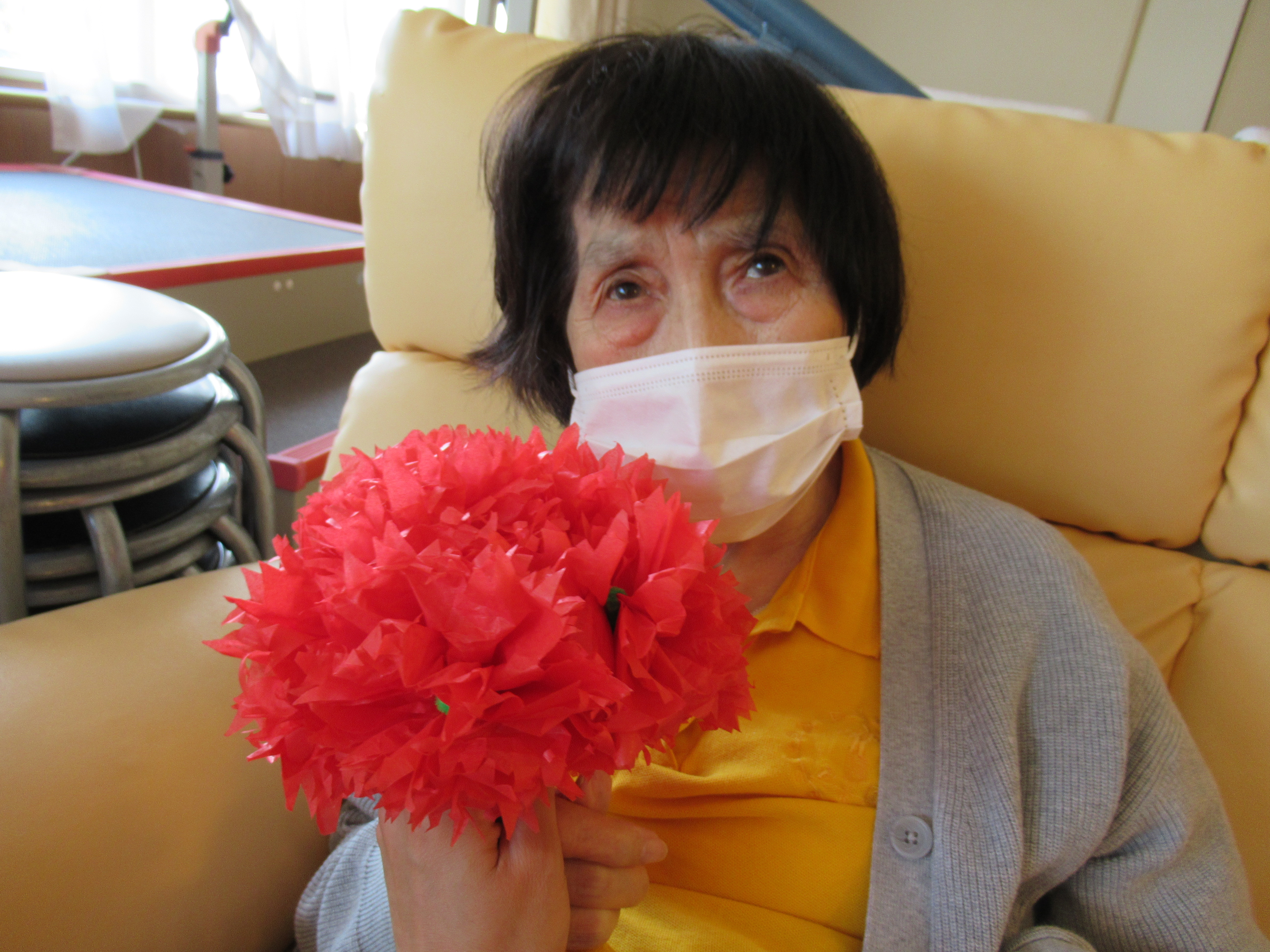 母の日のカーネーション作り第2弾は、お花紙とモールで作りました!(^^)! 皆様とっても器用に作られていました♪ 出来上がったカーネーションは感謝の気持ちを込めて✿1輪ずつプレゼントさせて頂きました(*^_^*)