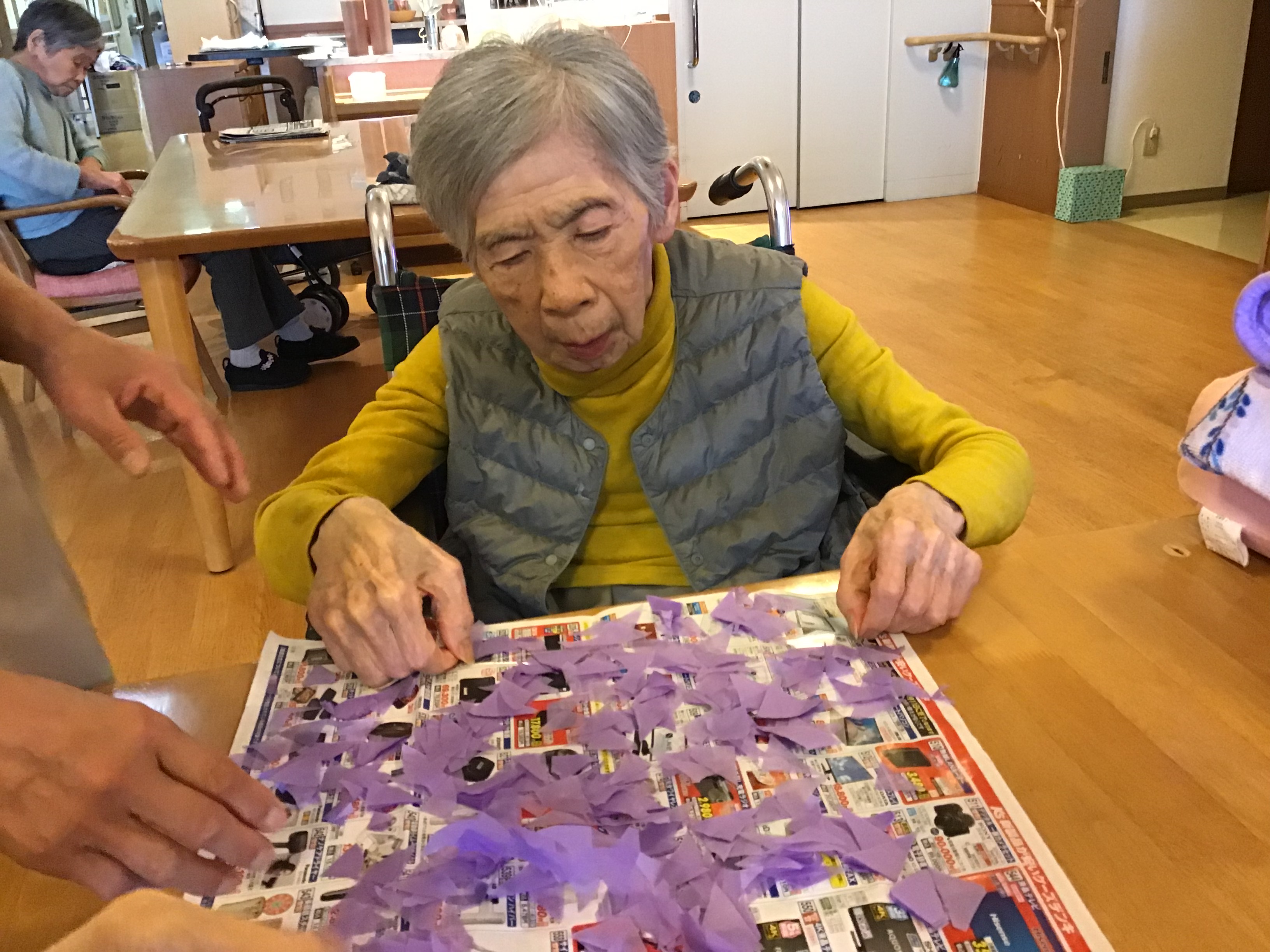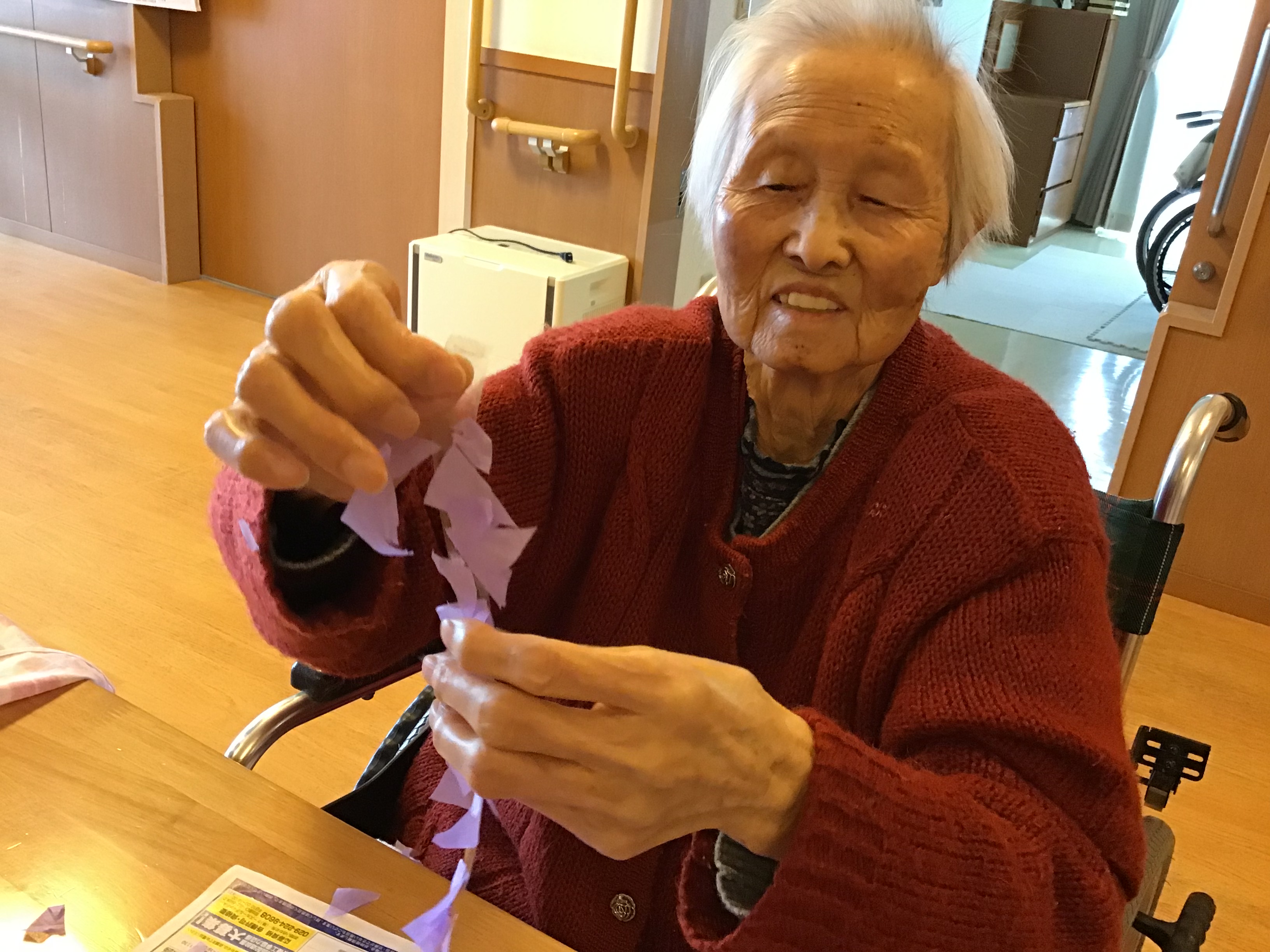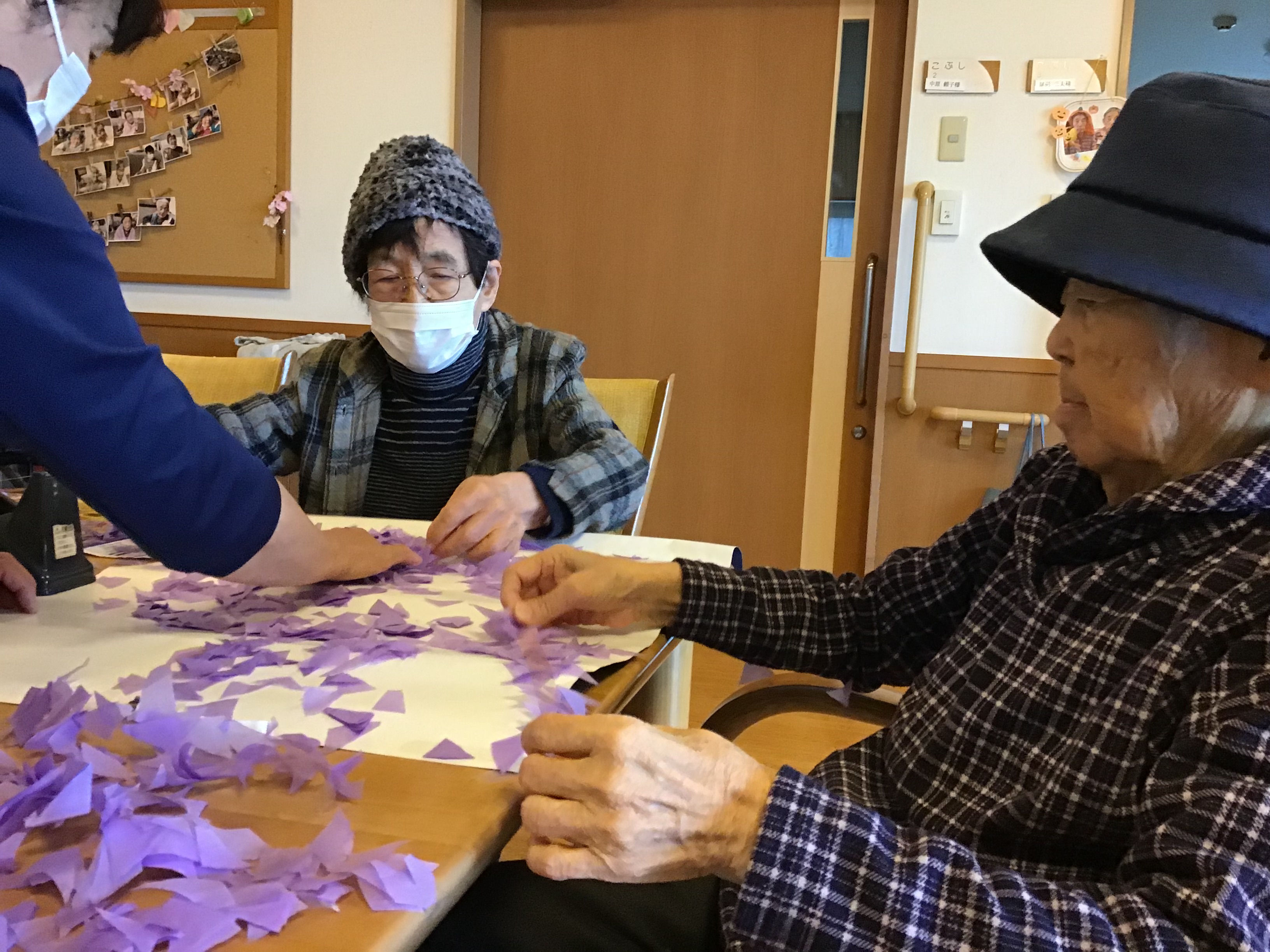 入居者の皆さんに手伝っていただき、綺麗な藤の花ができました。