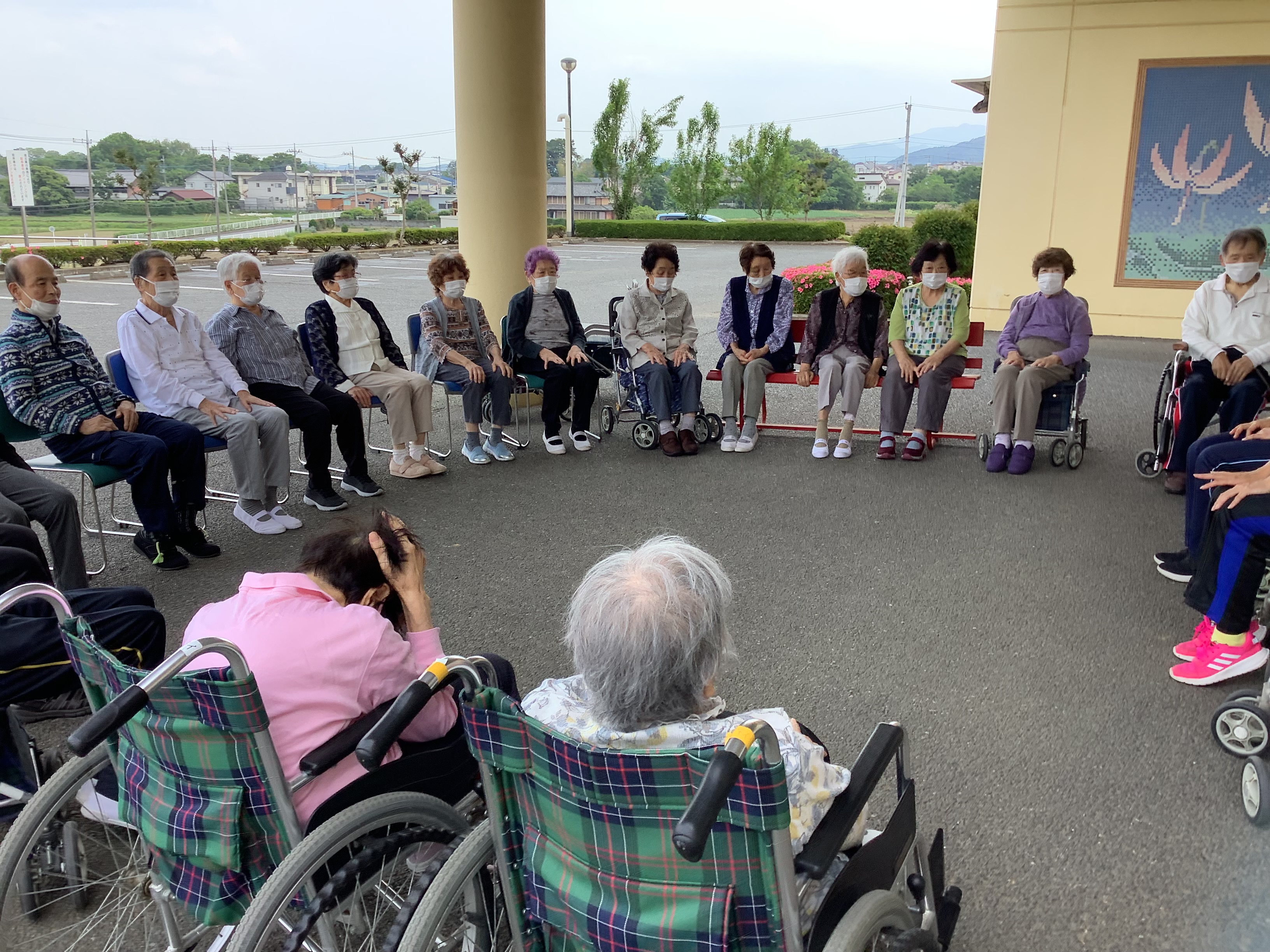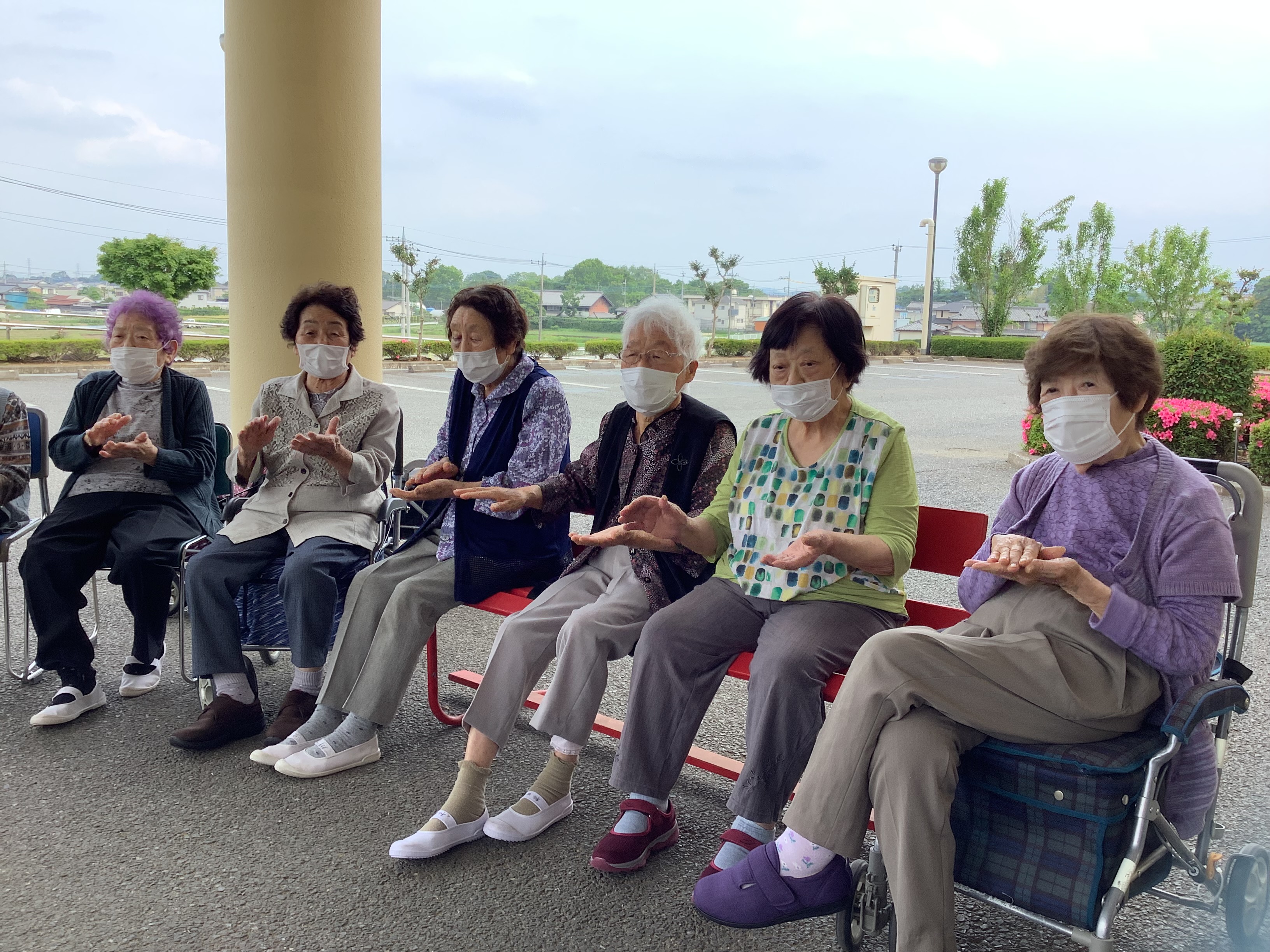 梅雨入りも間近ですが天気のいい日には毎日のように外に出て、外気浴を楽しみながら体操を行っています(^^)/ 梅雨が明けると一気に猛暑になるので、その前に沢山外の空気を楽しみましょう♪