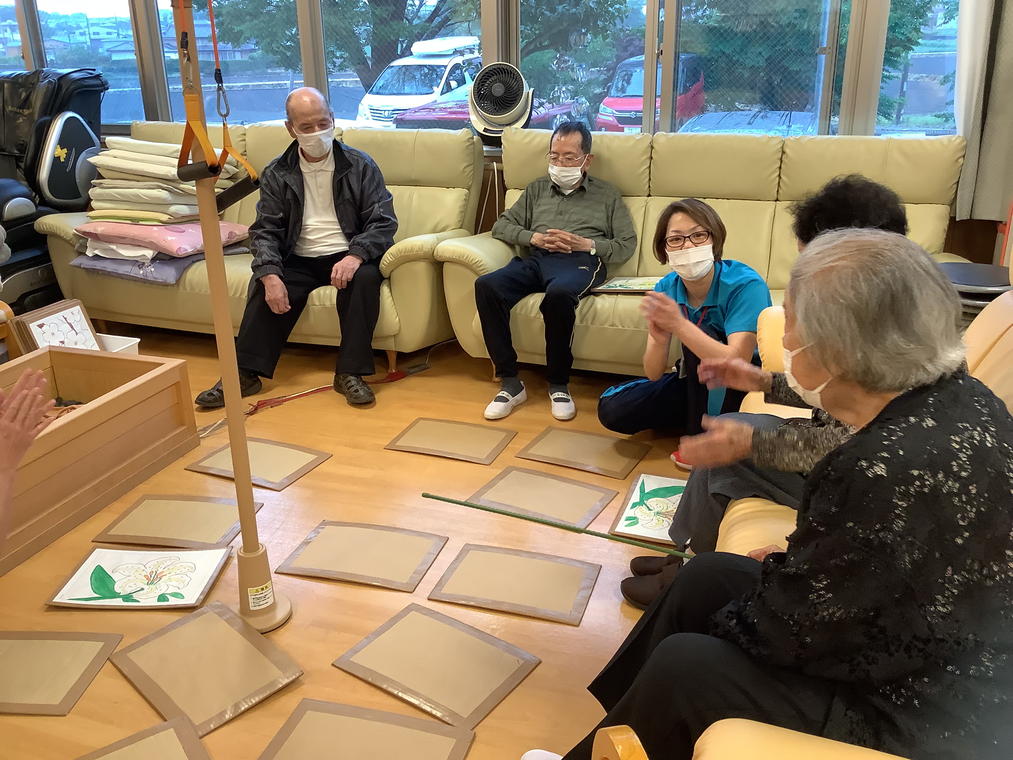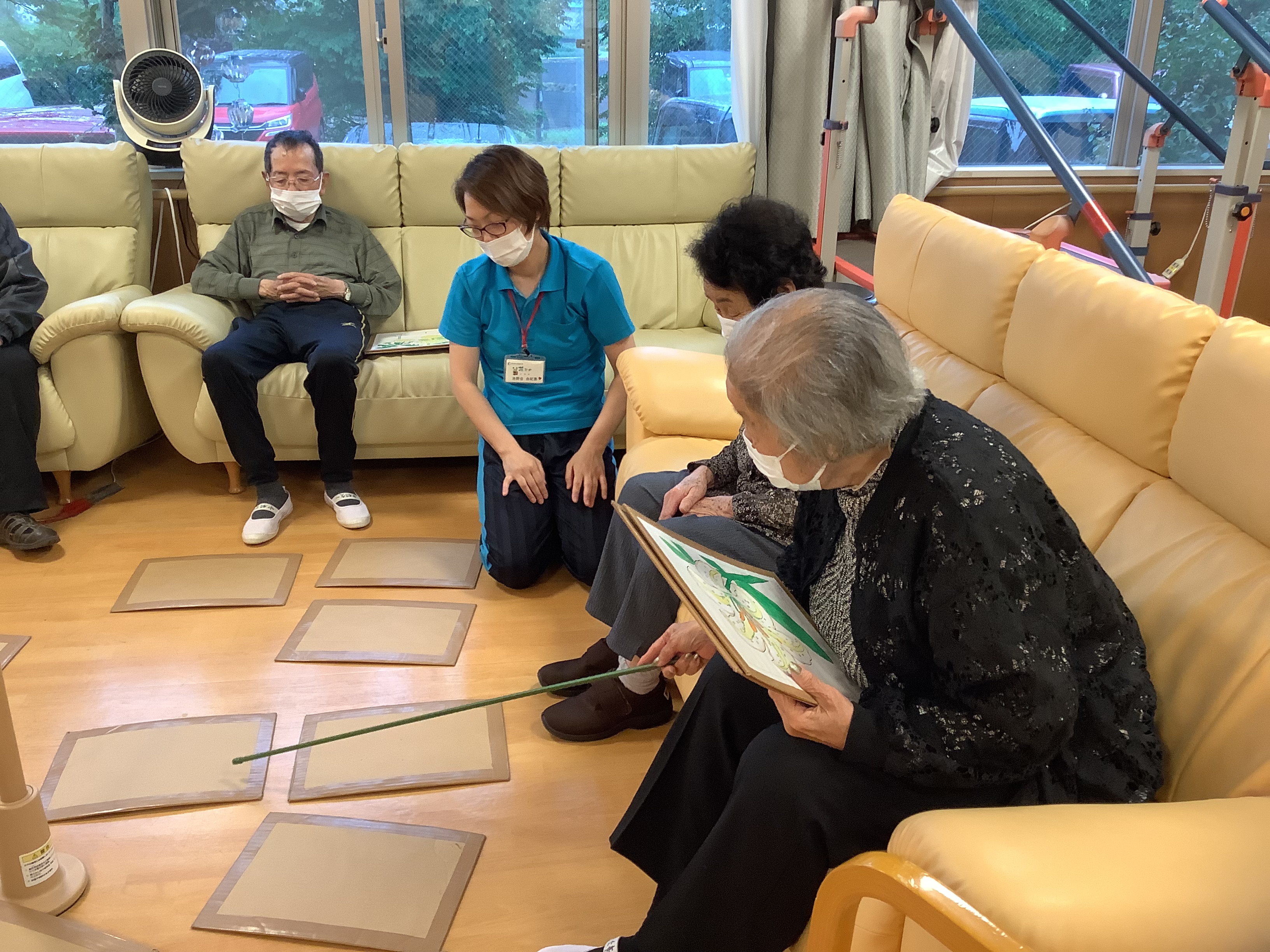 手作りのカードを使って絵合わせゲームを楽しまれています(*'▽')男性利用者様にも人気のゲームです( *´艸`)