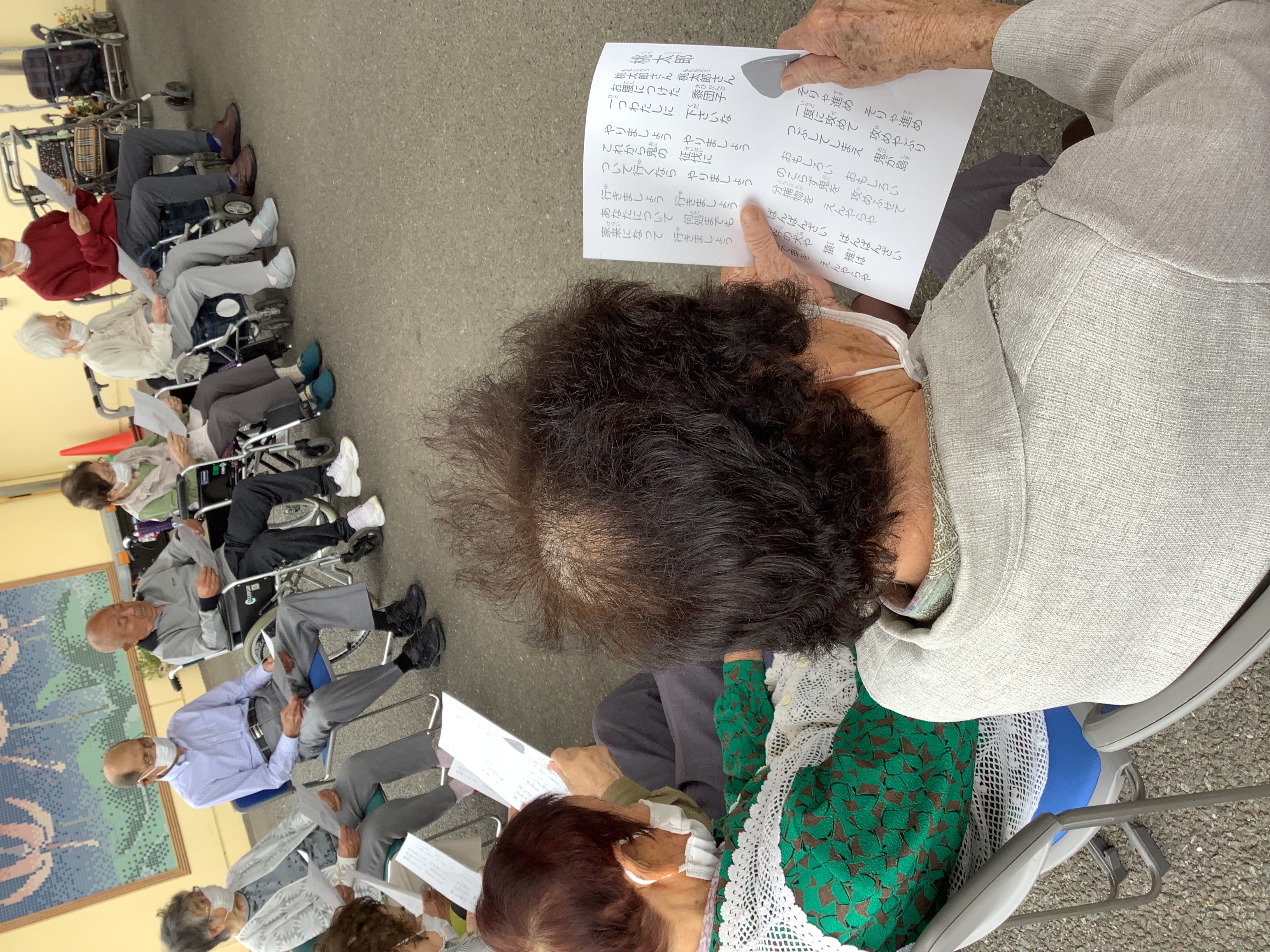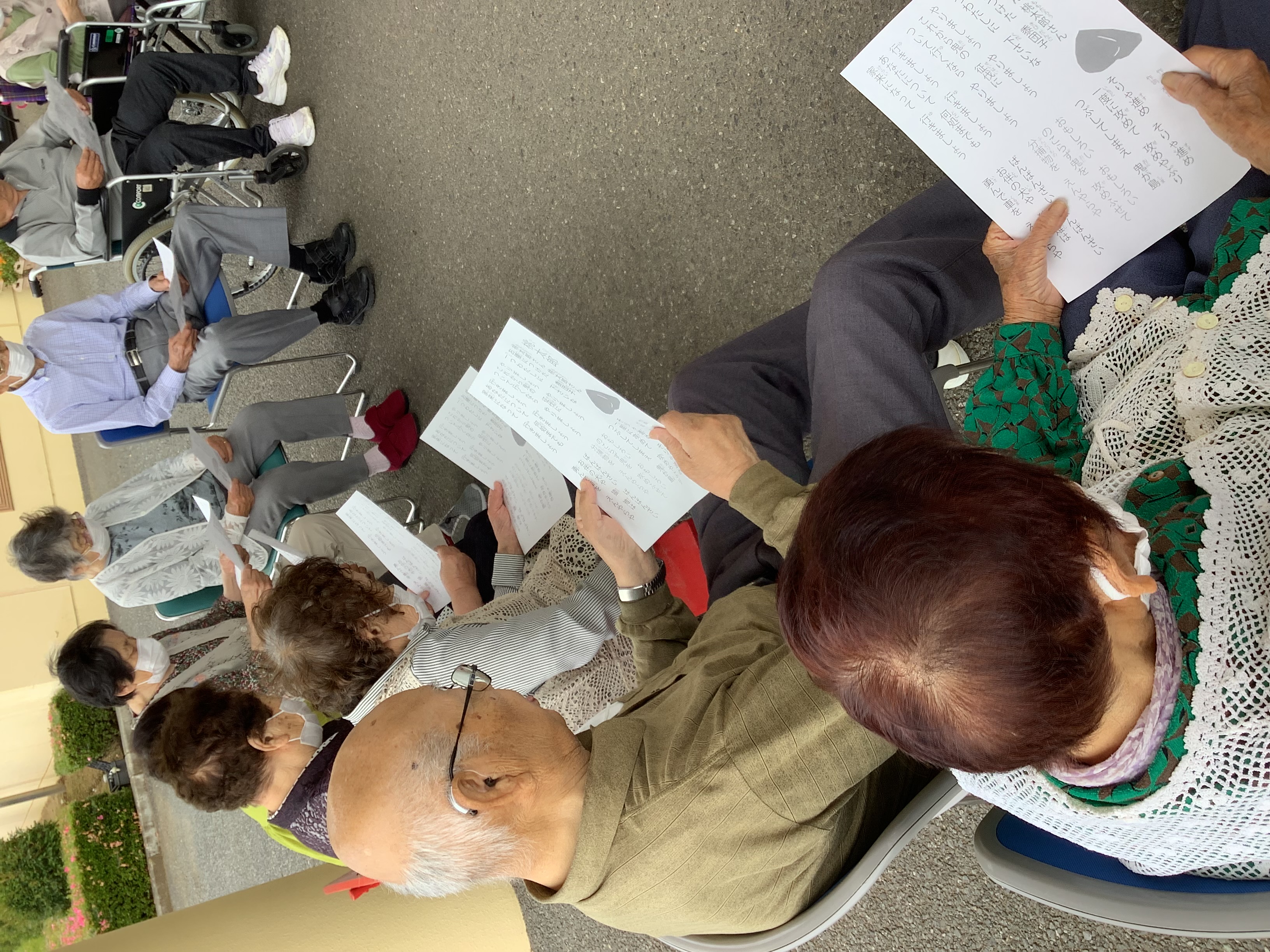 梅雨の合間の天気のいい日にはなるべく外に出れる時間を作っています(*'▽')皆様で色々な歌を合唱し楽しみました!(^^)!