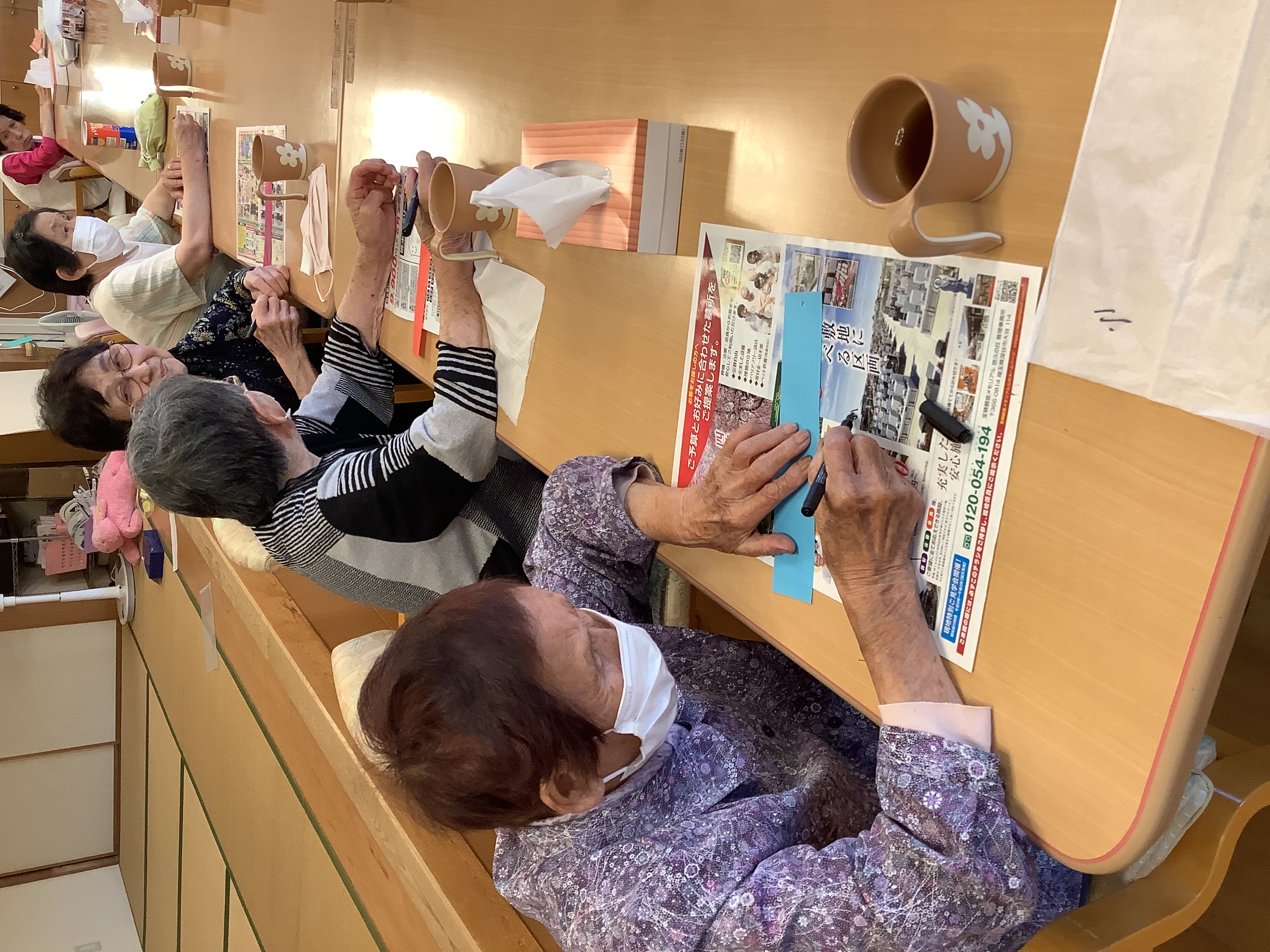 七夕に向けて短冊に願い事を書いて頂きました☆ 「家族や自分の健康」「平和への願い」「孫の成長」皆玉様々なお願い事を書かれていました☆