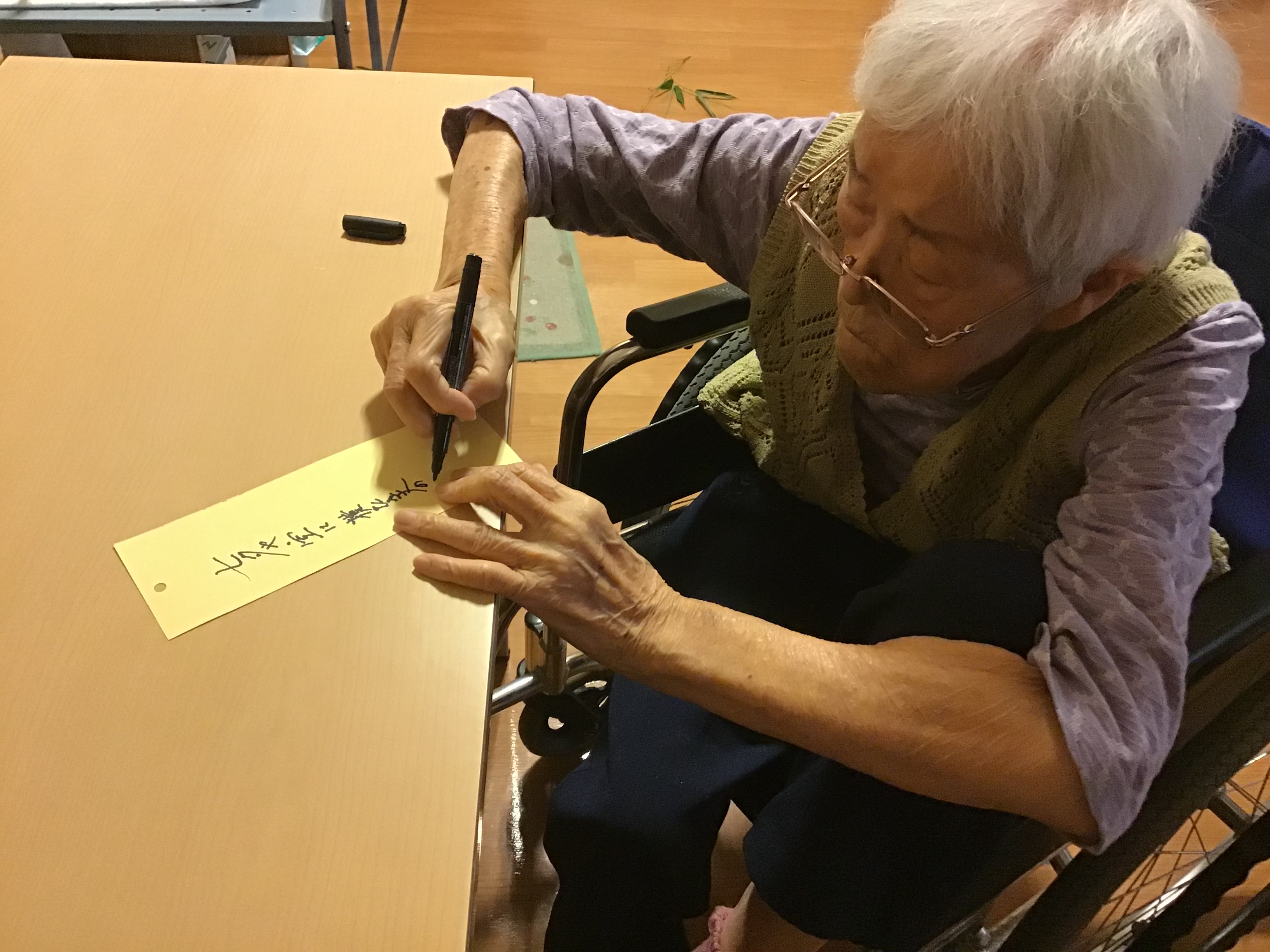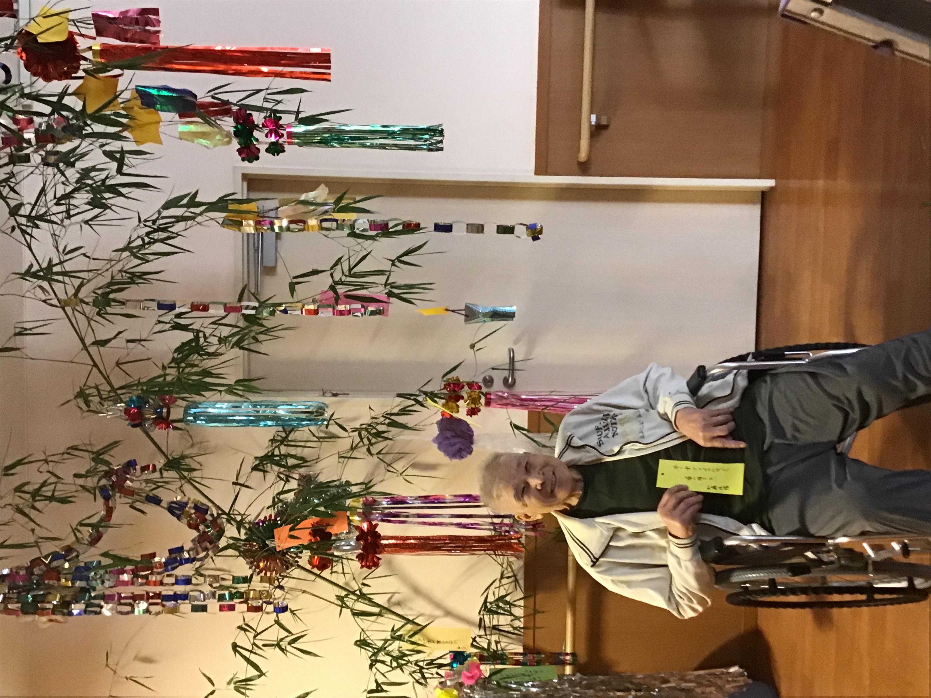 笹が届きみんなで願い事を書いて飾りました☆願いが叶いますように♡