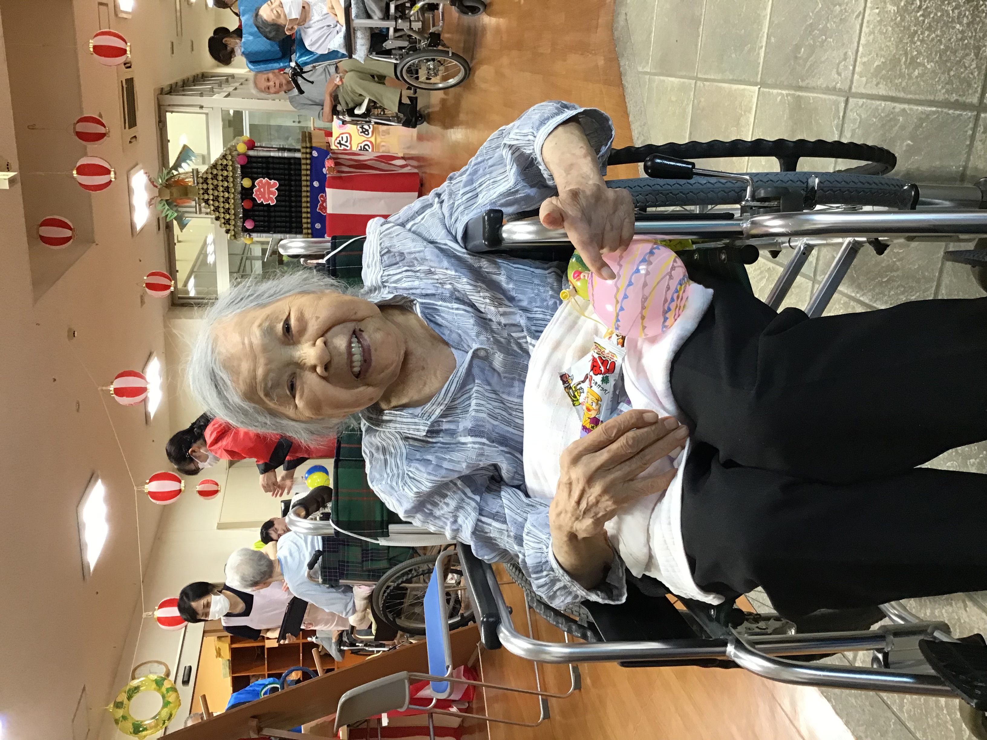 午後は1階にて屋台巡りとデイサービスやお隣なないろ保育園児とのお楽しみ時間!