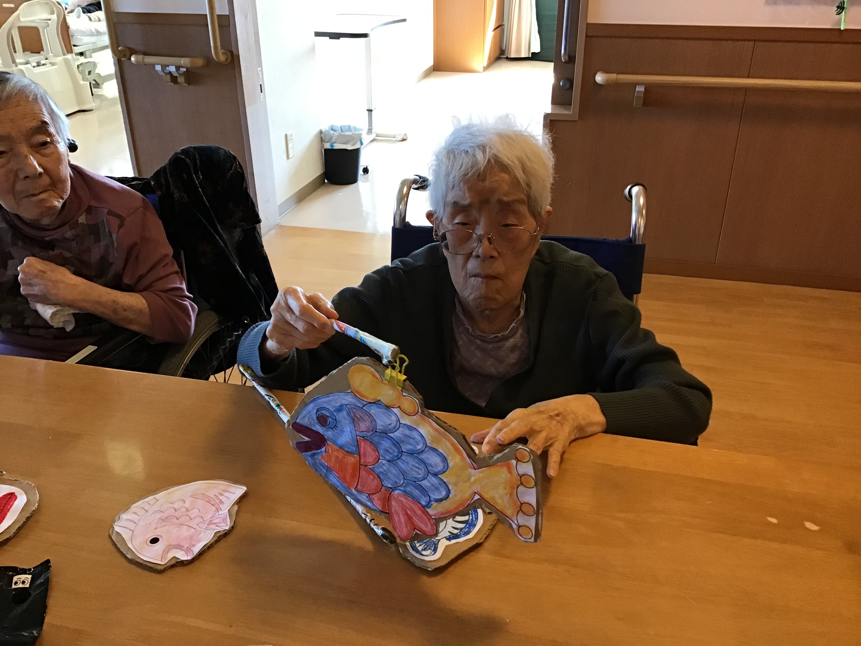 三階南ユニットレクで魚釣りを開催しました<゜)))彡