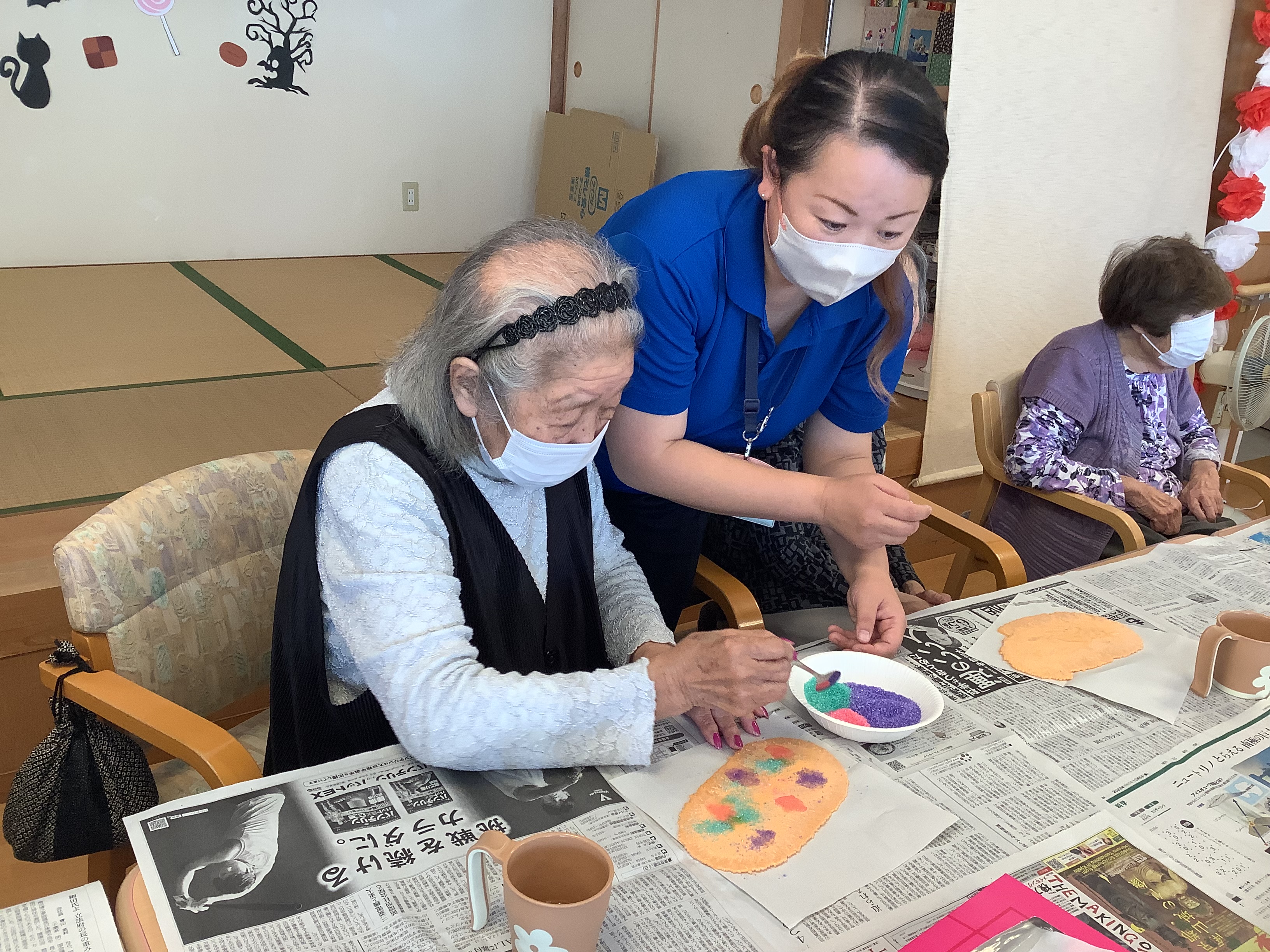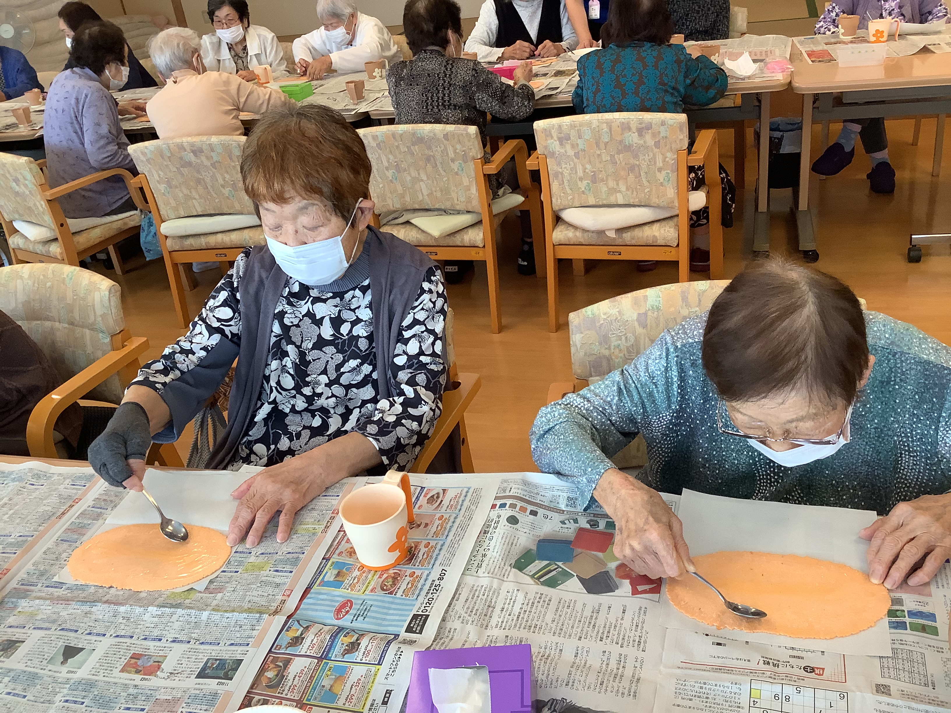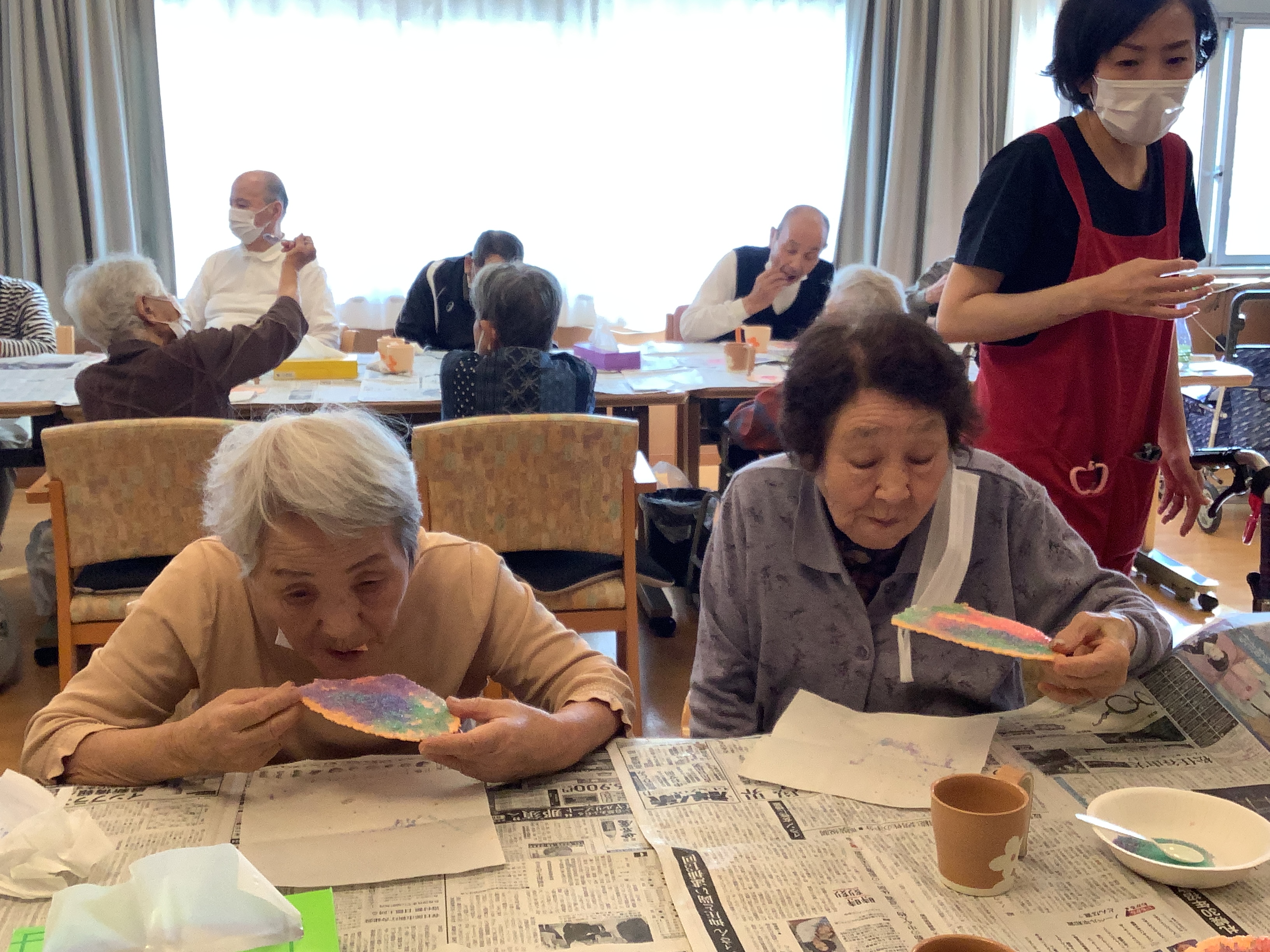 レクリエーションの時間に落書せんべい作りを行い召し上がって頂きました!(^^)! お名前を書かれたり、好きな模様を描いたりと皆様楽しまれていました♪ 「美味しい」「甘くていいね」と喜んで頂けました( *´艸`)