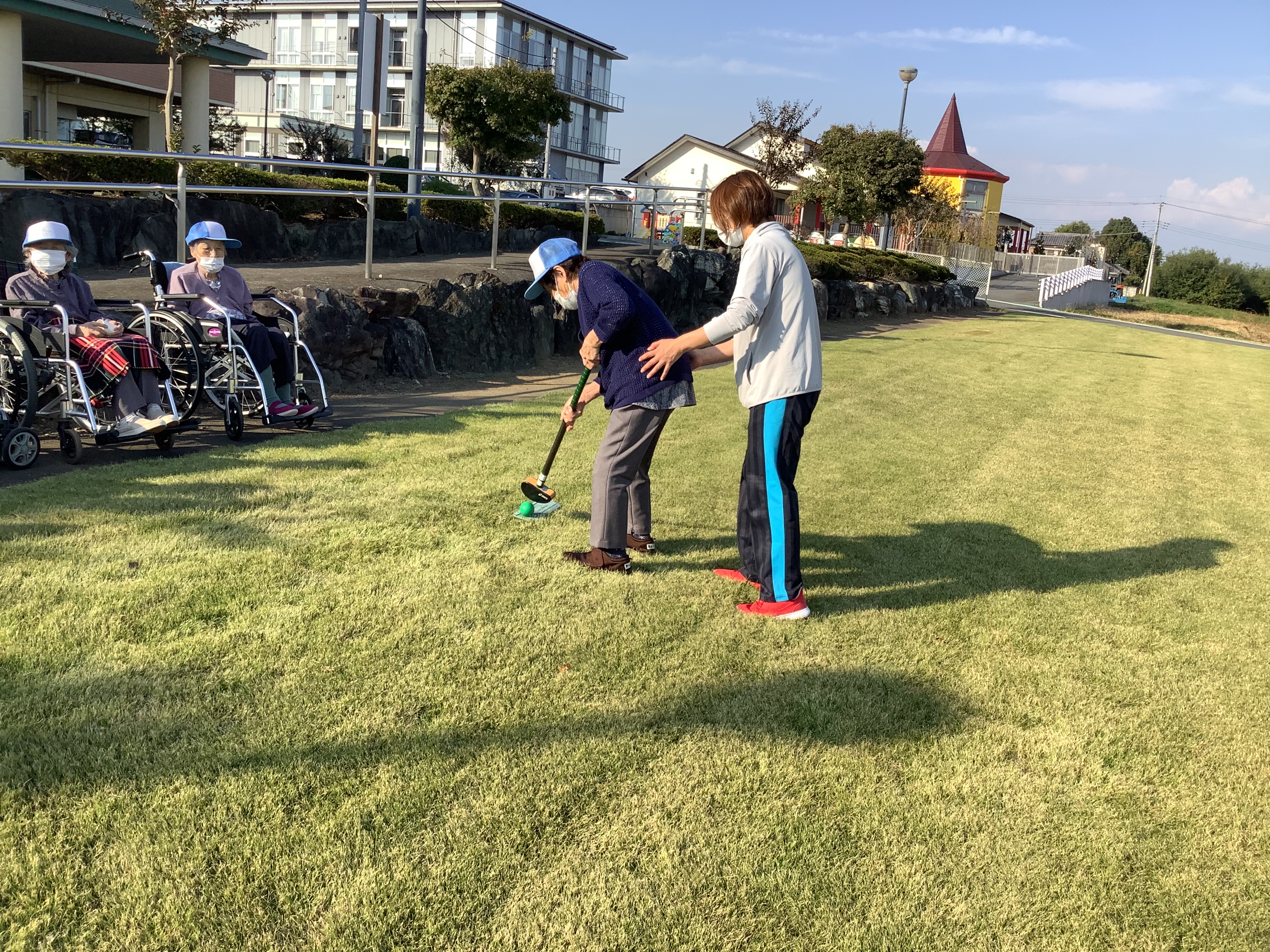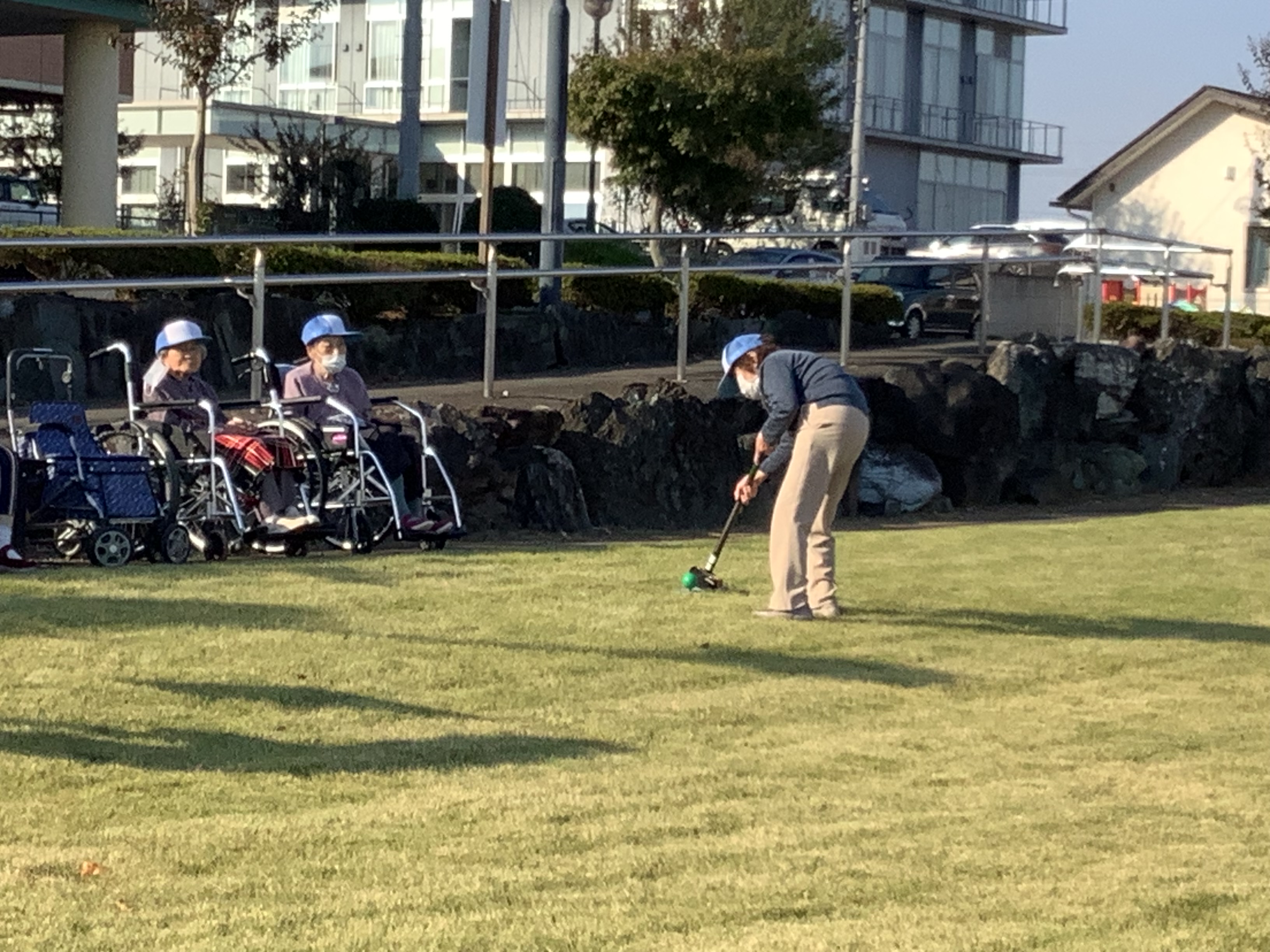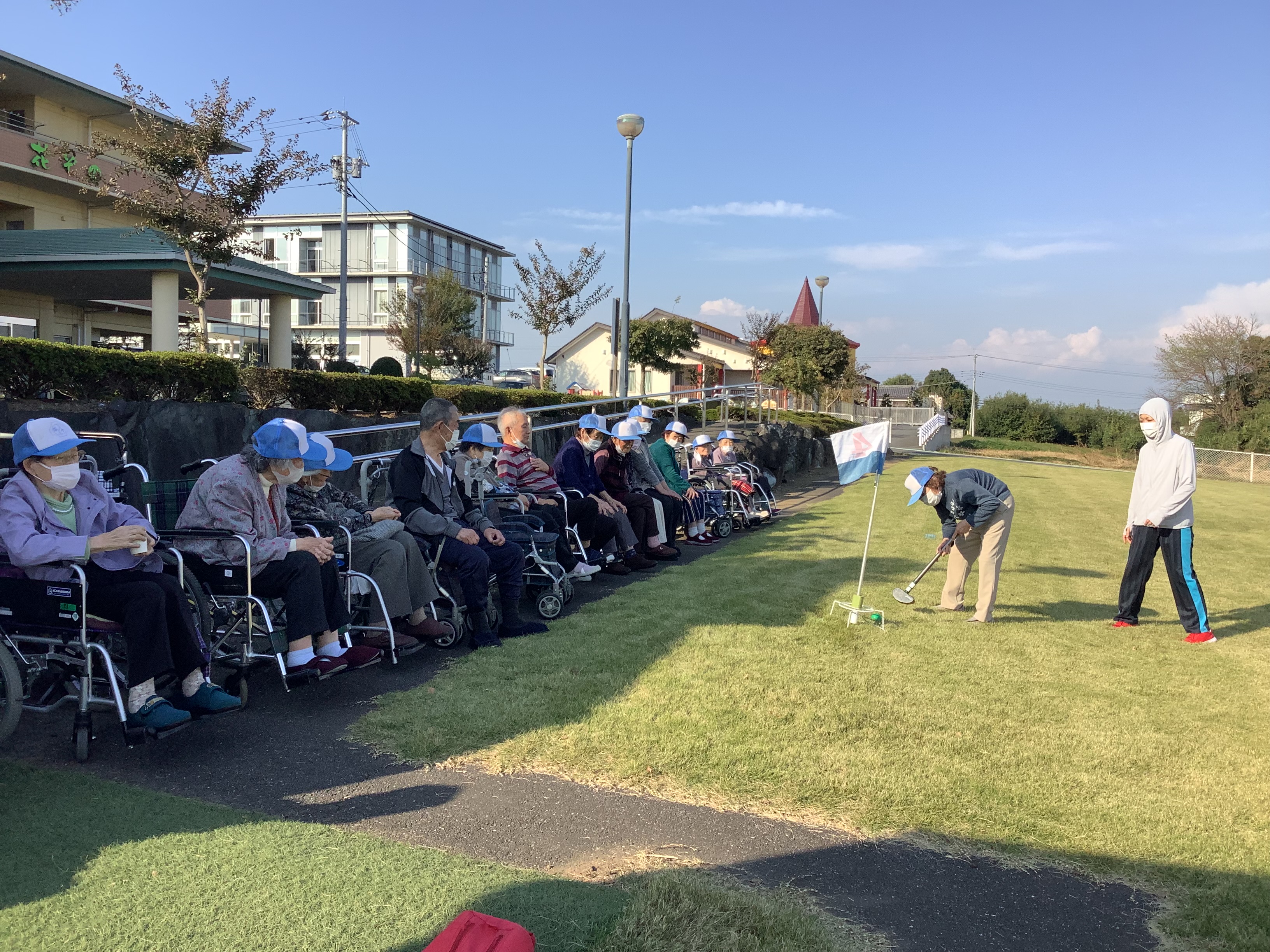 花ぞのデイサービスで人気のレクリエーション、グランドゴルフを行いました。今年は猛暑が続きやっと気持ち良く外での時間が過ごせるようになりました(*´▽`*)