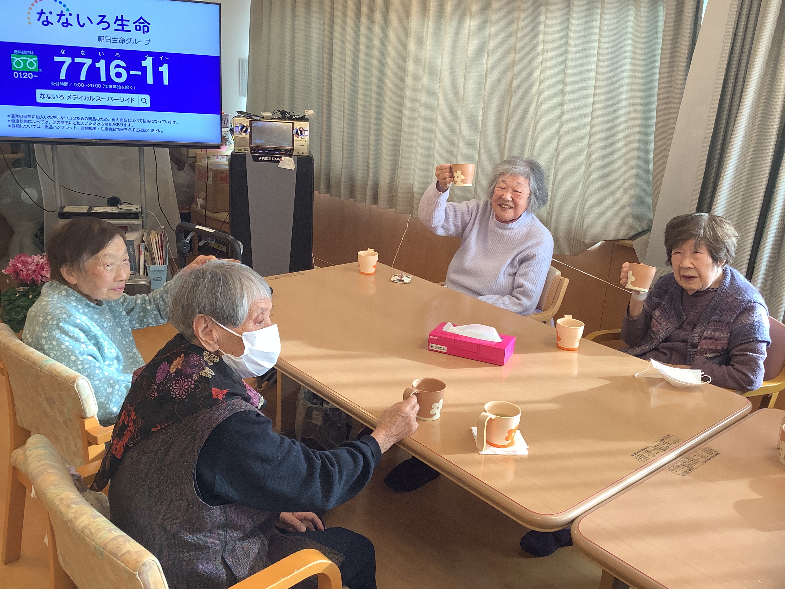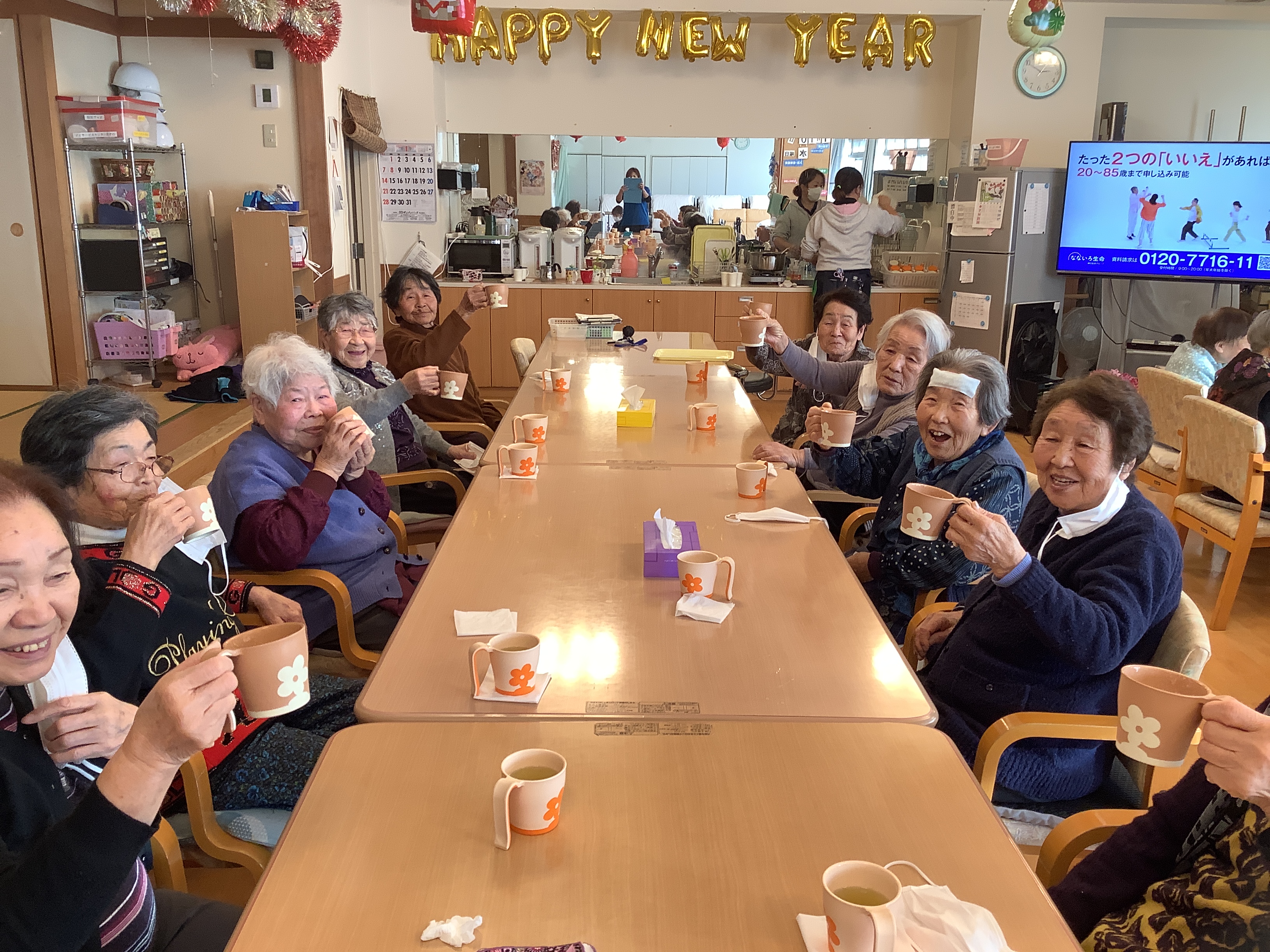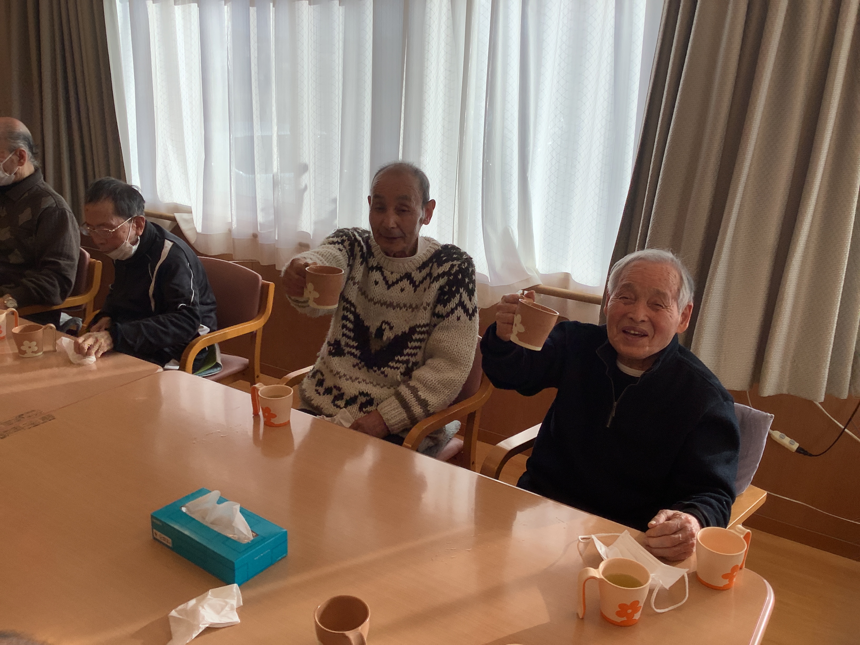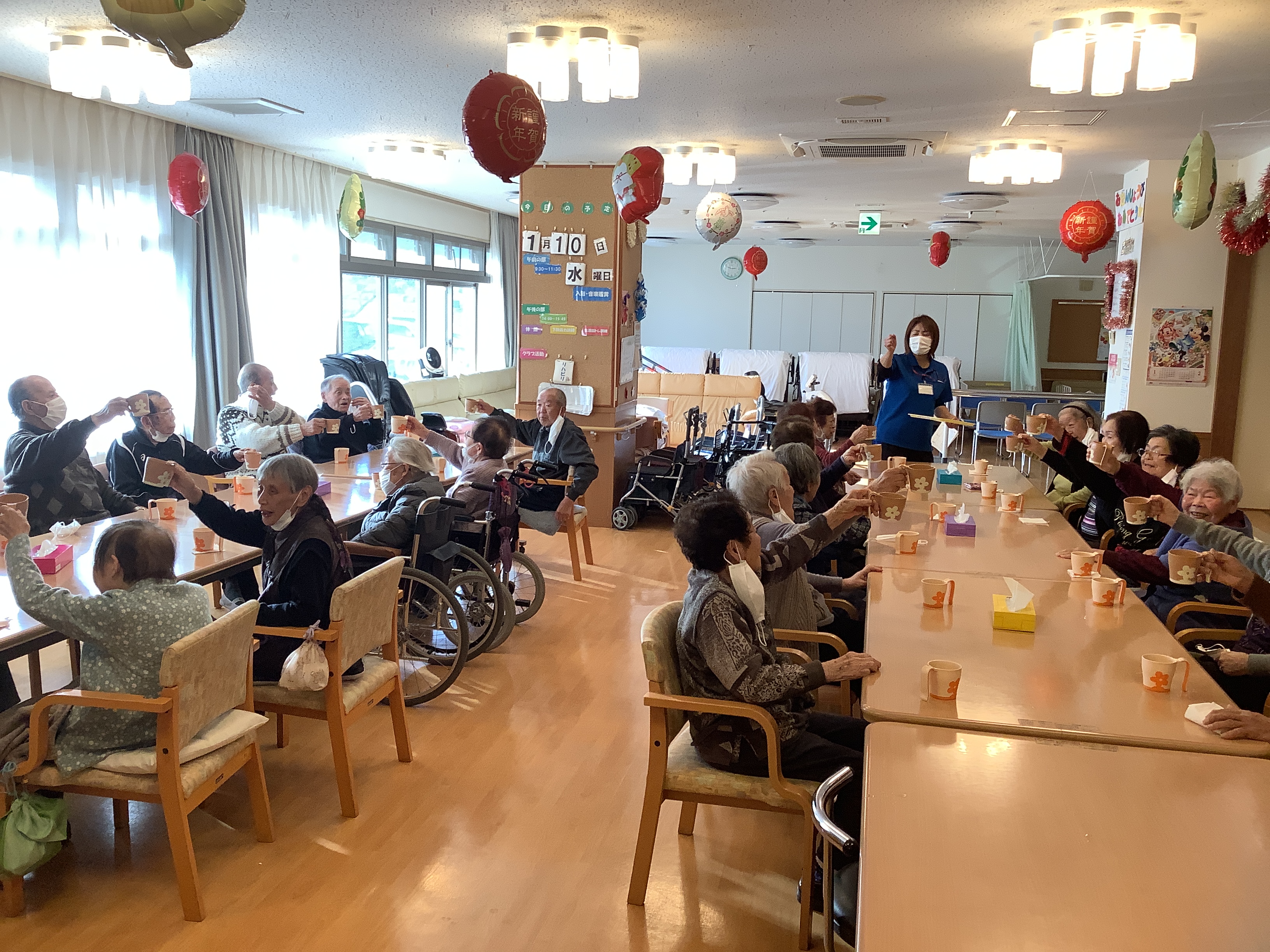 1/10に甘酒レクを行いました(*^^*) みんなで乾杯をし、頂きました♪ 「美味しい、おかわりある?」と、とても大好評で鍋いっぱいにあった甘酒は見事に完売しました( *´艸`)